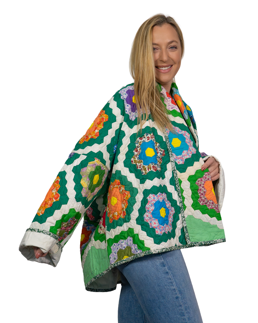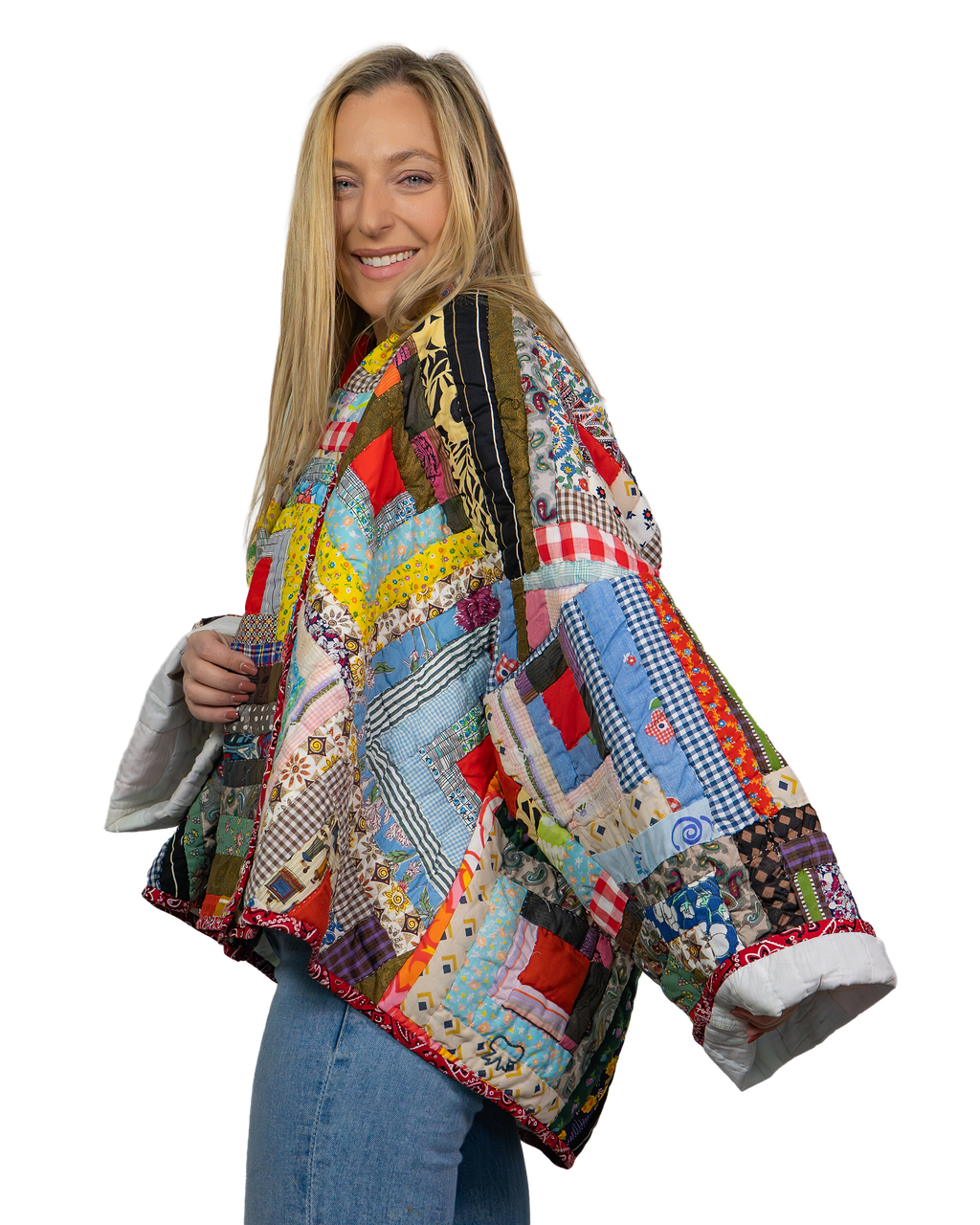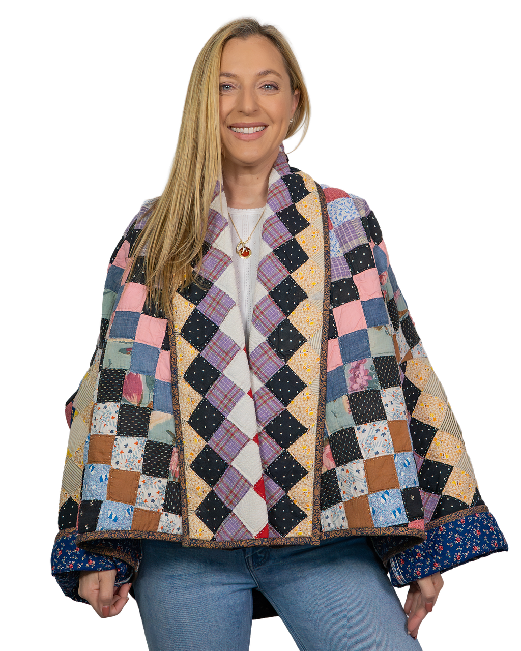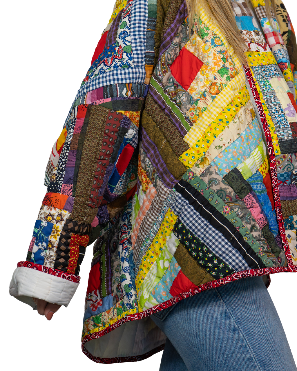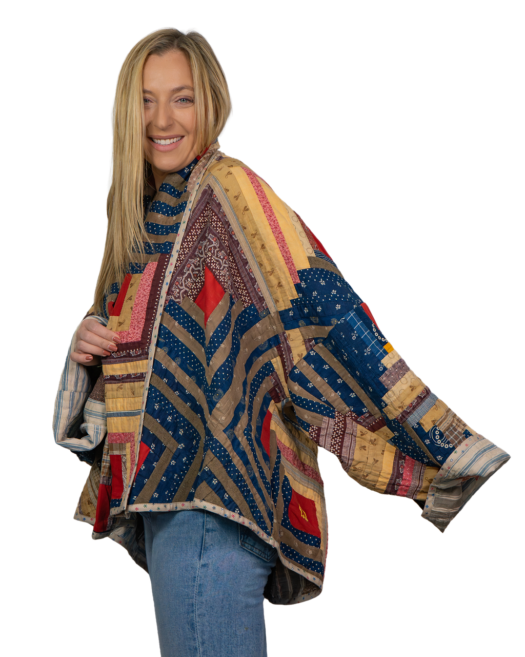 Every Shapeau coat is made from authentic vintage quilts with some dating back over a century. Each textile is carefully selected and reconstructed into a completely one-of-a-kind piece of wearable art.