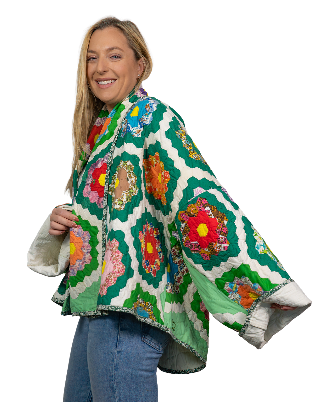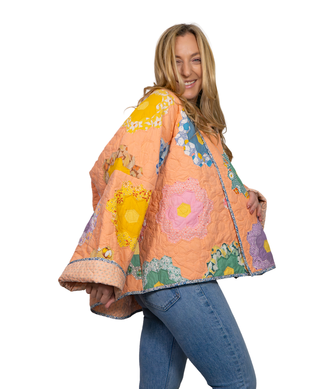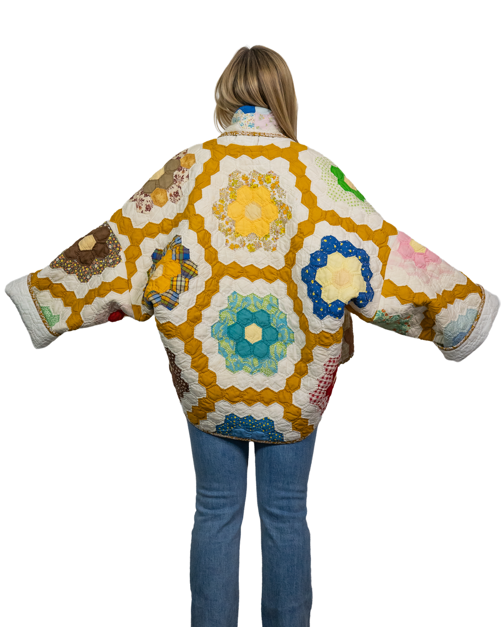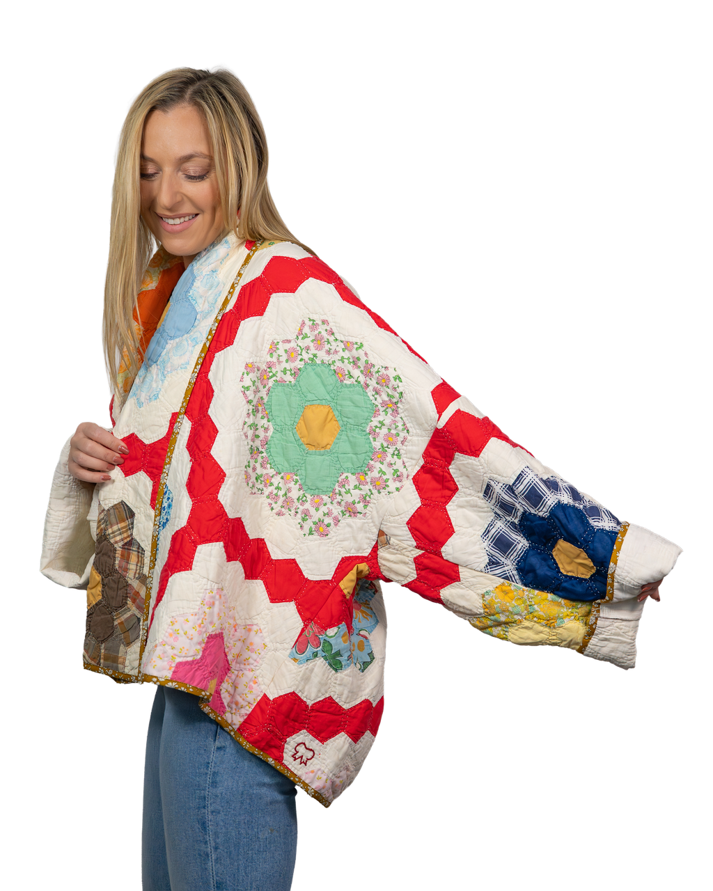 Every Shapeau coat is made from authentic vintage quilts with some dating back over a century. Each textile is carefully selected and reconstructed into a completely one-of-a-kind piece of wearable art.