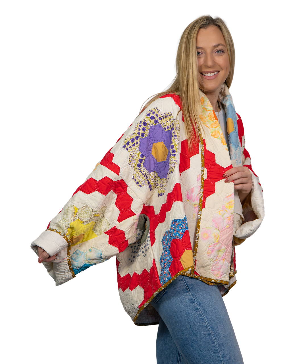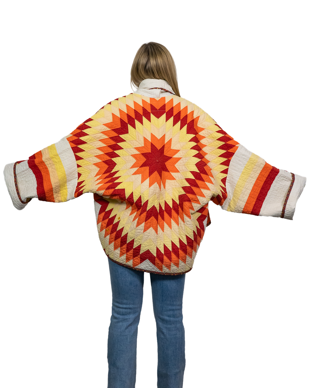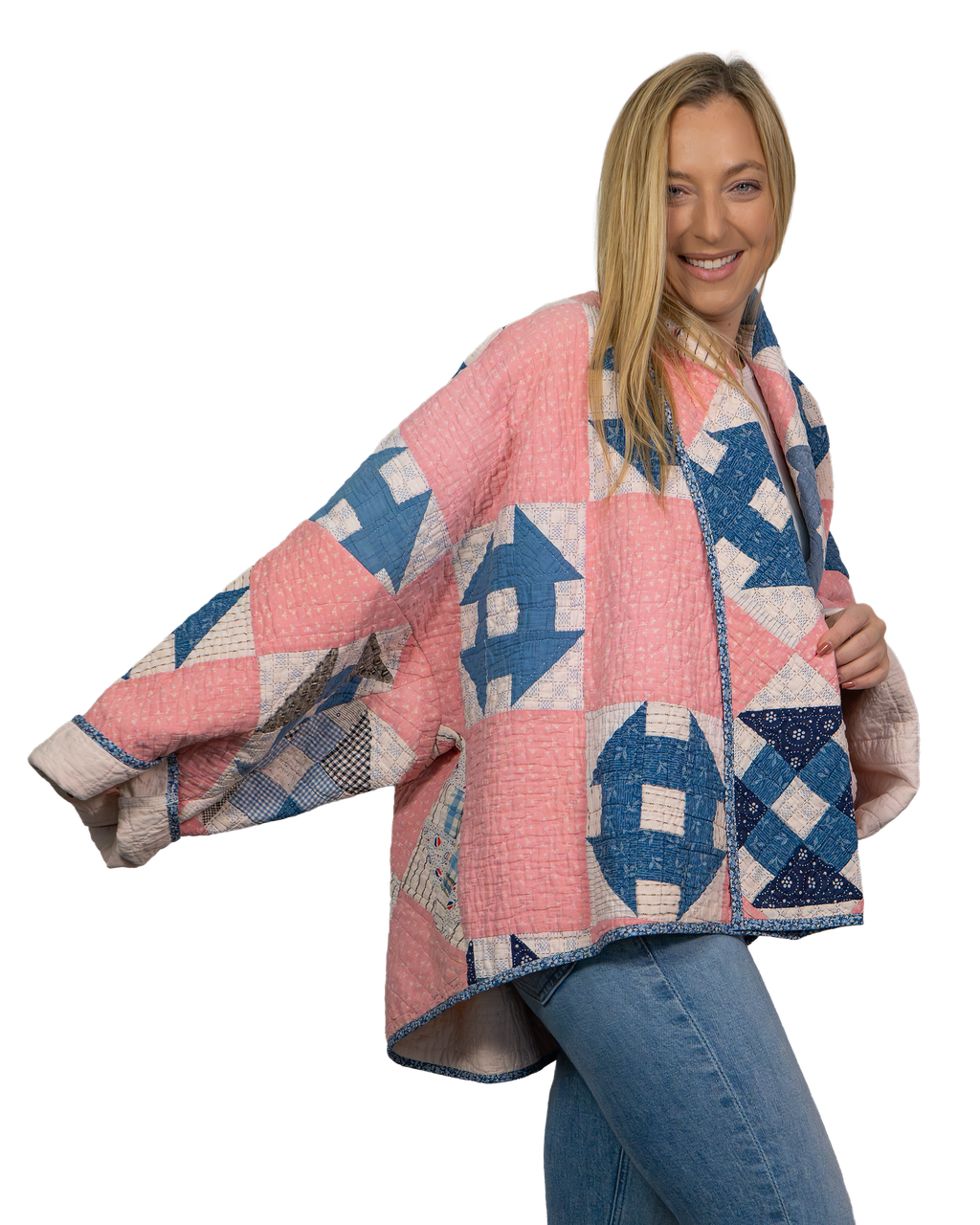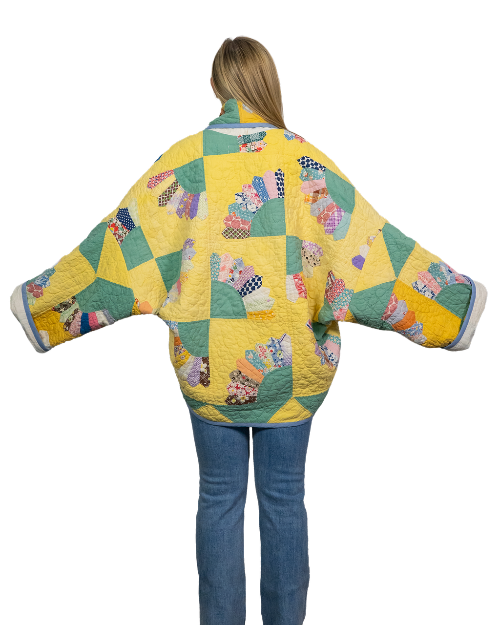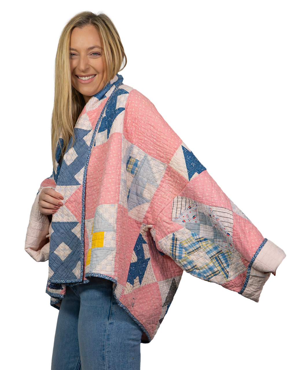 Every Shapeau coat is made from authentic vintage quilts with some dating back over a century. Each textile is carefully selected and reconstructed into a completely one-of-a-kind piece of wearable art.