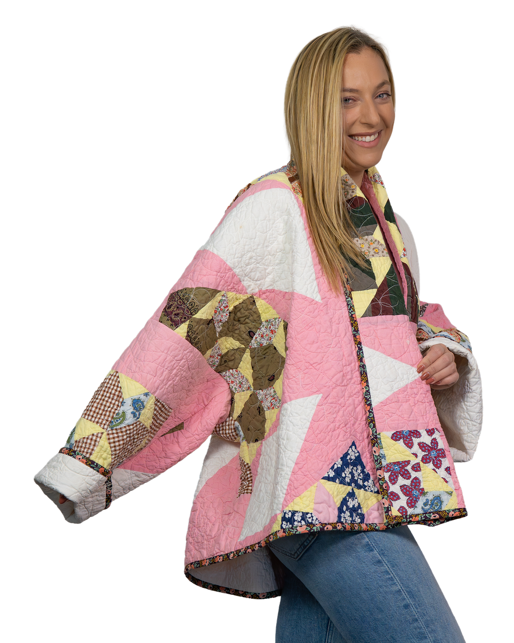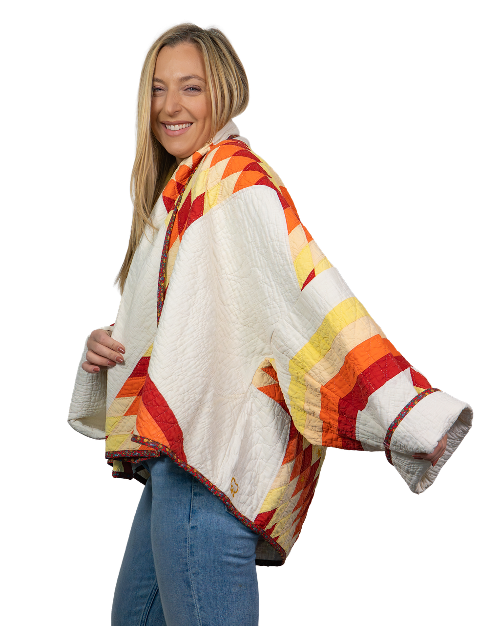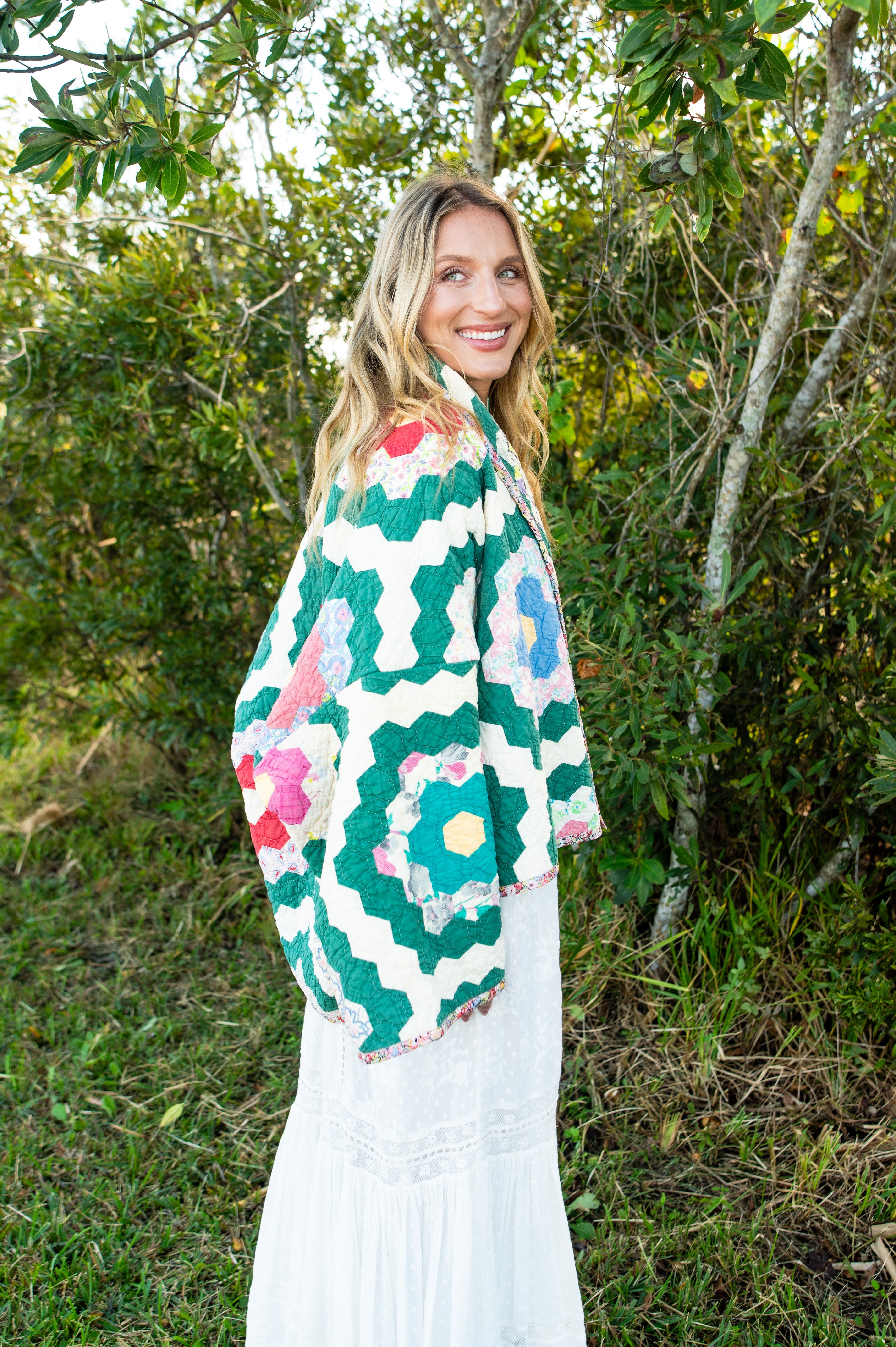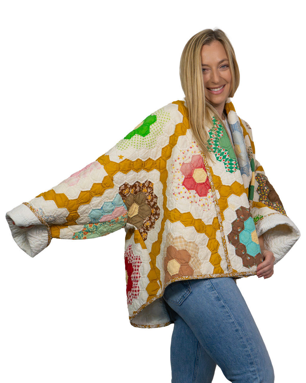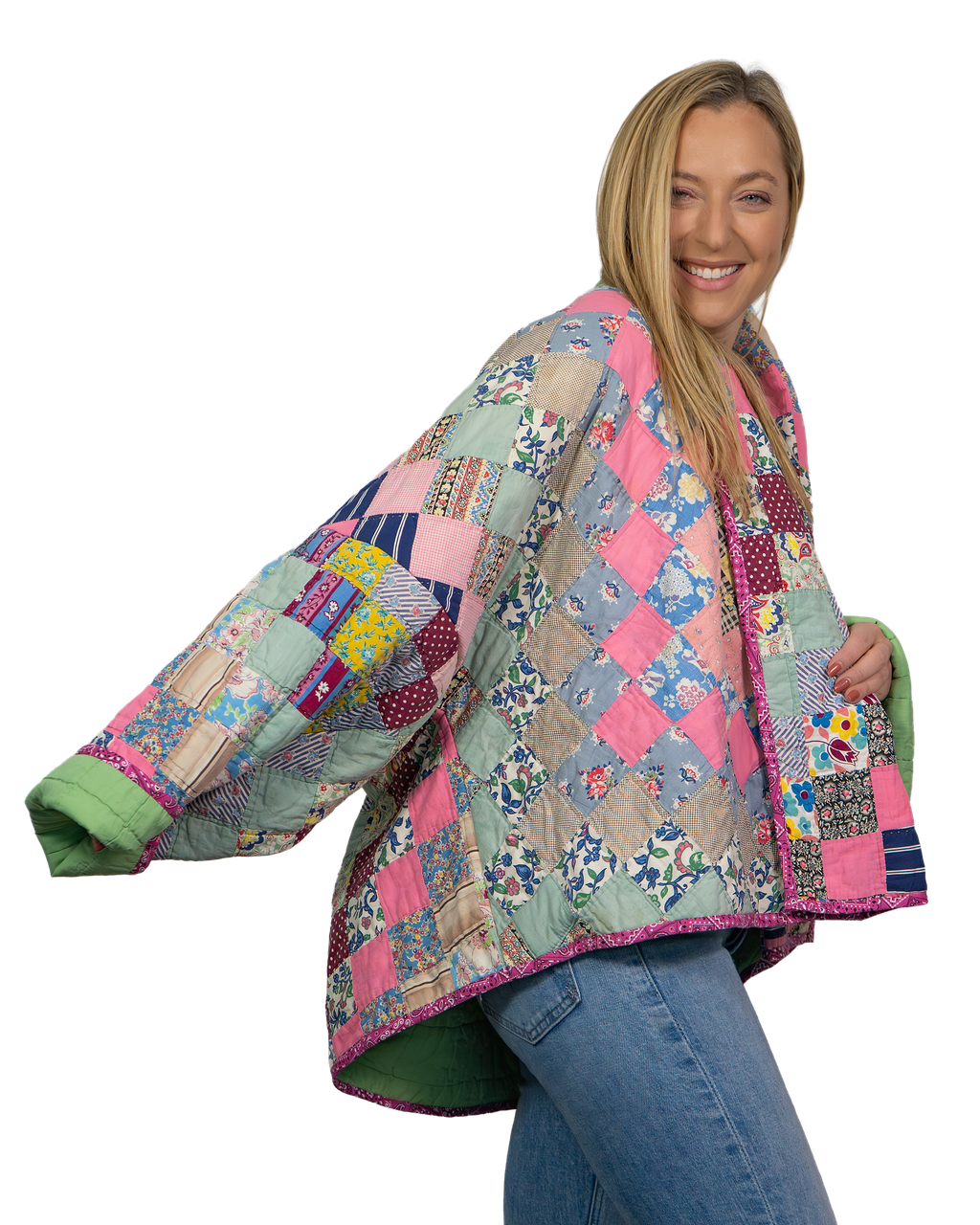 Every Shapeau coat is made from authentic vintage quilts with some dating back over a century. Each textile is carefully selected and reconstructed into a completely one-of-a-kind piece of wearable art.