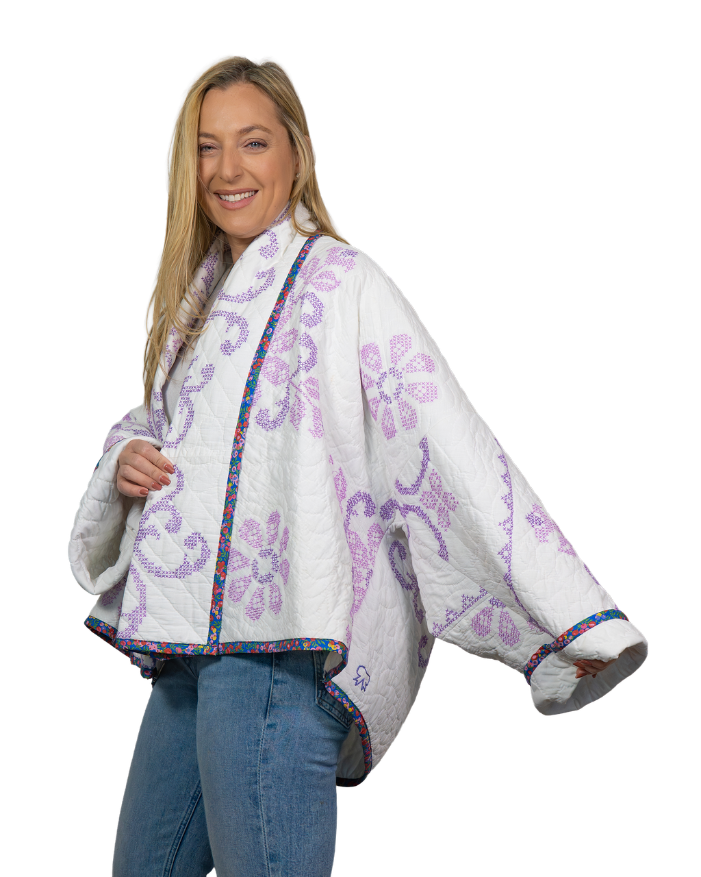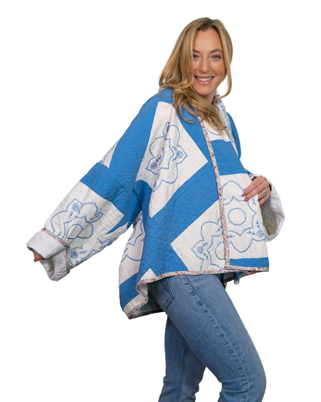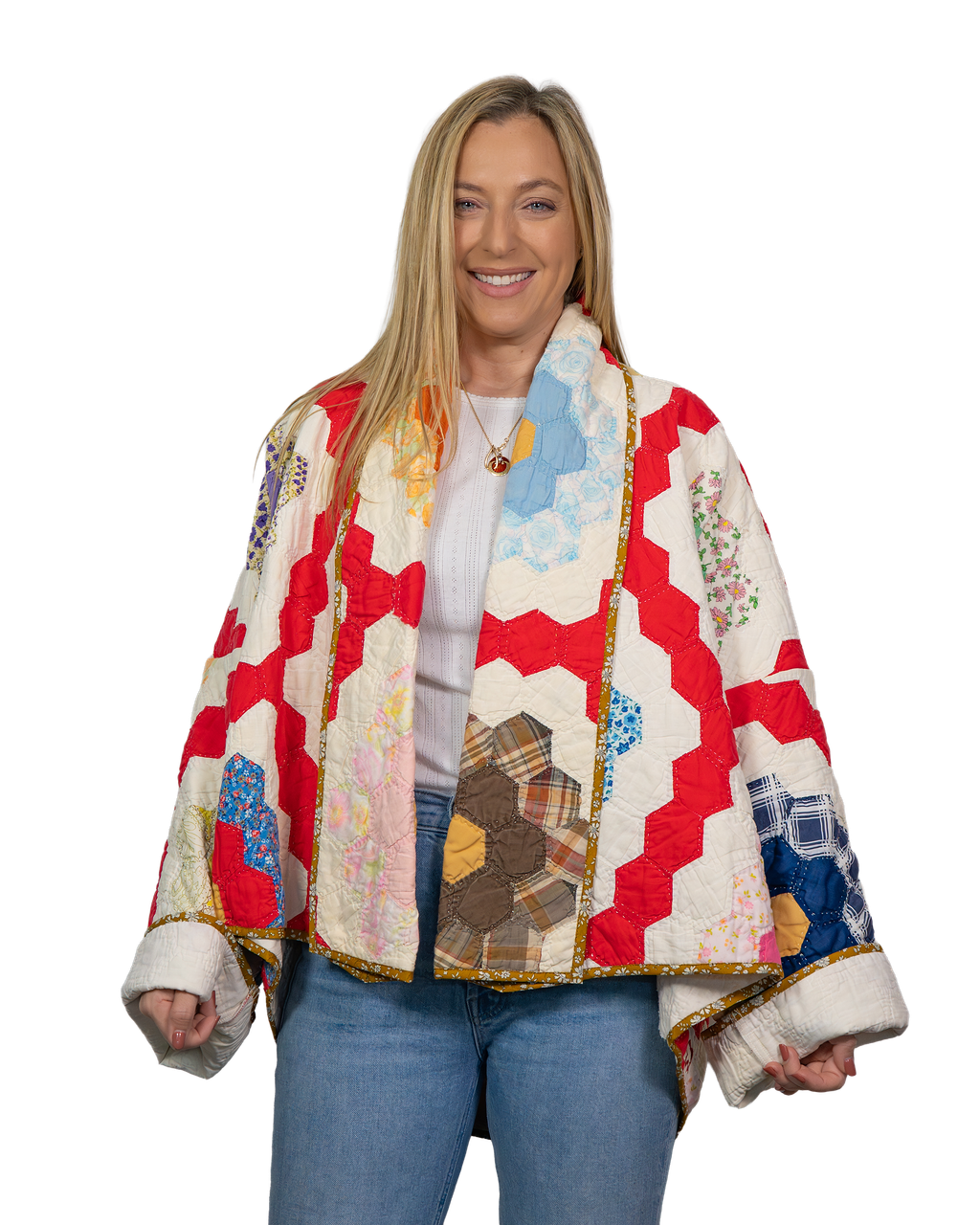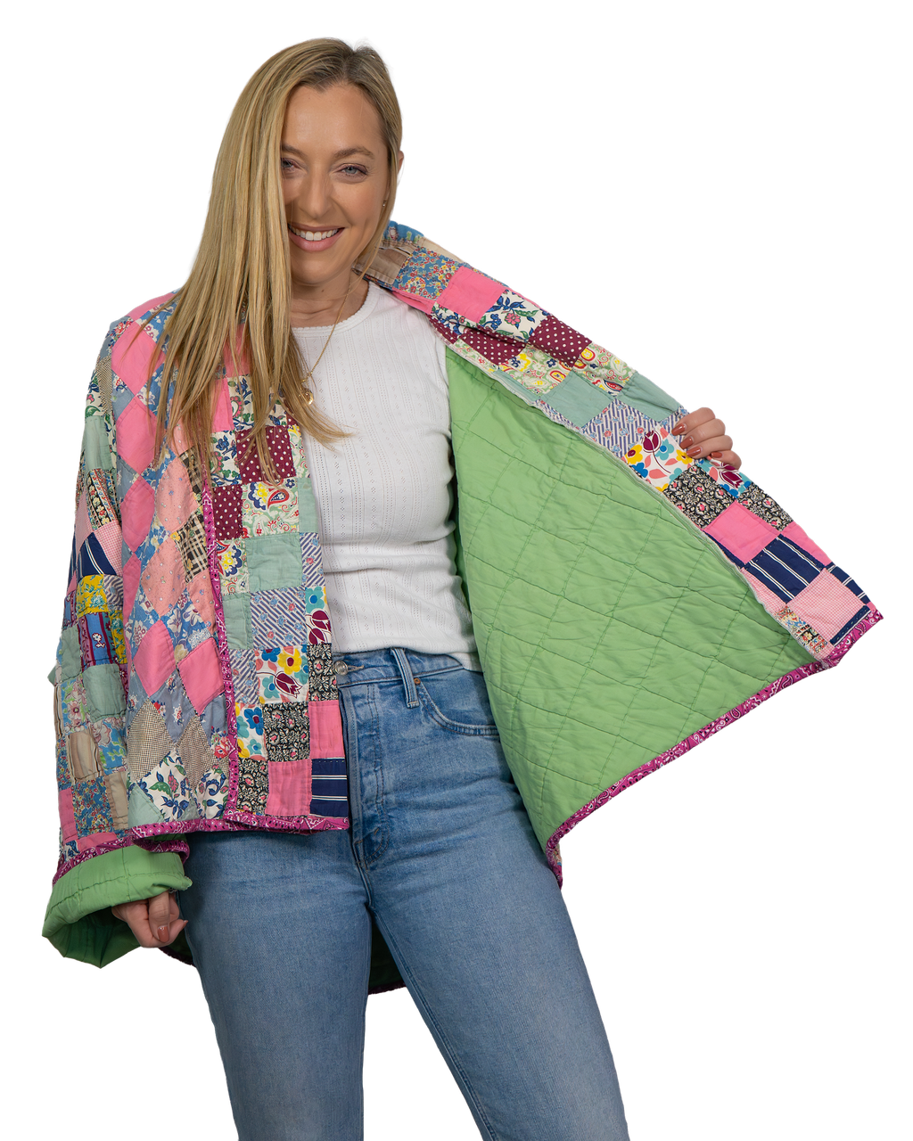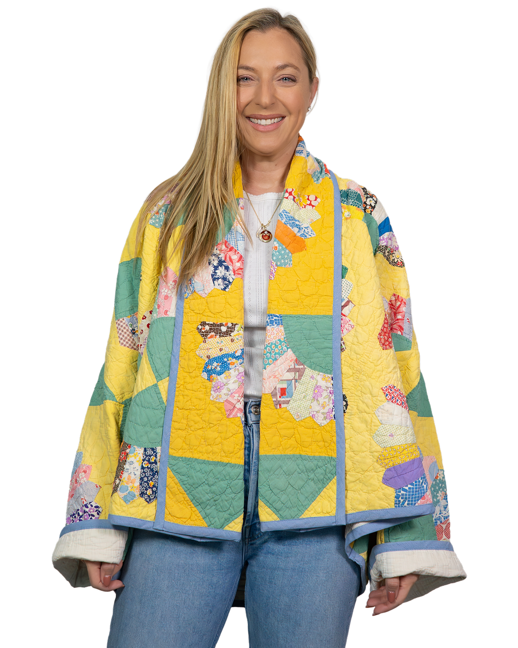 Every Shapeau coat is made from authentic vintage quilts with some dating back over a century. Each textile is carefully selected and reconstructed into a completely one-of-a-kind piece of wearable art.