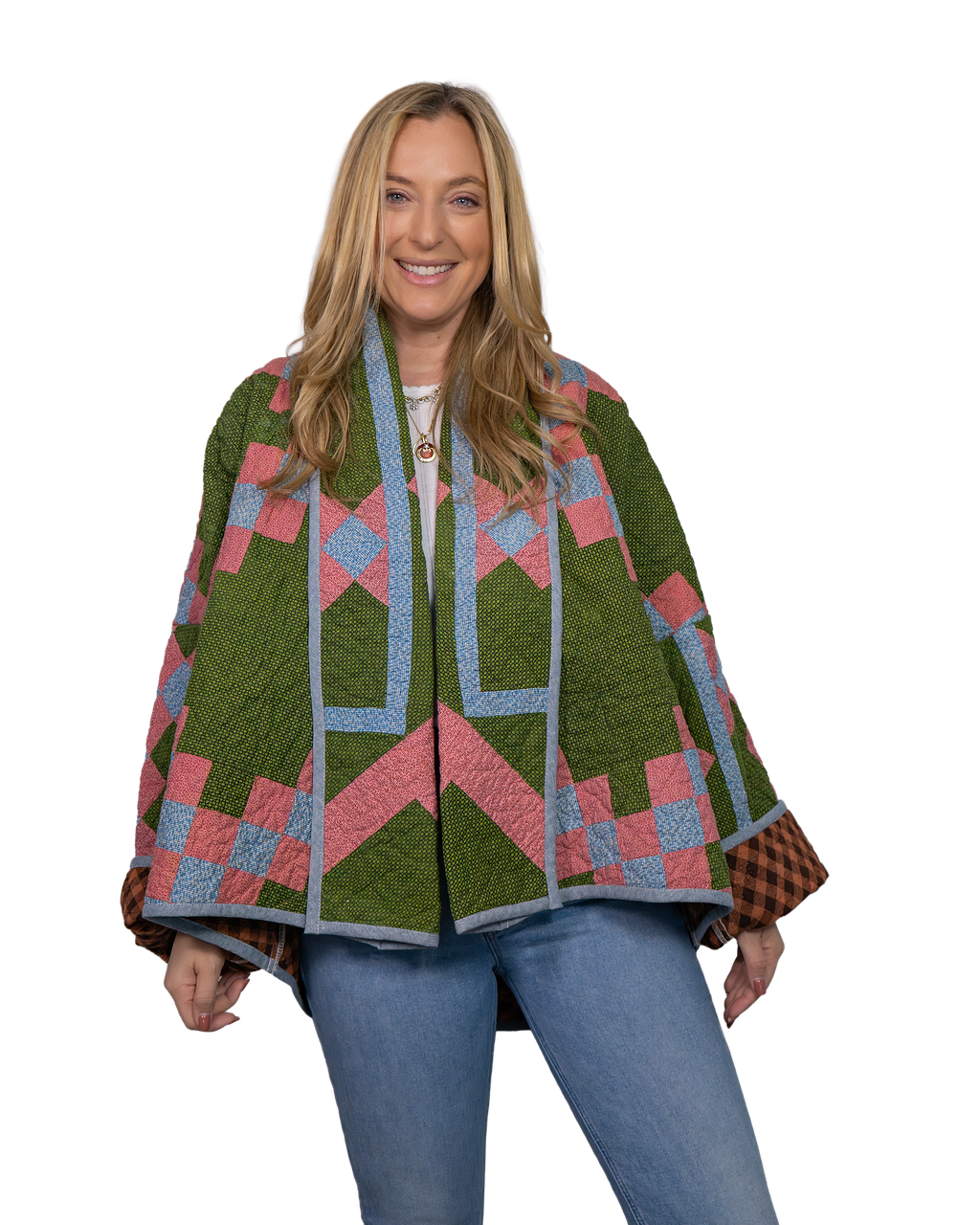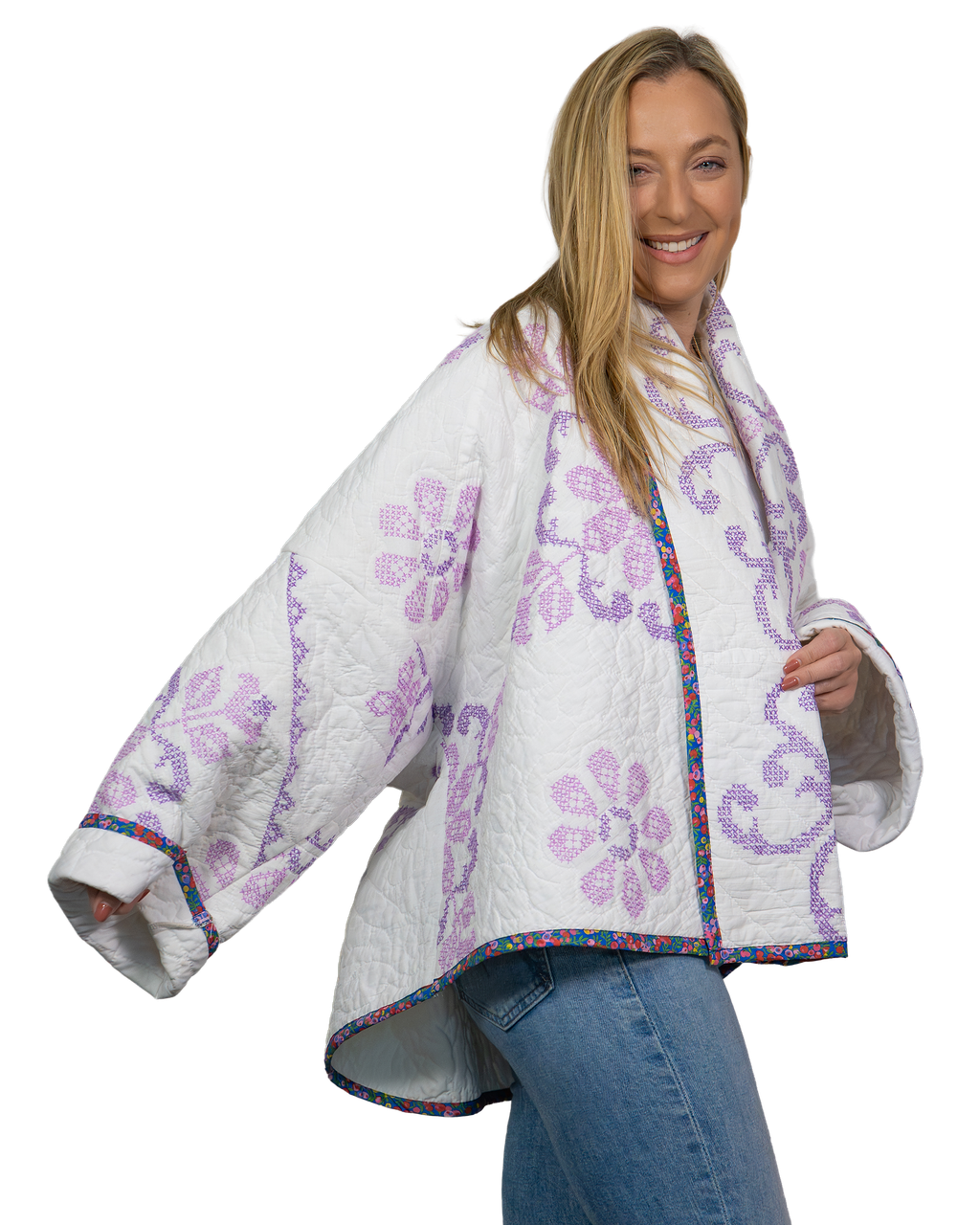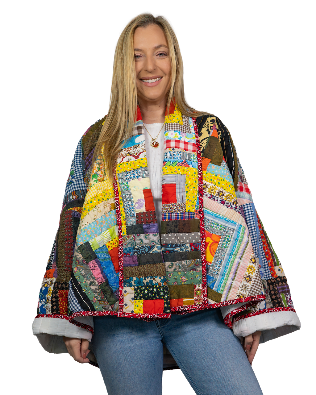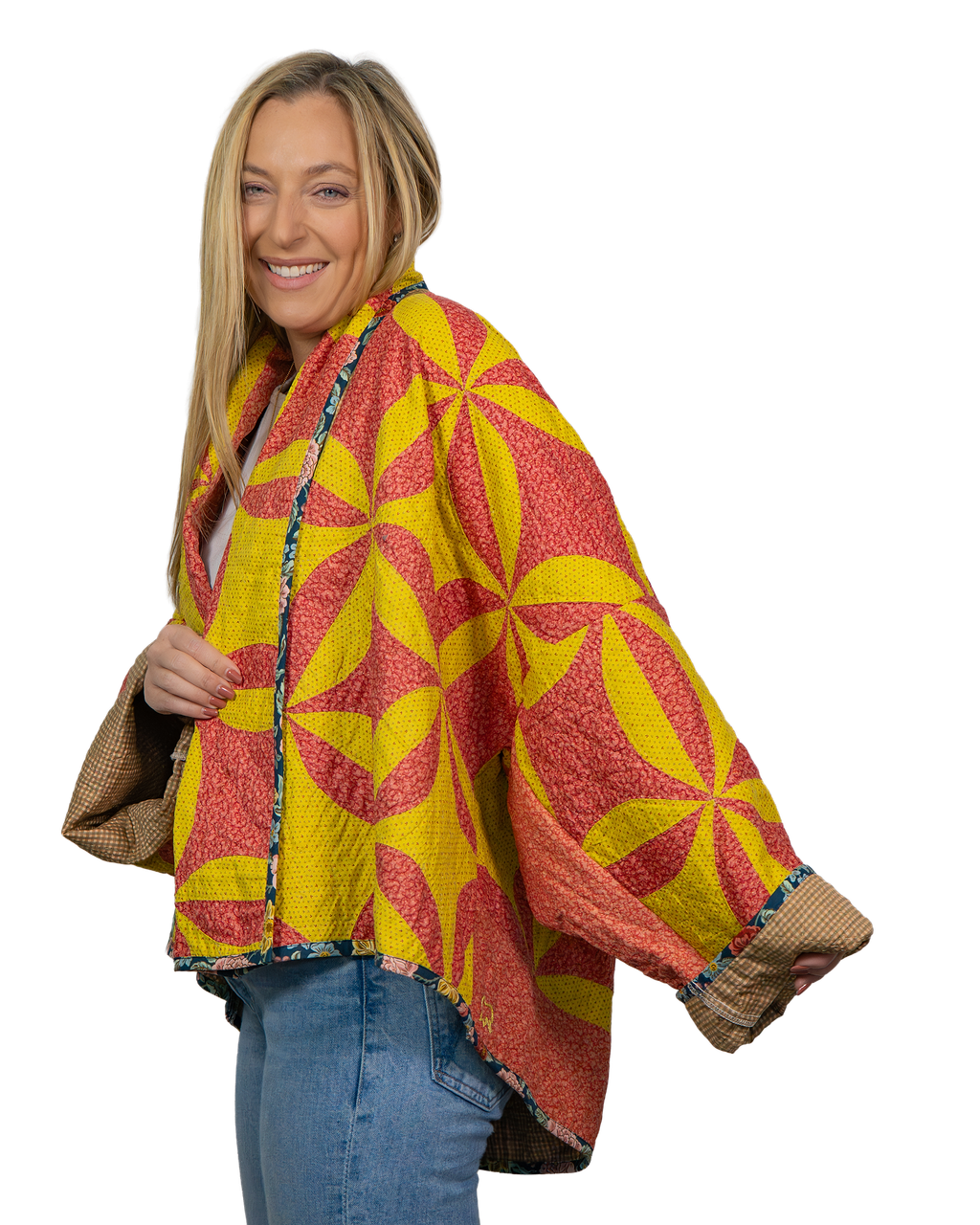 Every Shapeau coat is made from authentic vintage quilts with some dating back over a century. Each textile is carefully selected and reconstructed into a completely one-of-a-kind piece of wearable art.