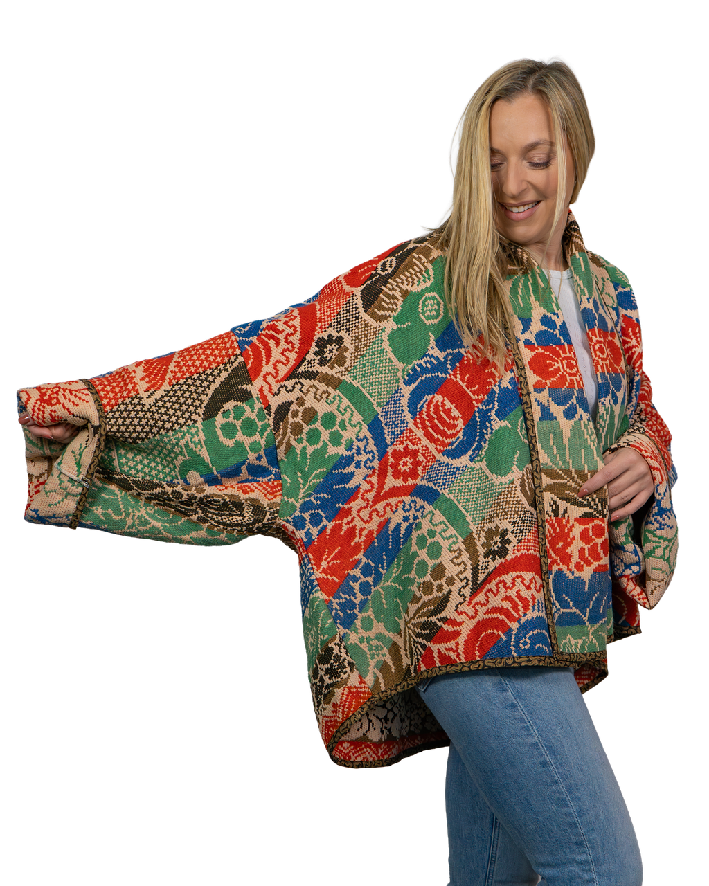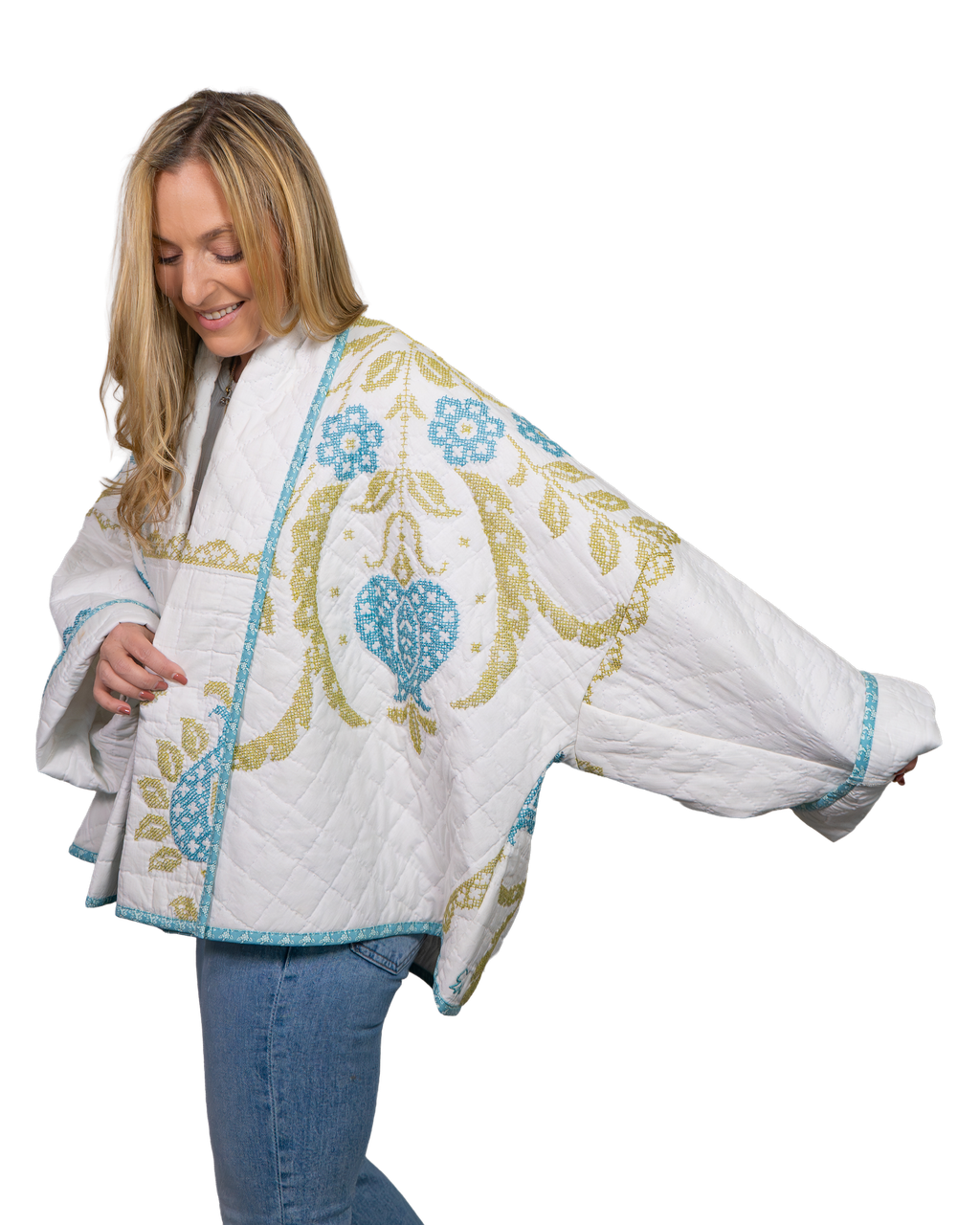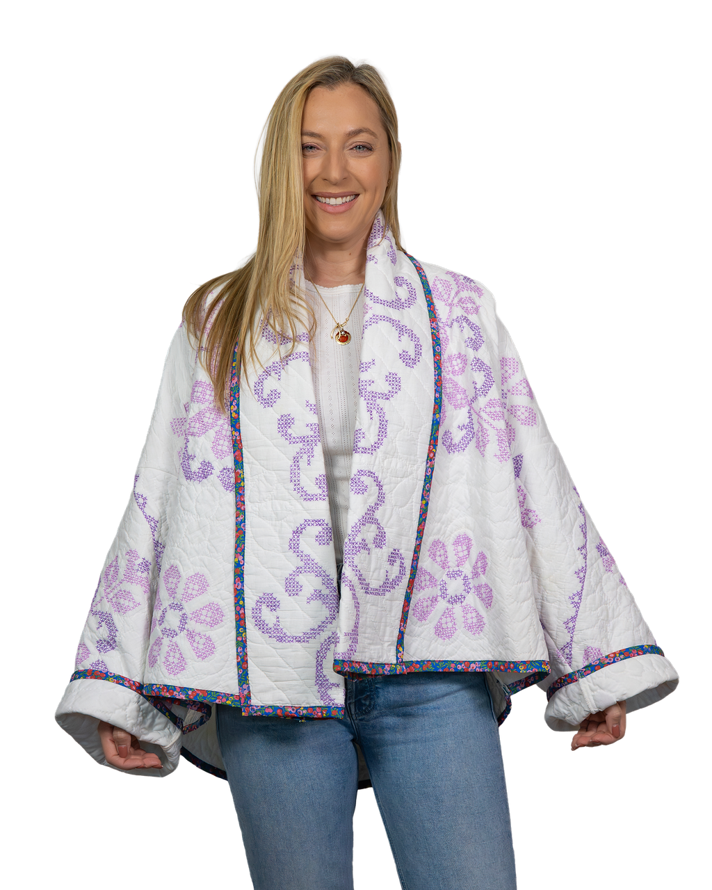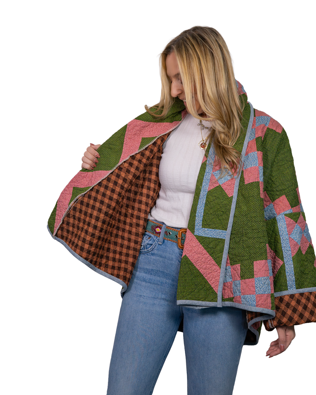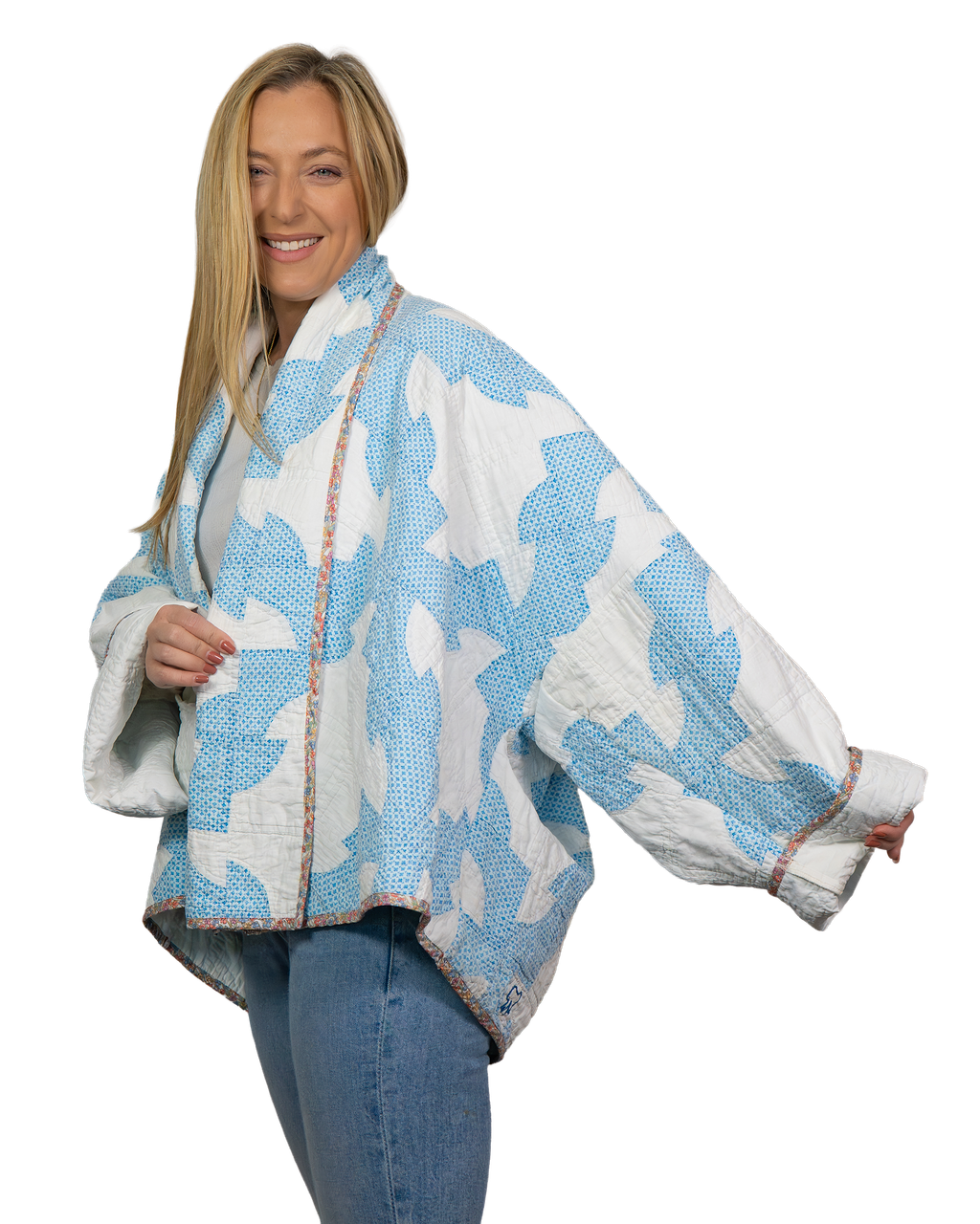 Every Shapeau coat is made from authentic vintage quilts with some dating back over a century. Each textile is carefully selected and reconstructed into a completely one-of-a-kind piece of wearable art.