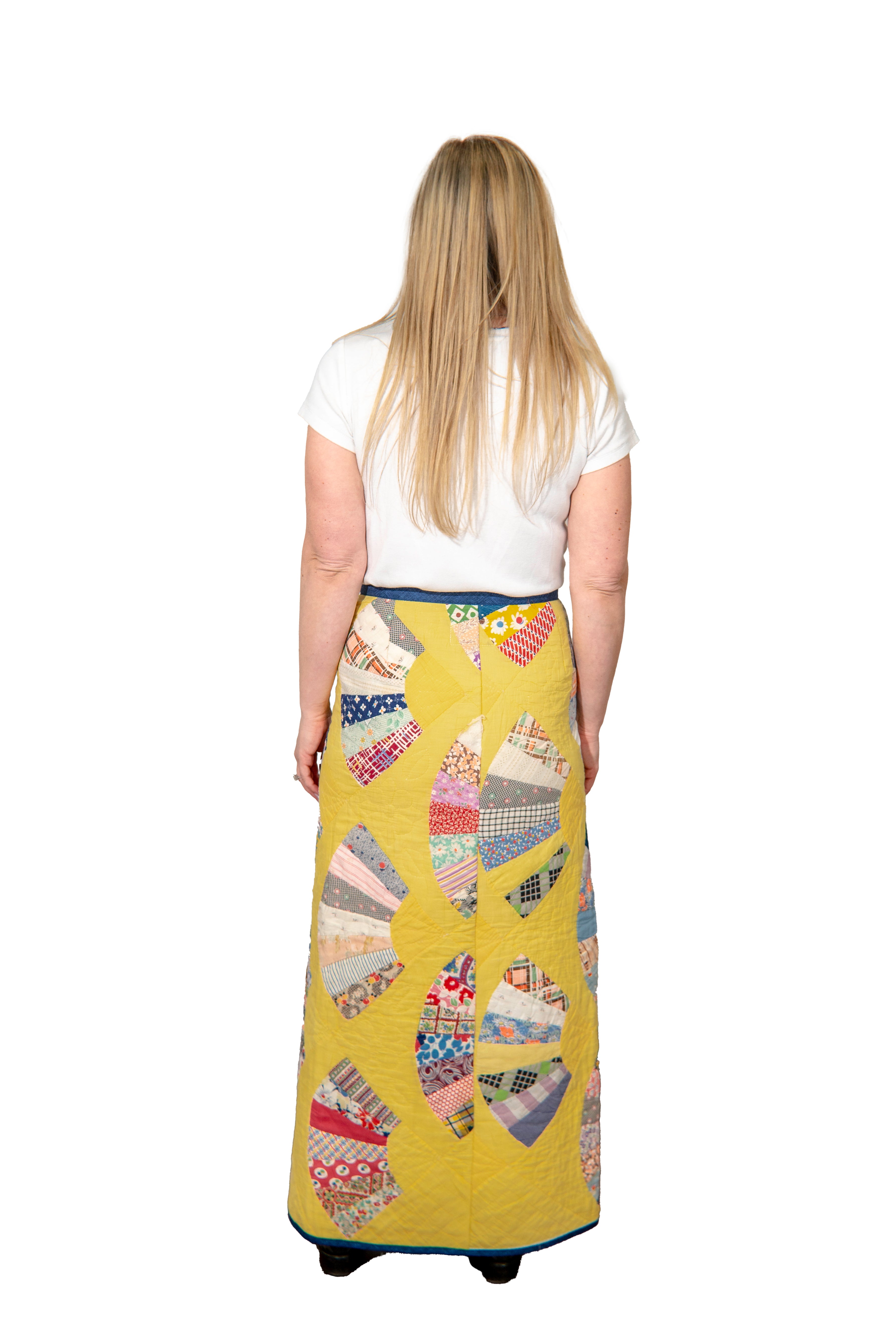 Yellow Grandmother's Fan Maxi Wrap Skirt