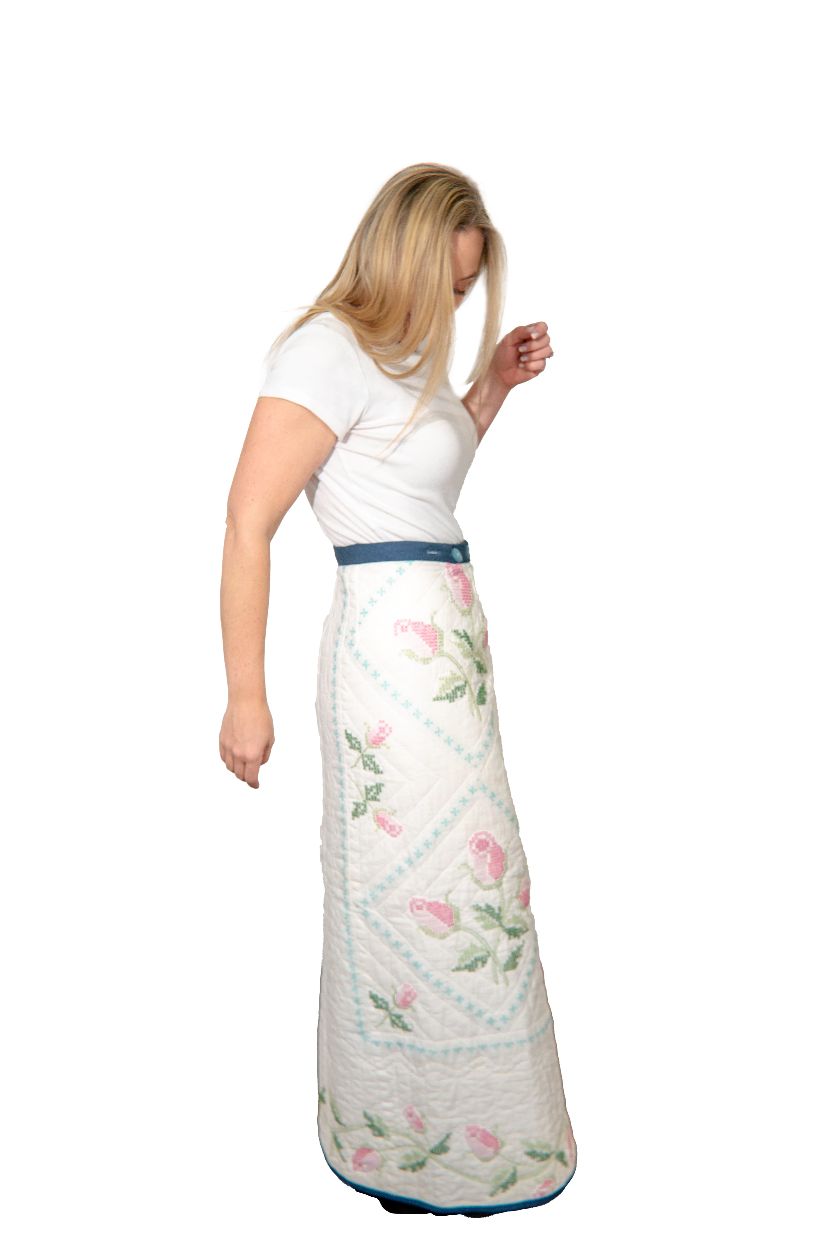 Cross Stitch Rose Maxi Wrap Skirt