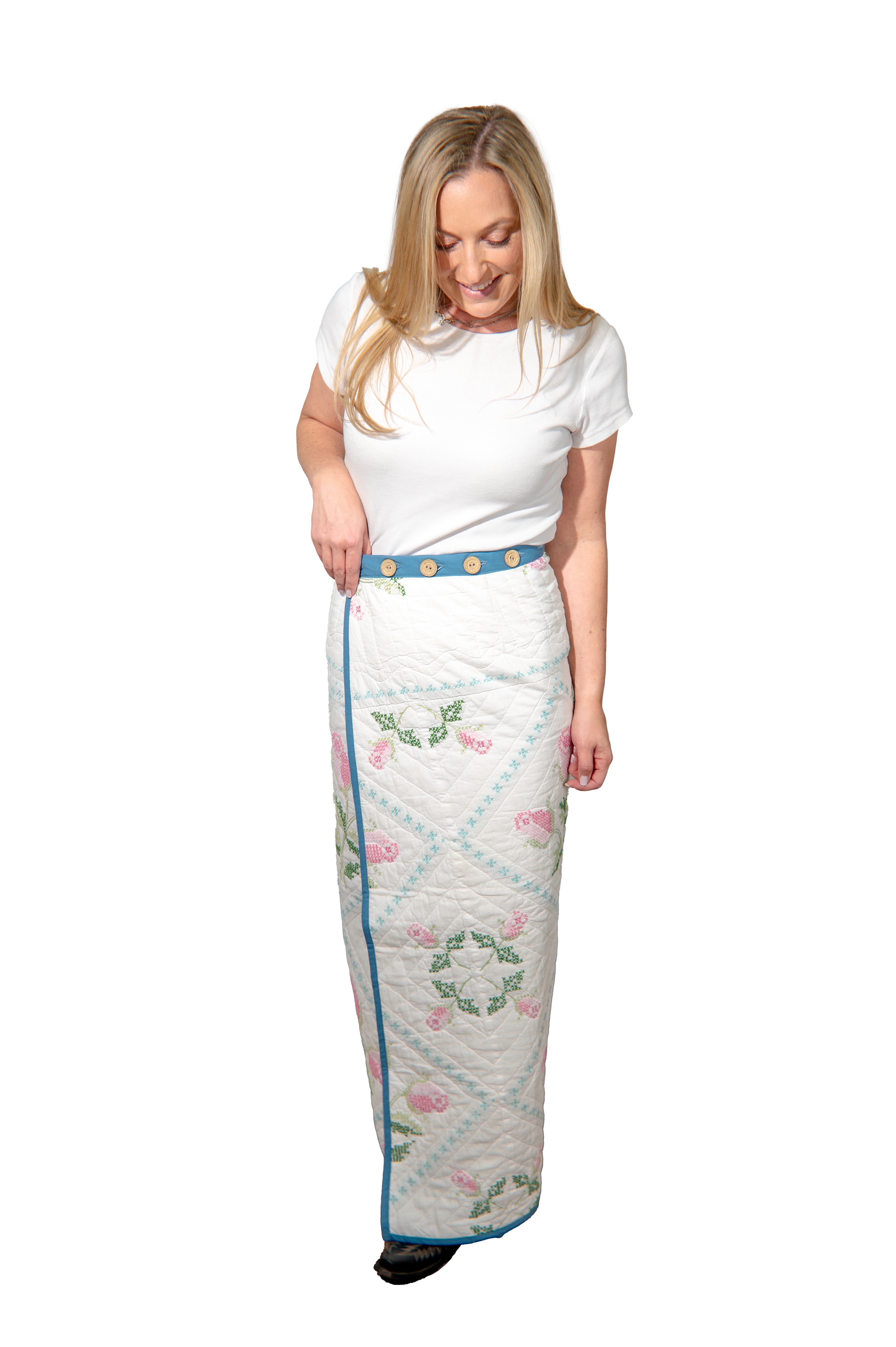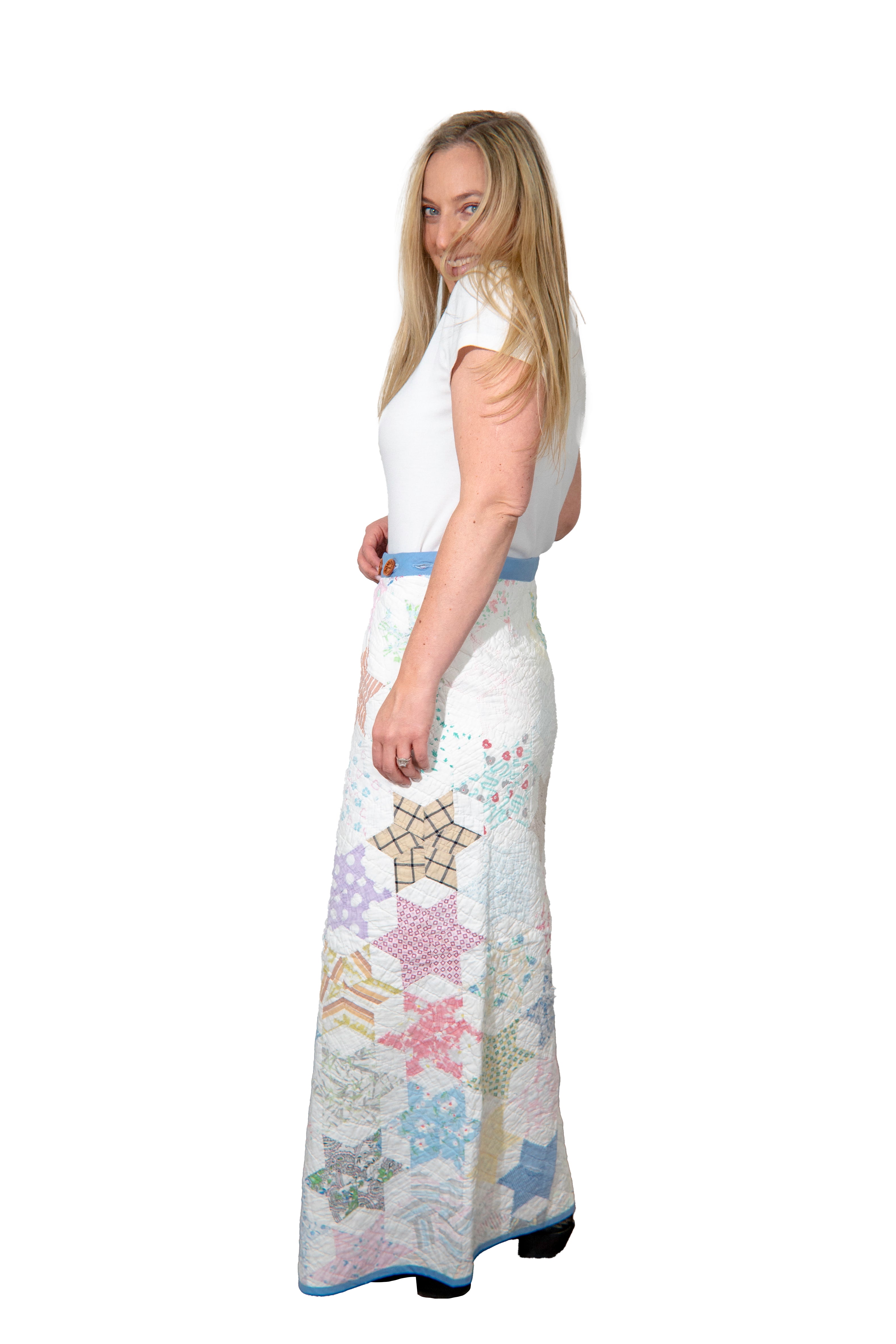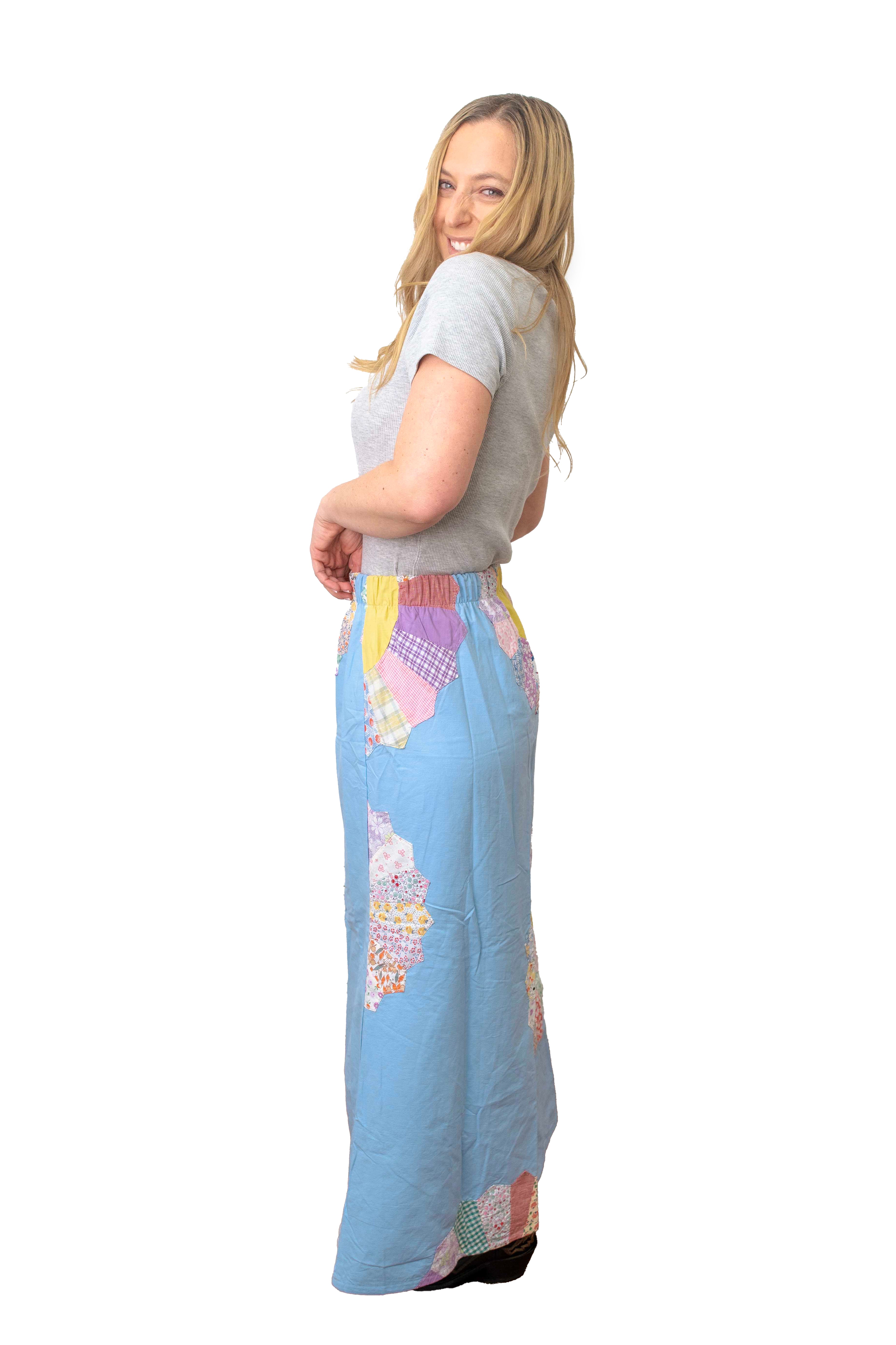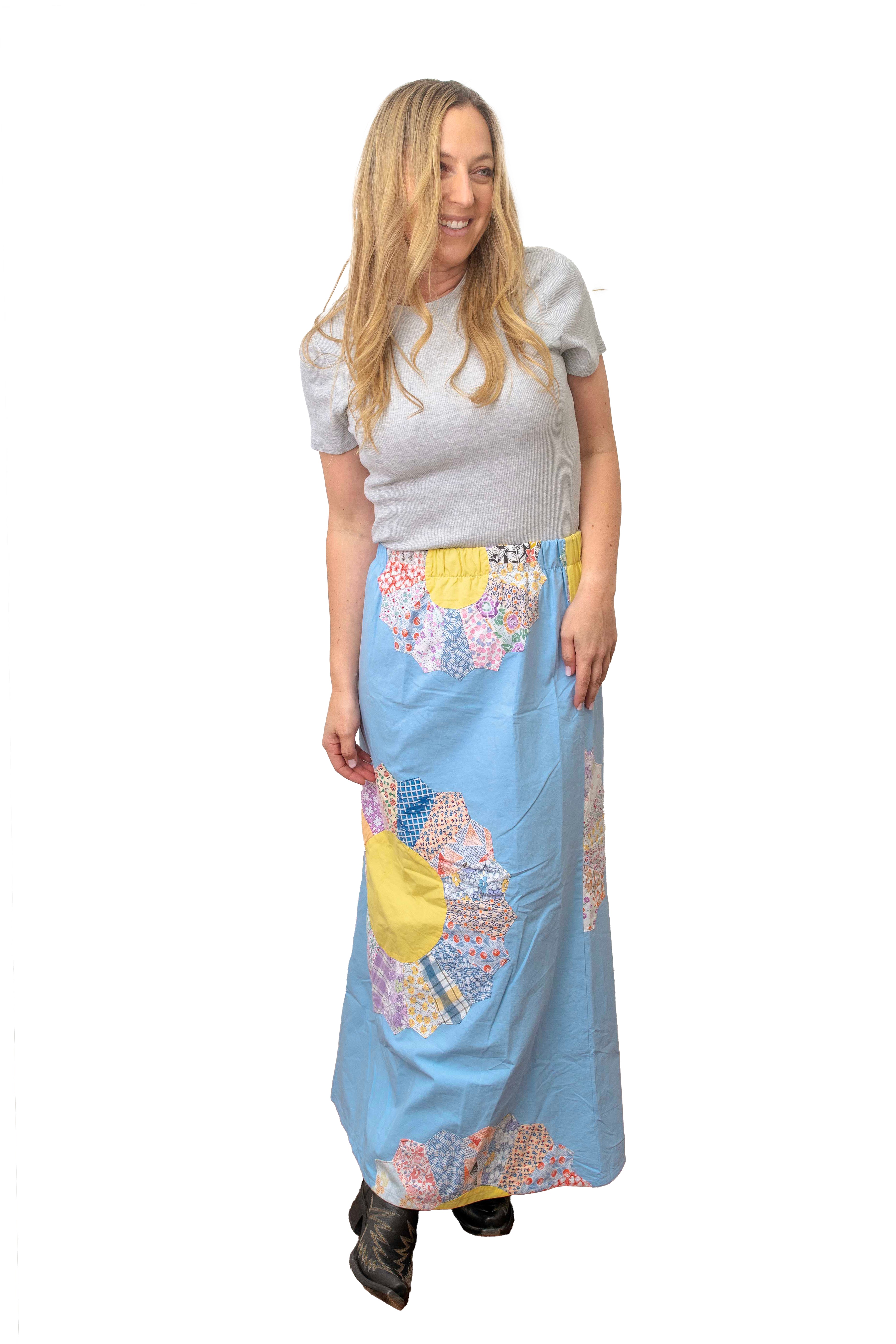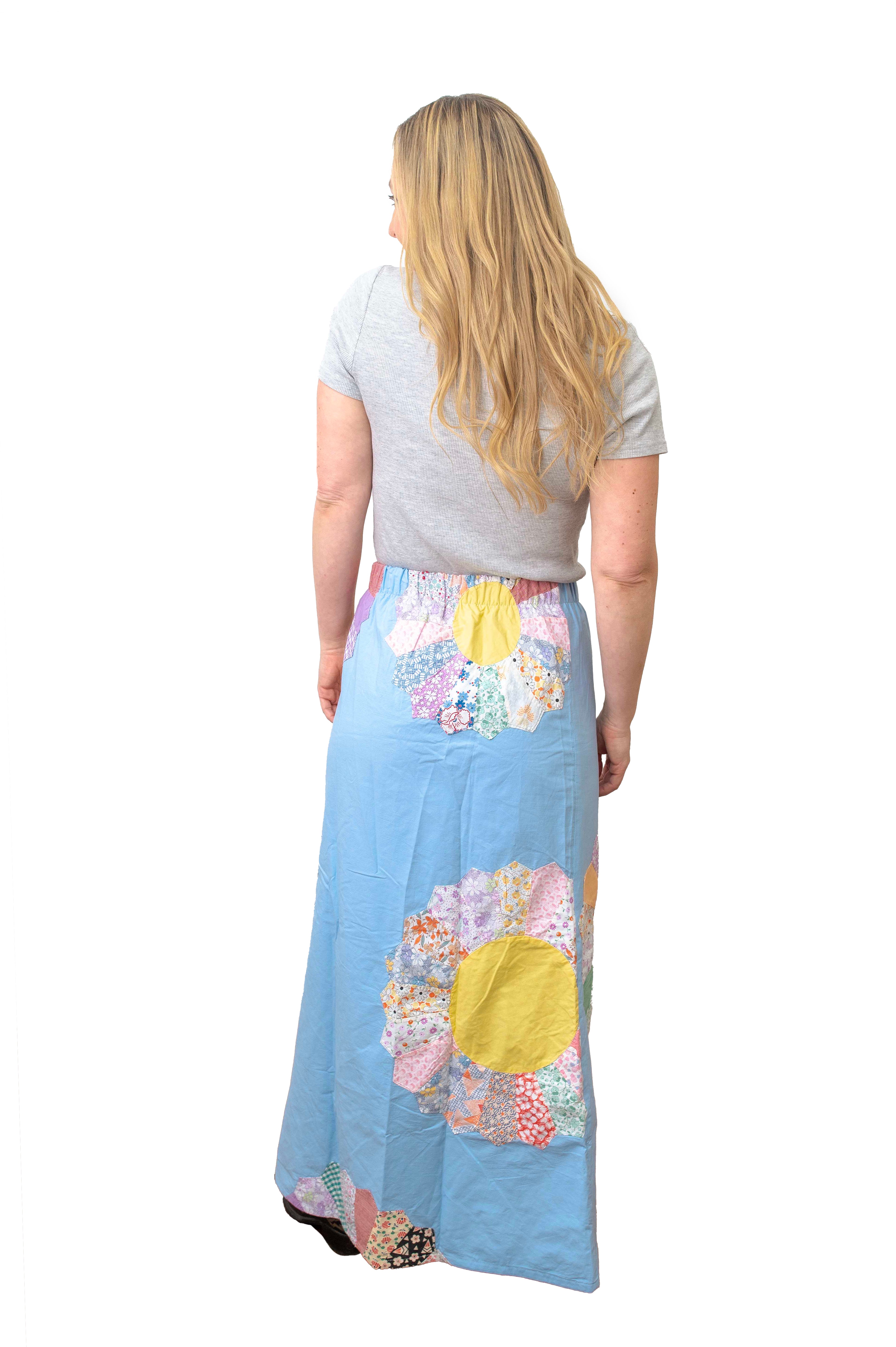 Blue Dresden Plate Quilt Top Maxi Skirt