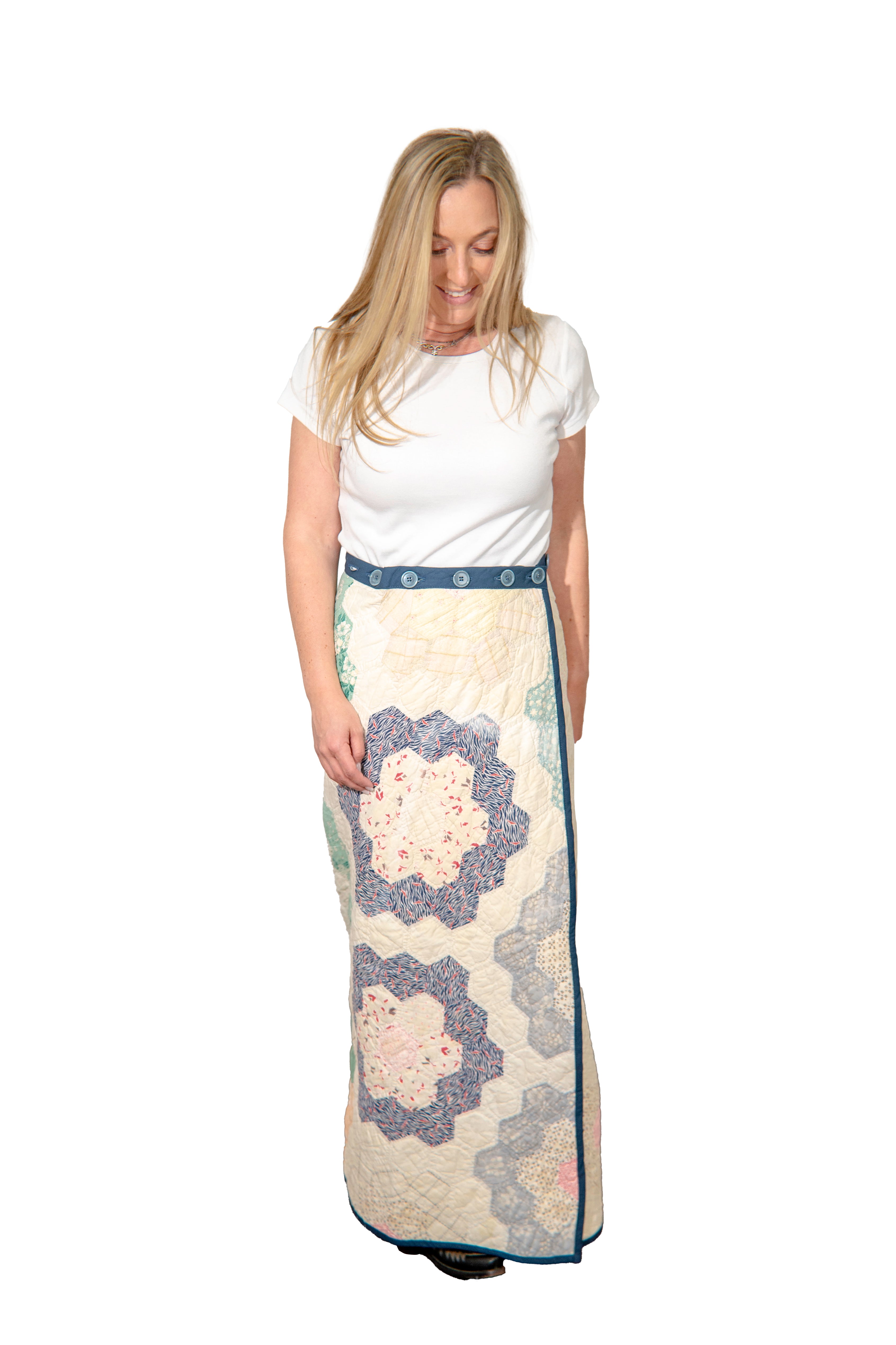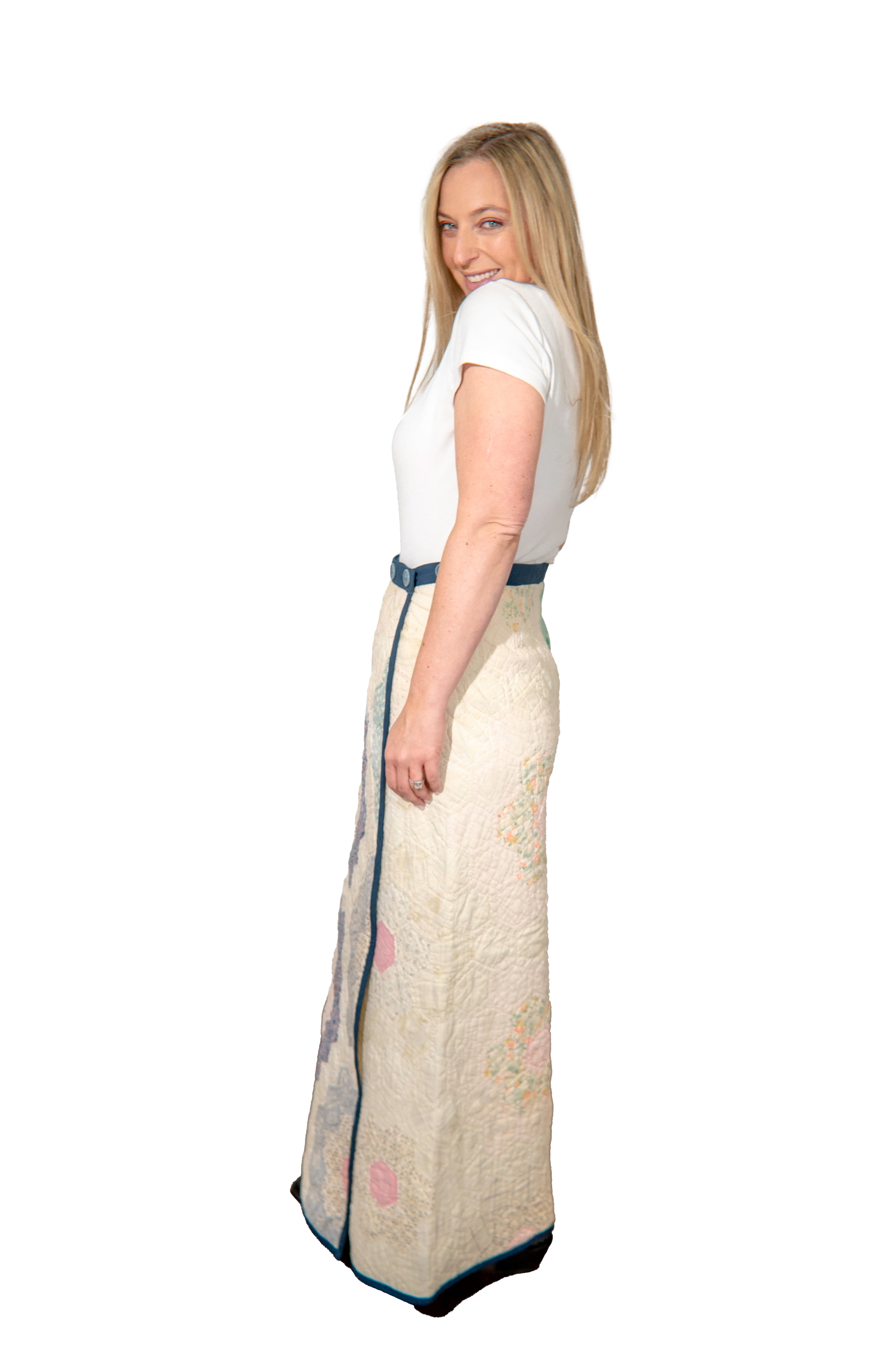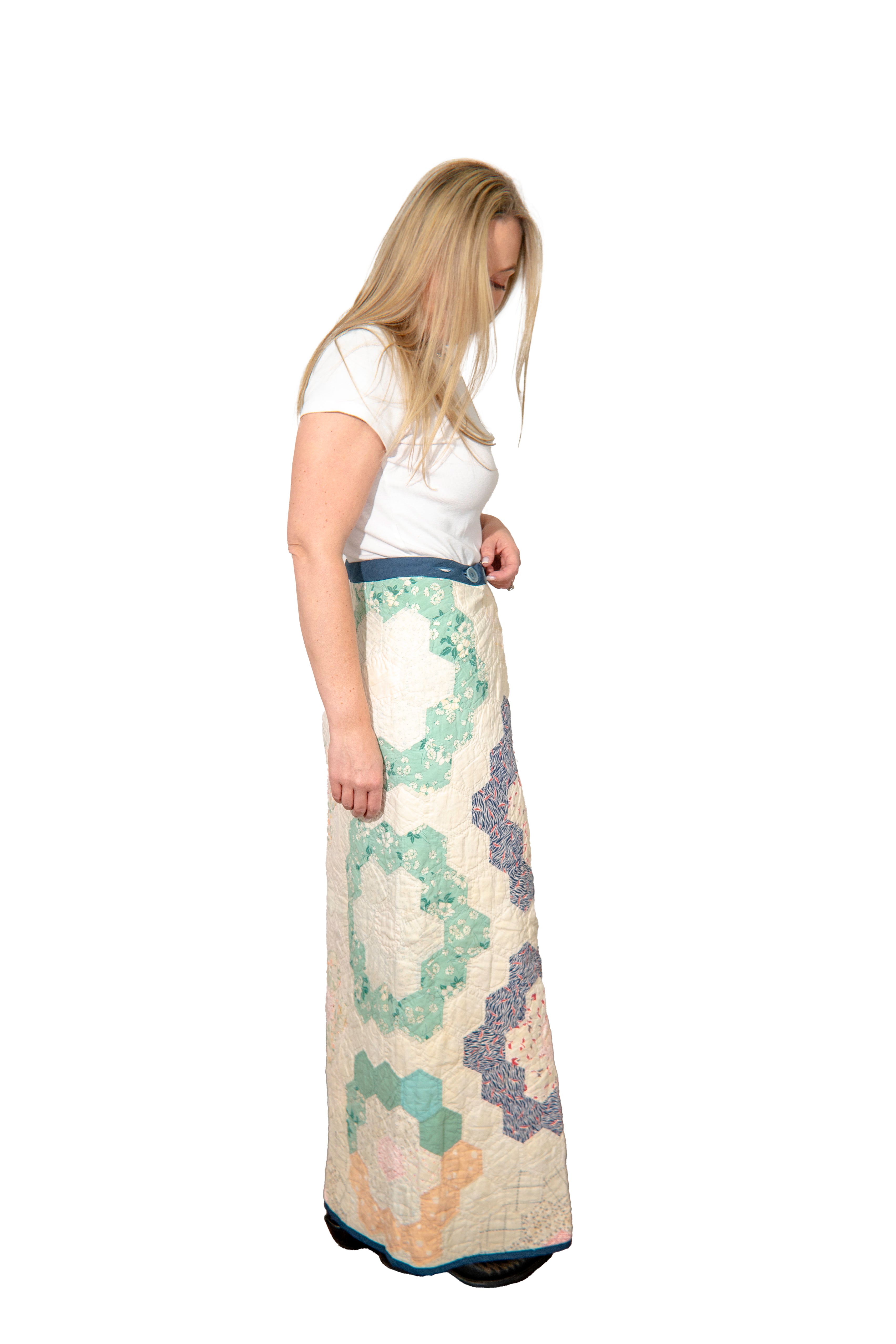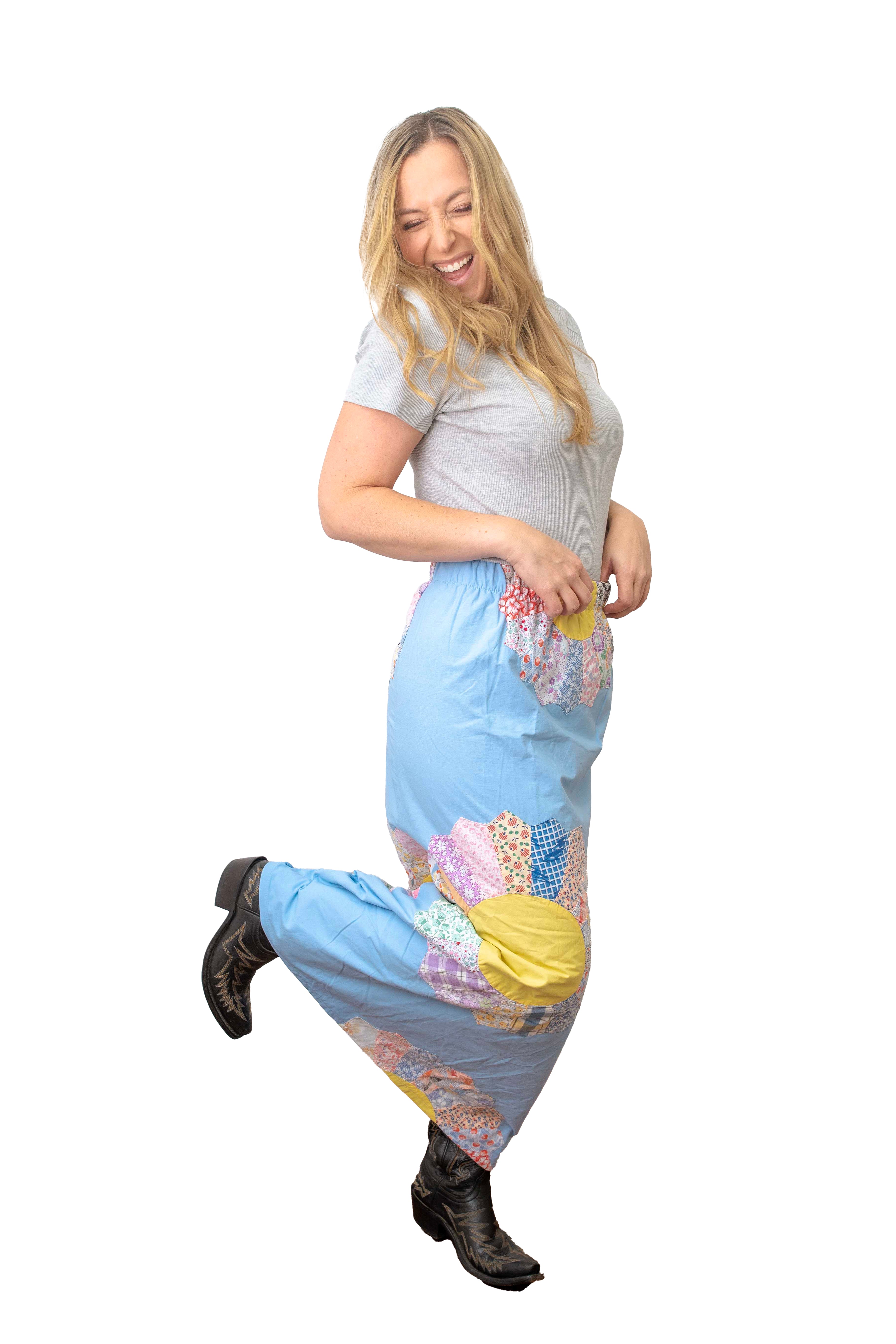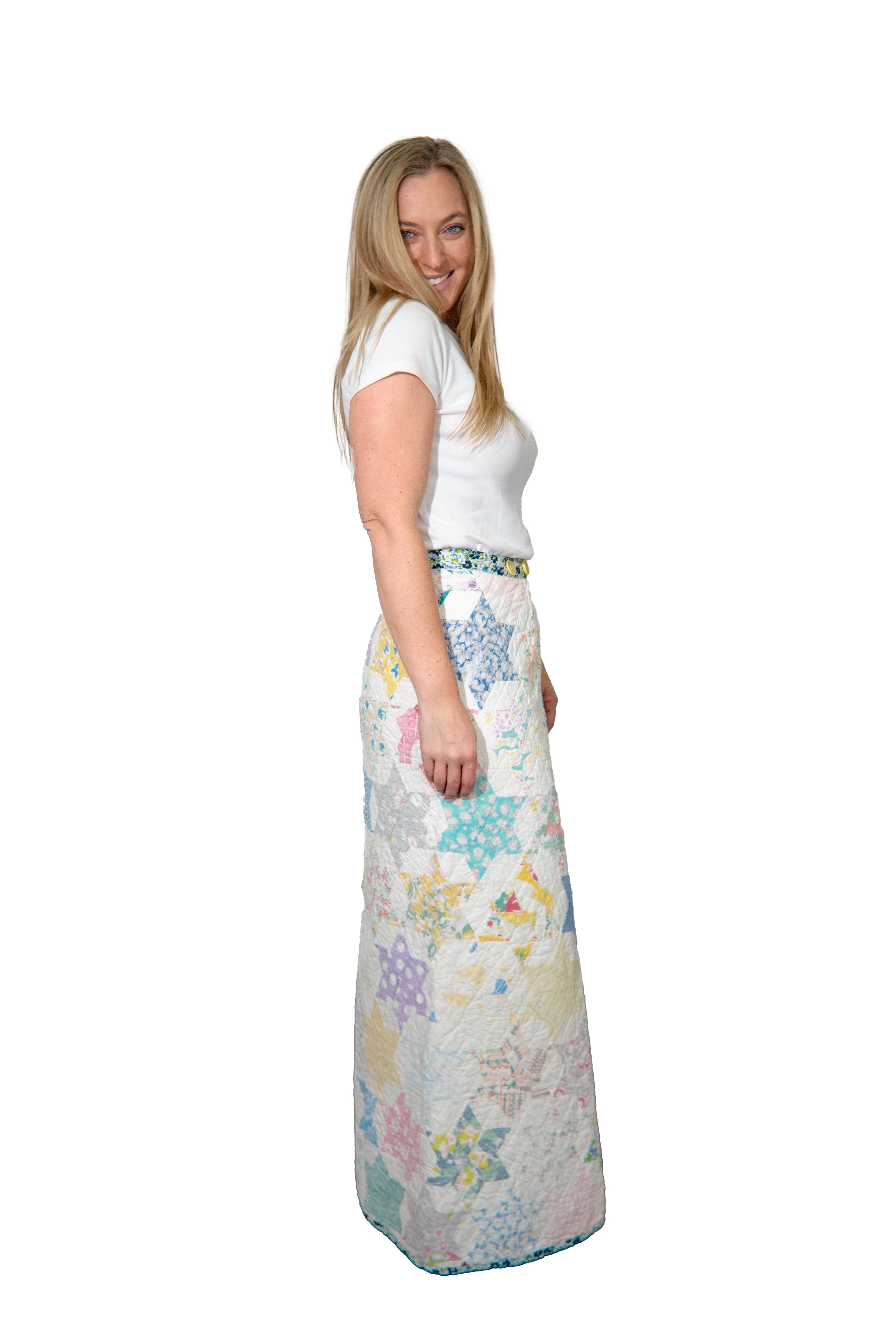 Blue Dresden Plate Quilt Top Maxi Skirt
