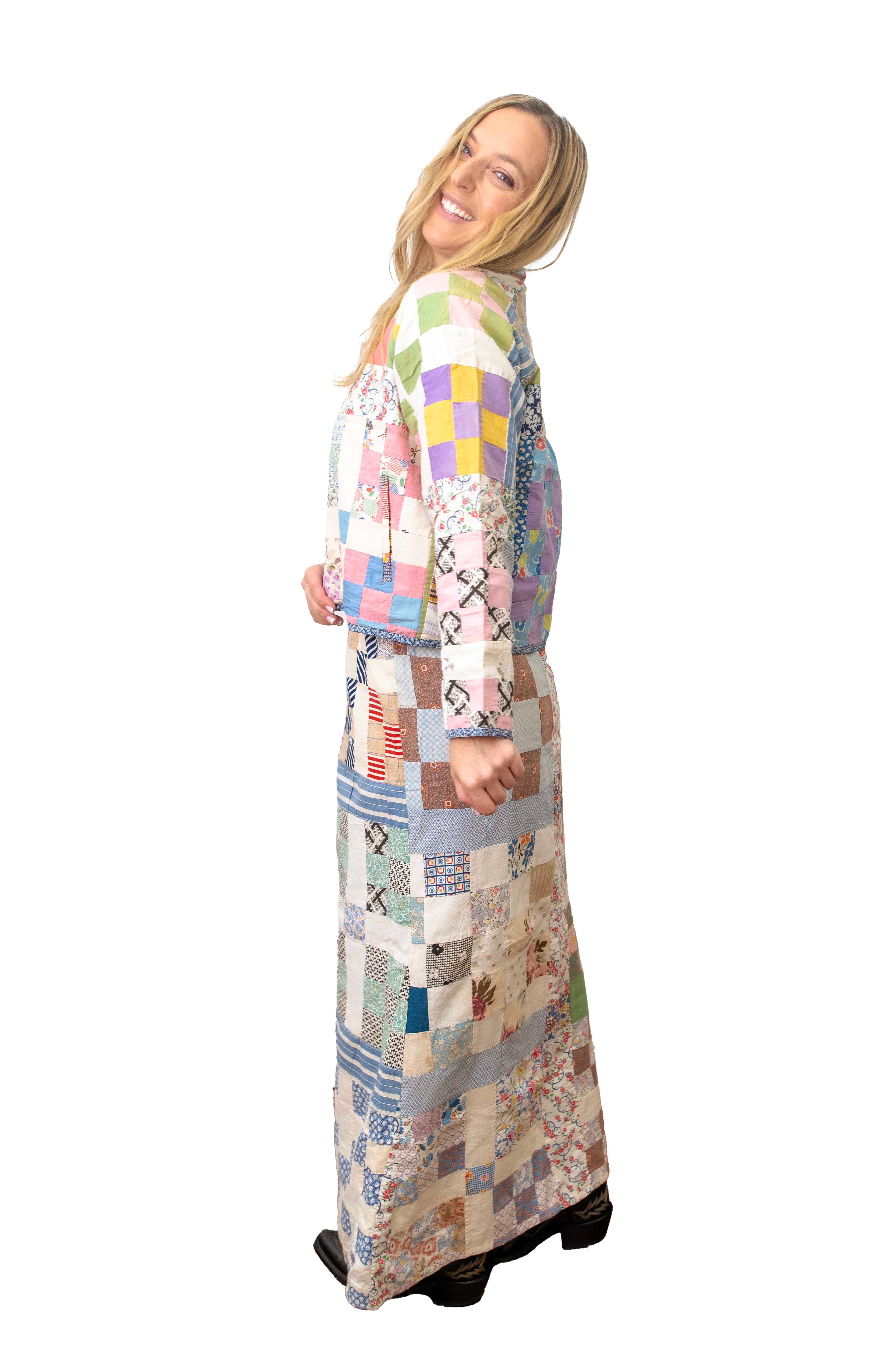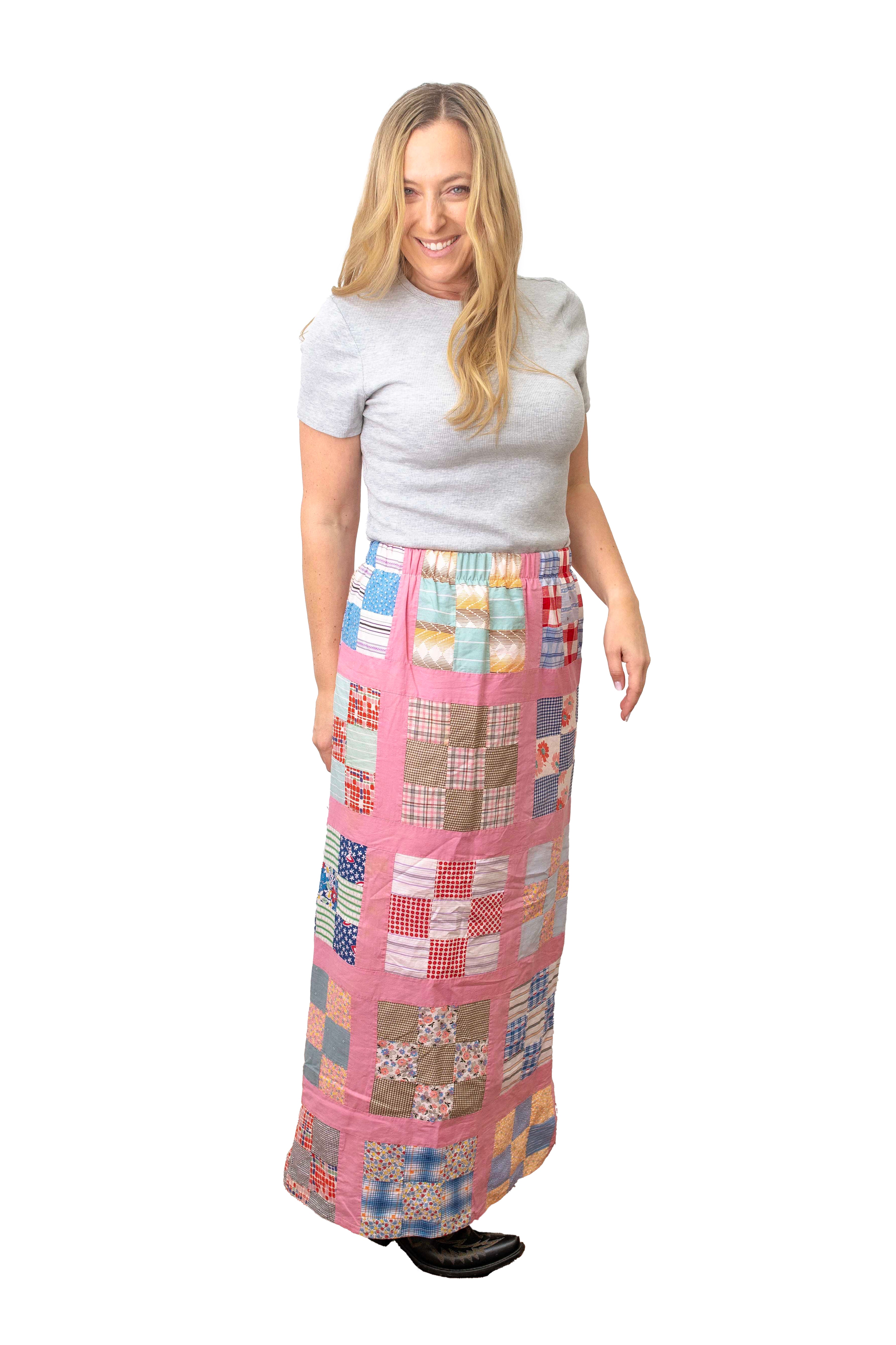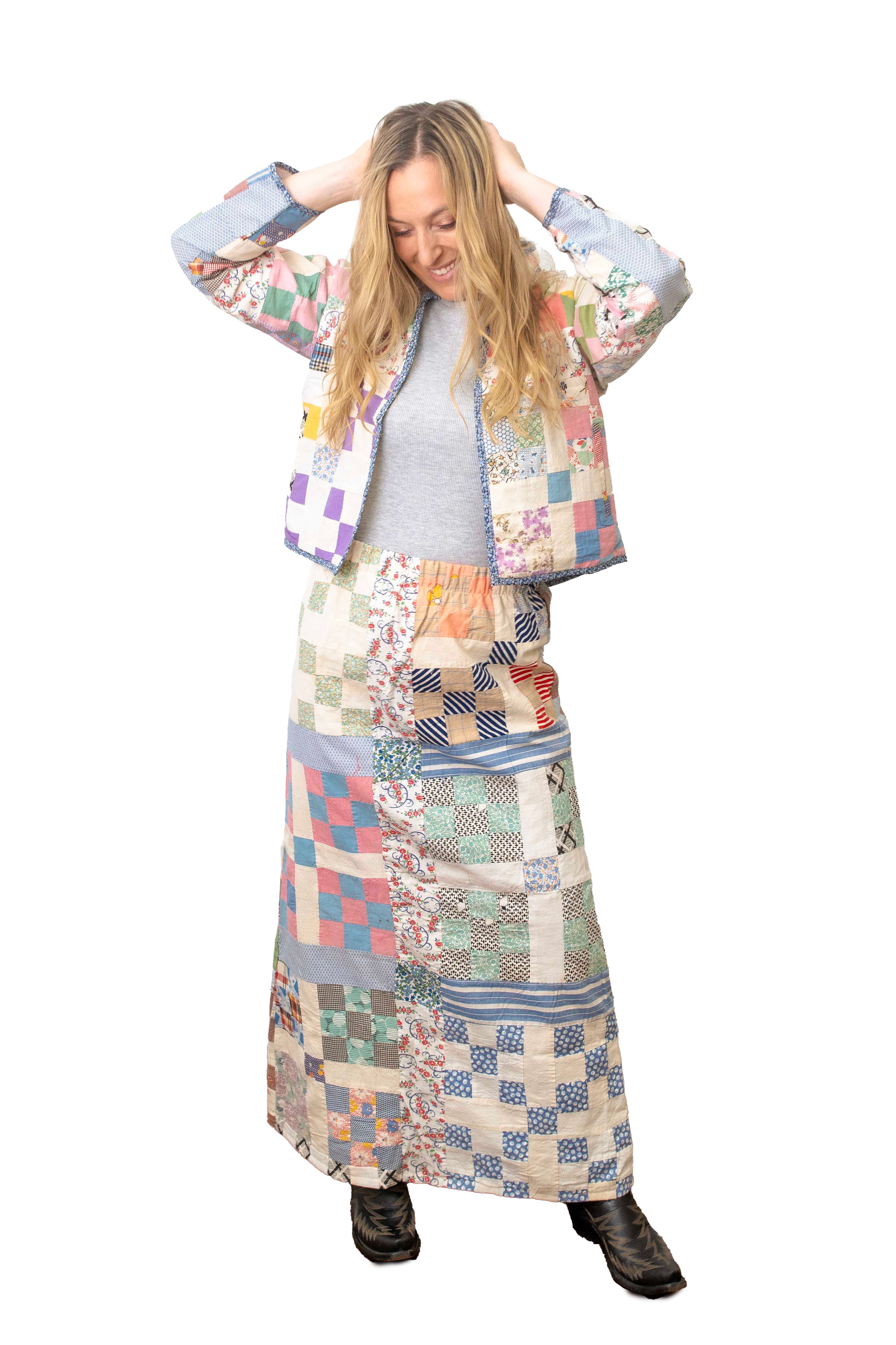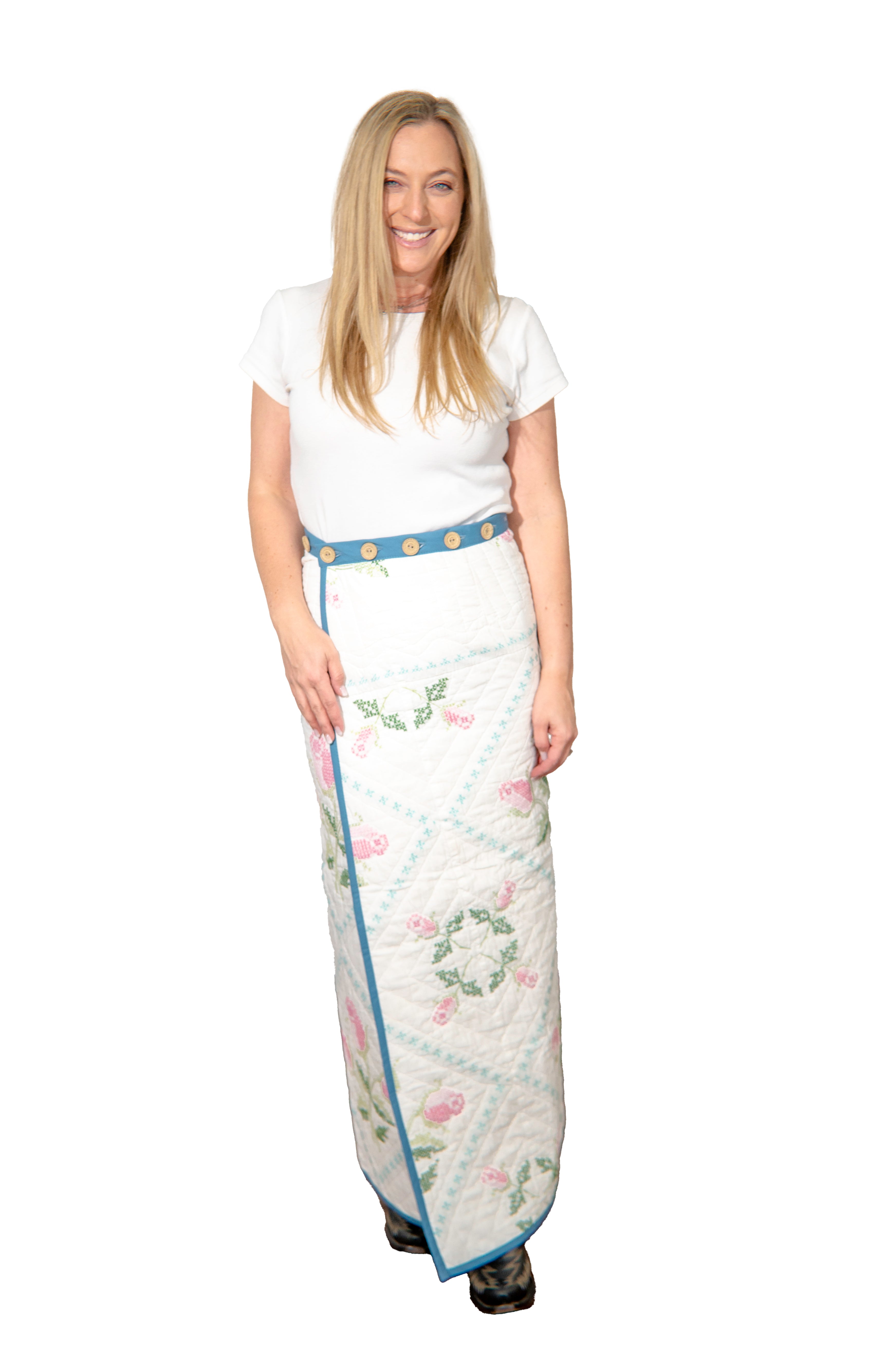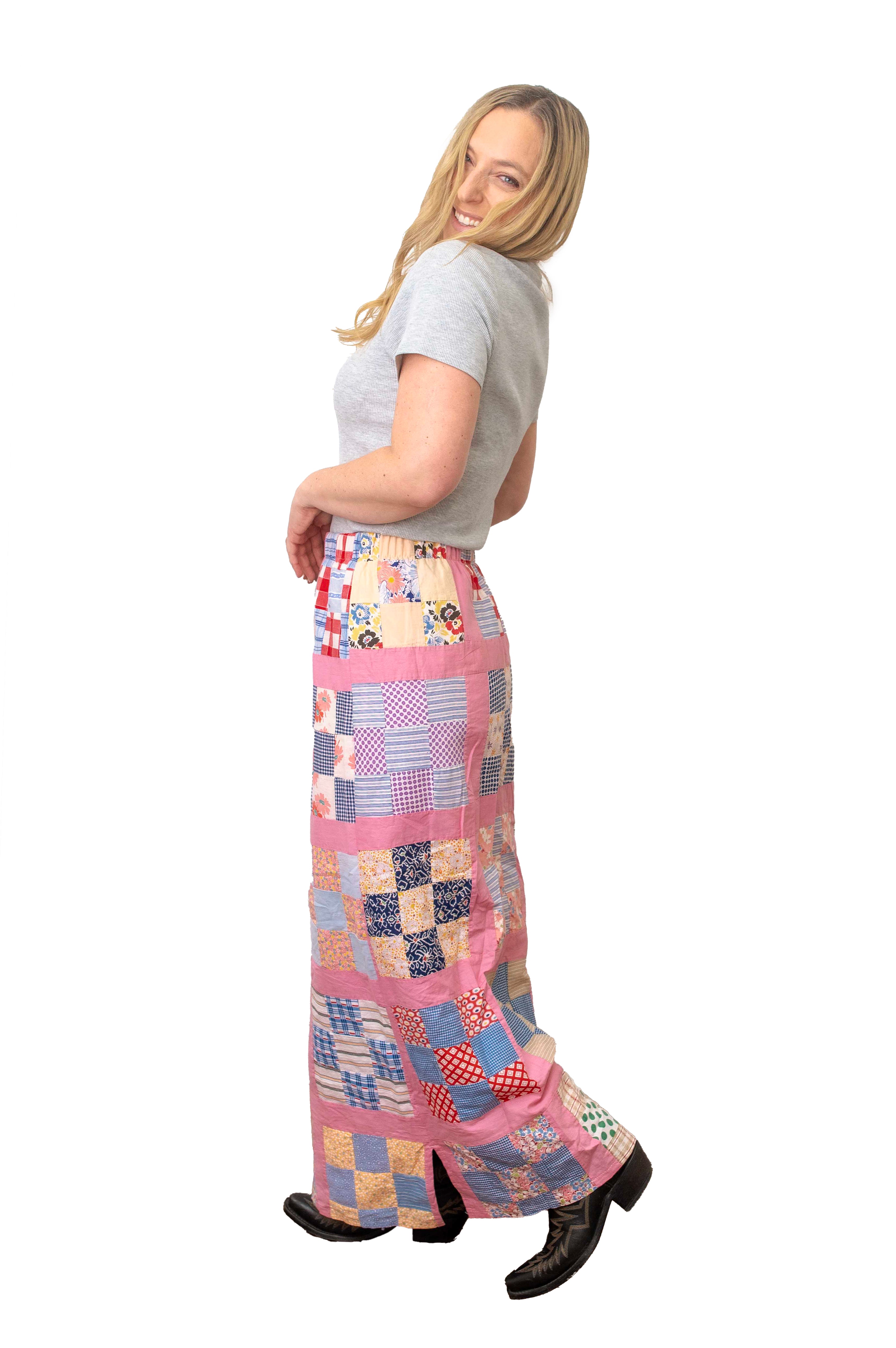 Blue Dresden Plate Quilt Top Maxi Skirt