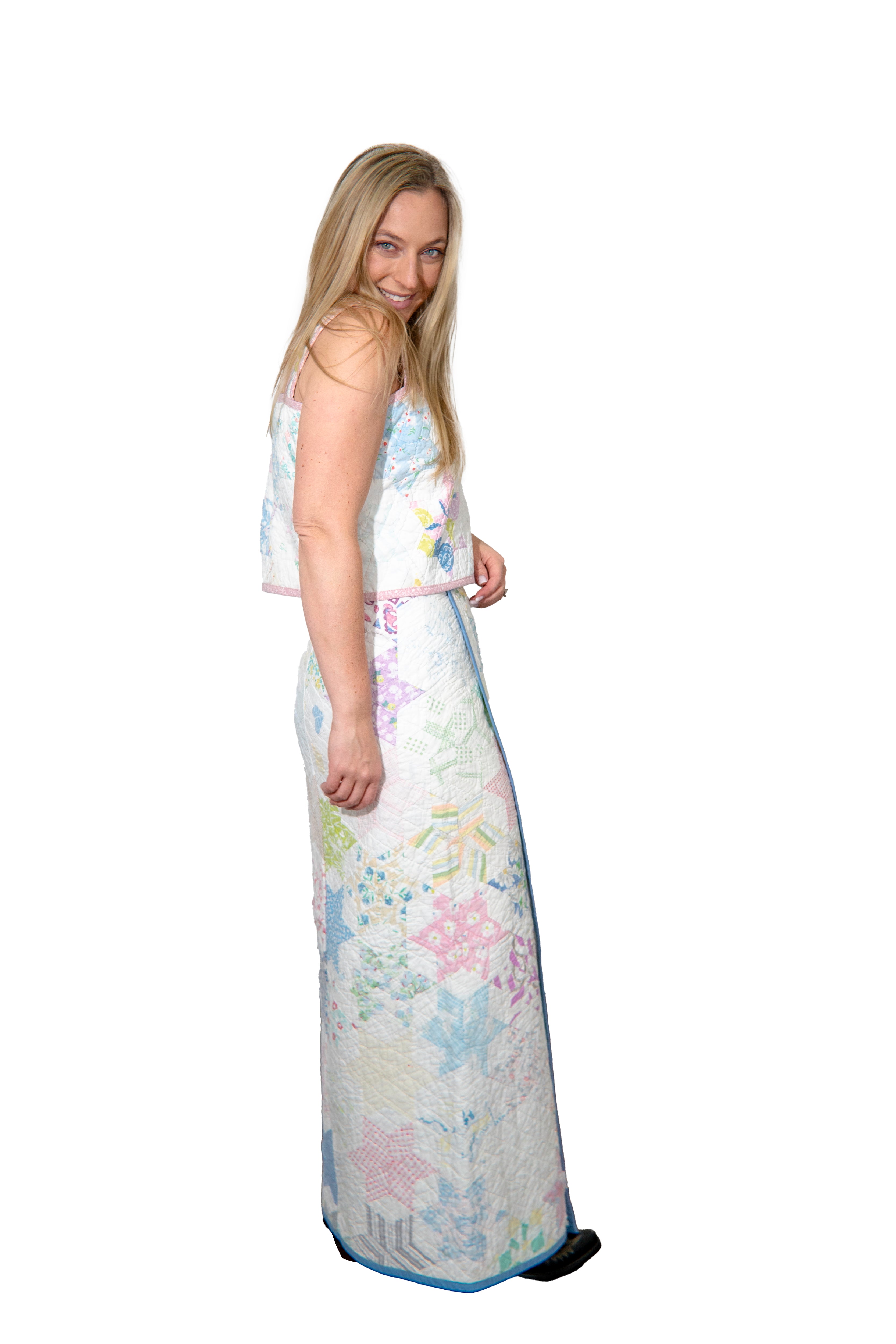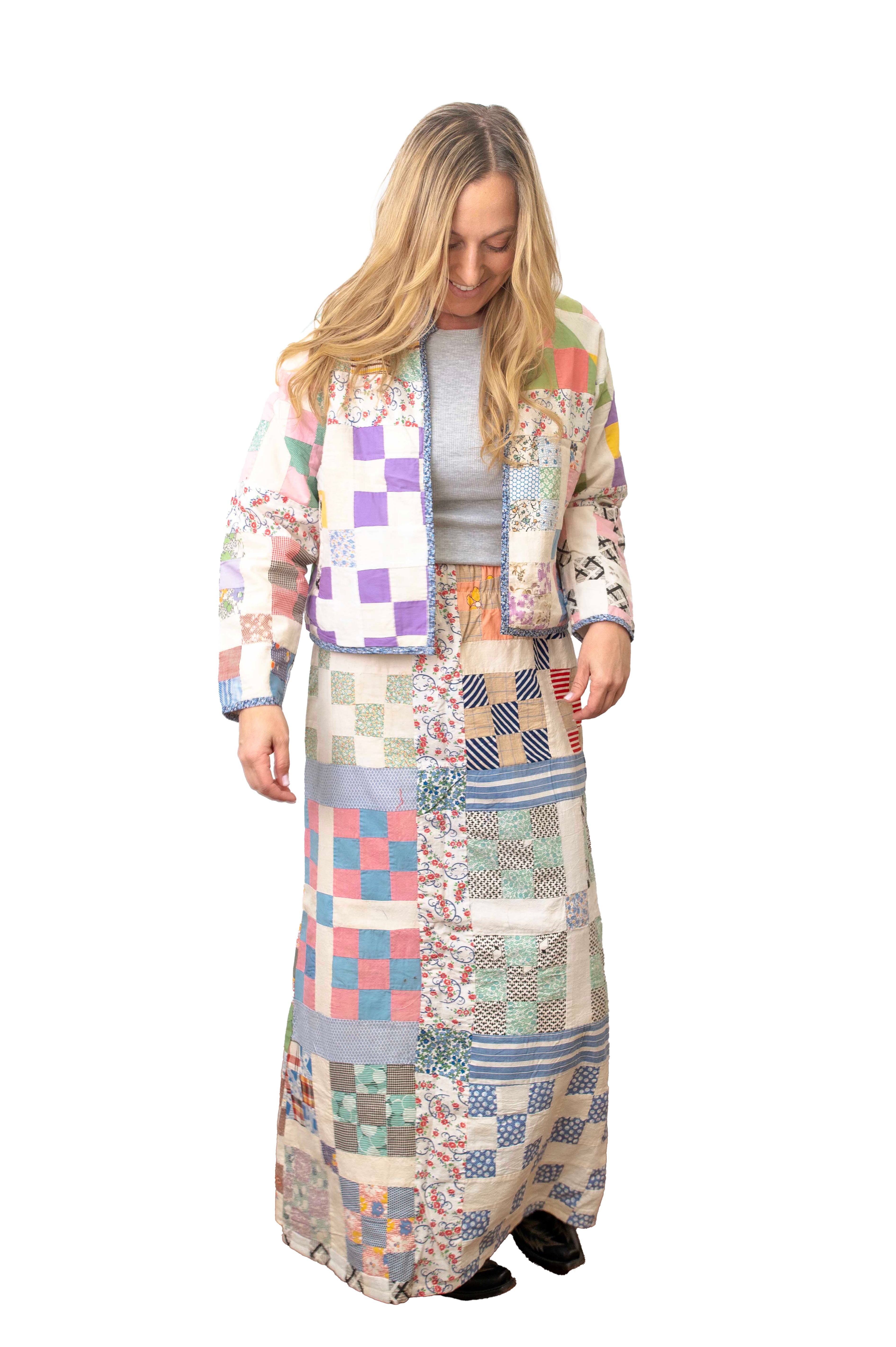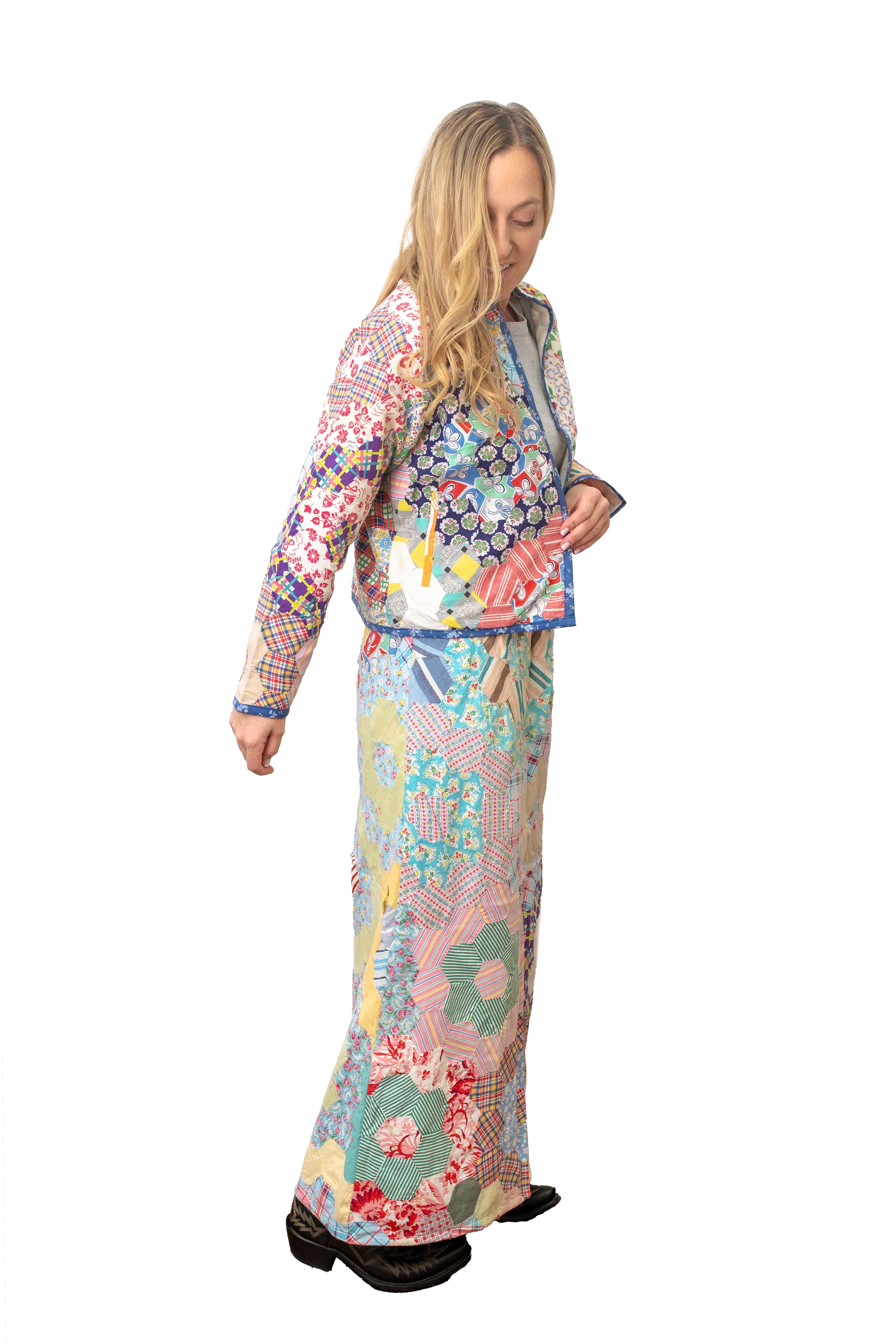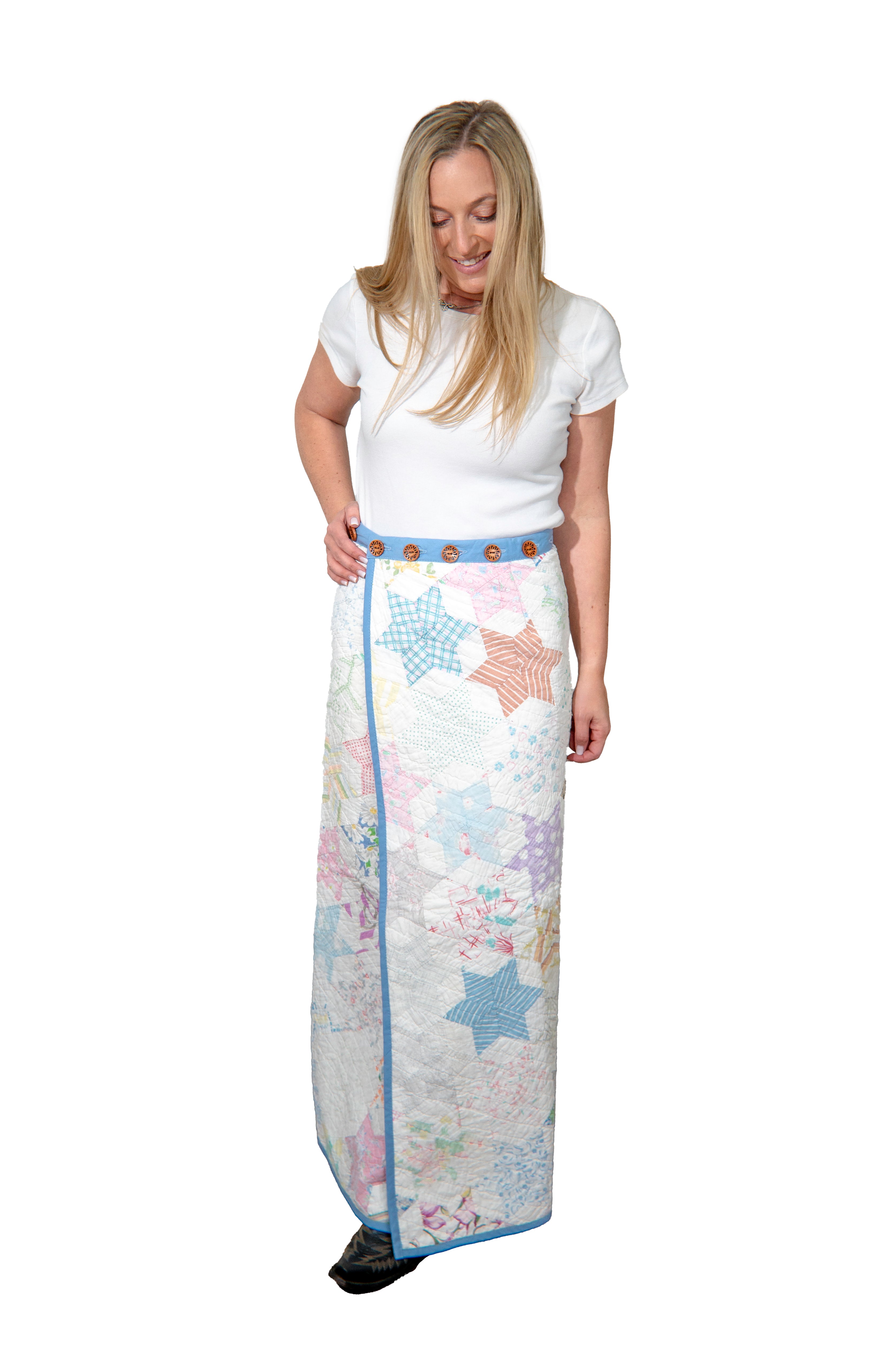 Blue Dresden Plate Quilt Top Maxi Skirt