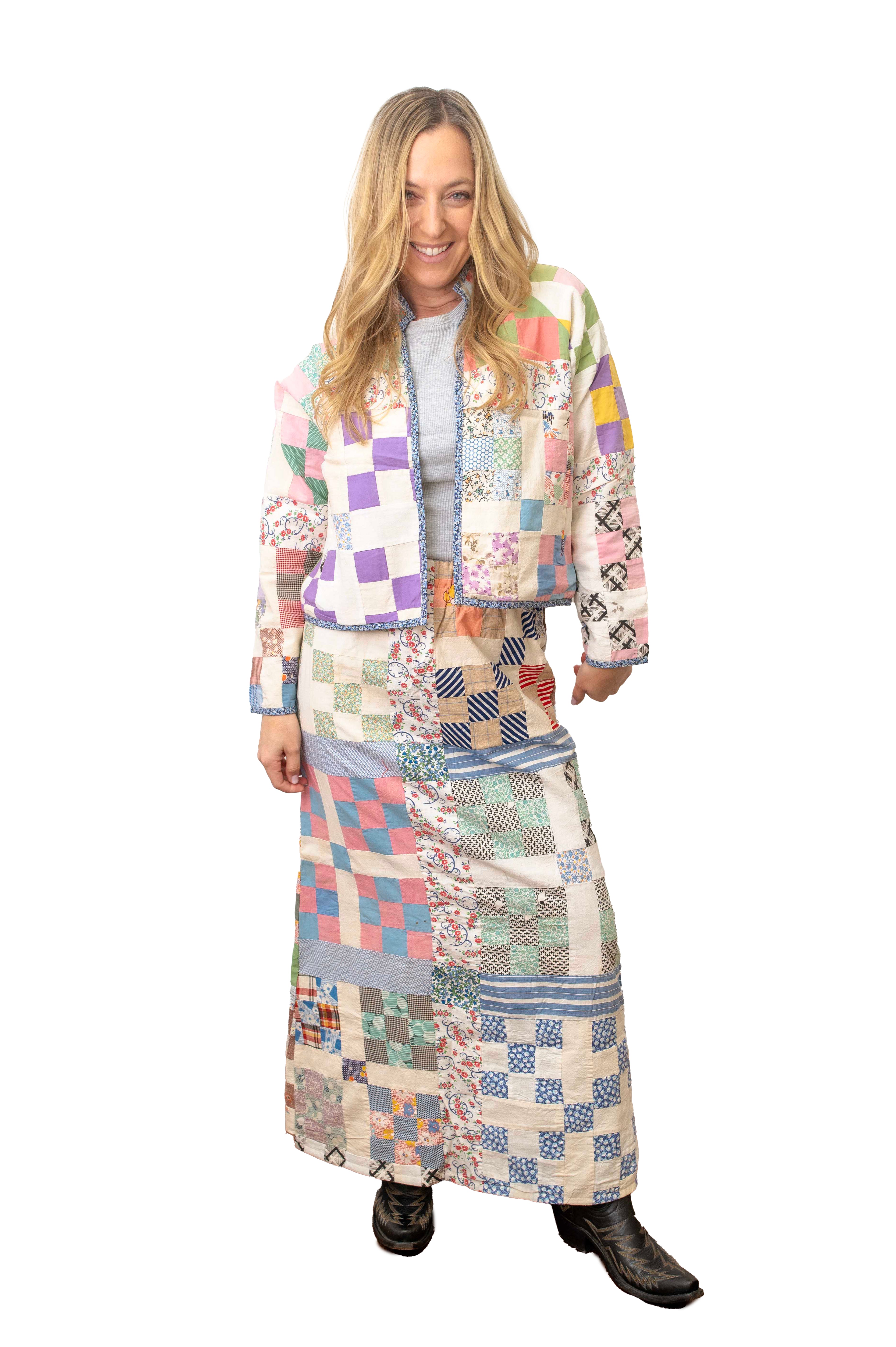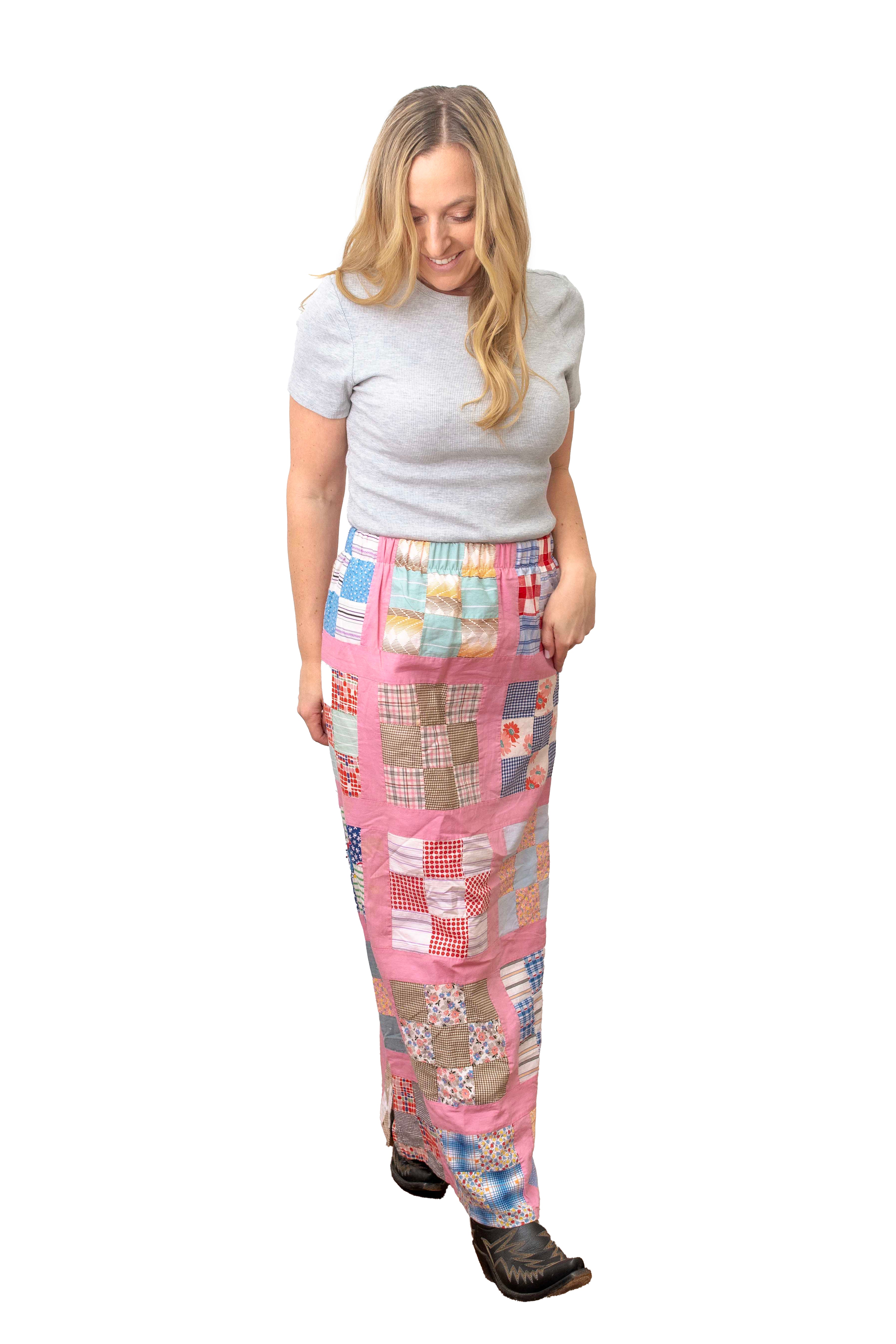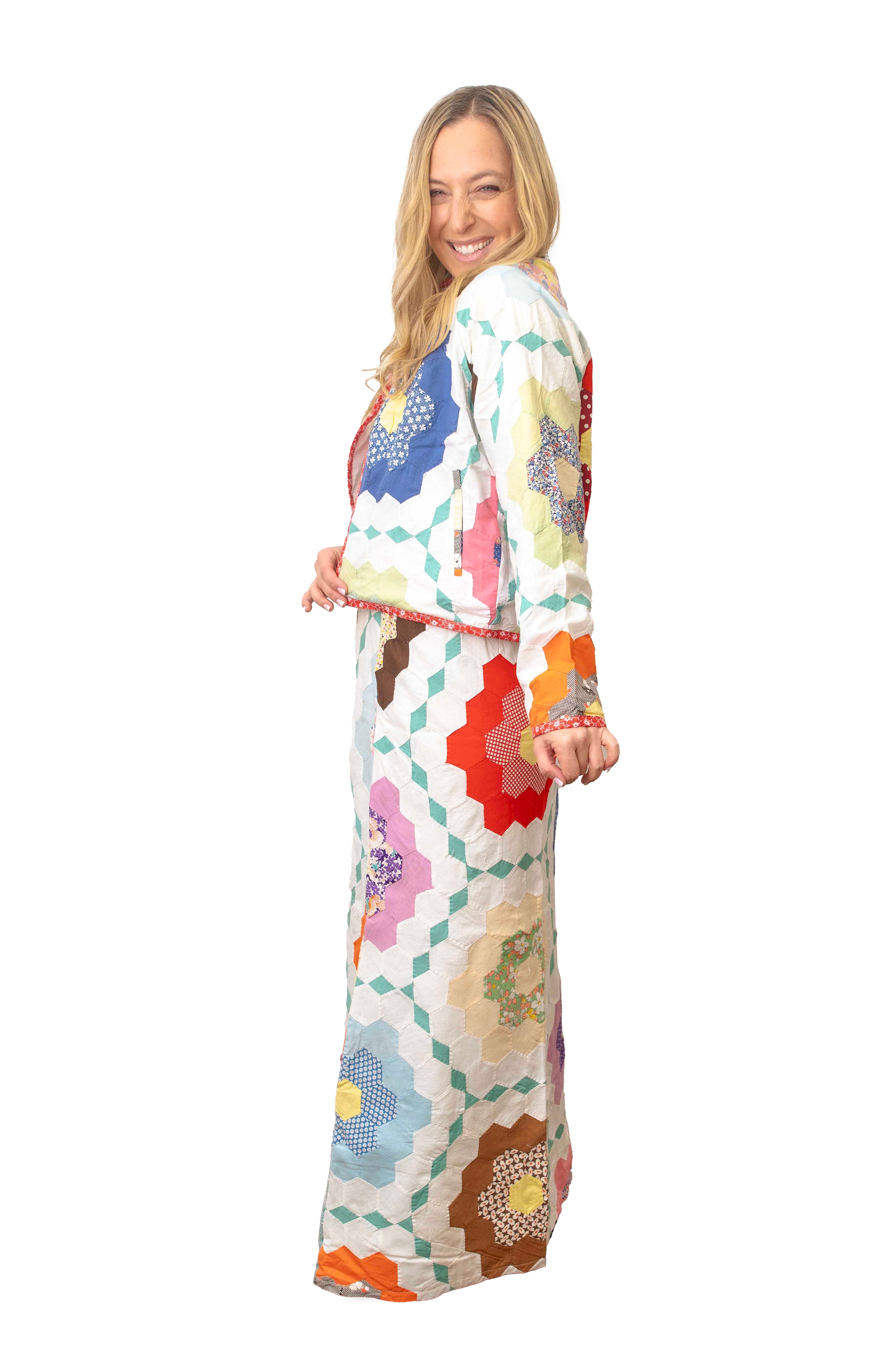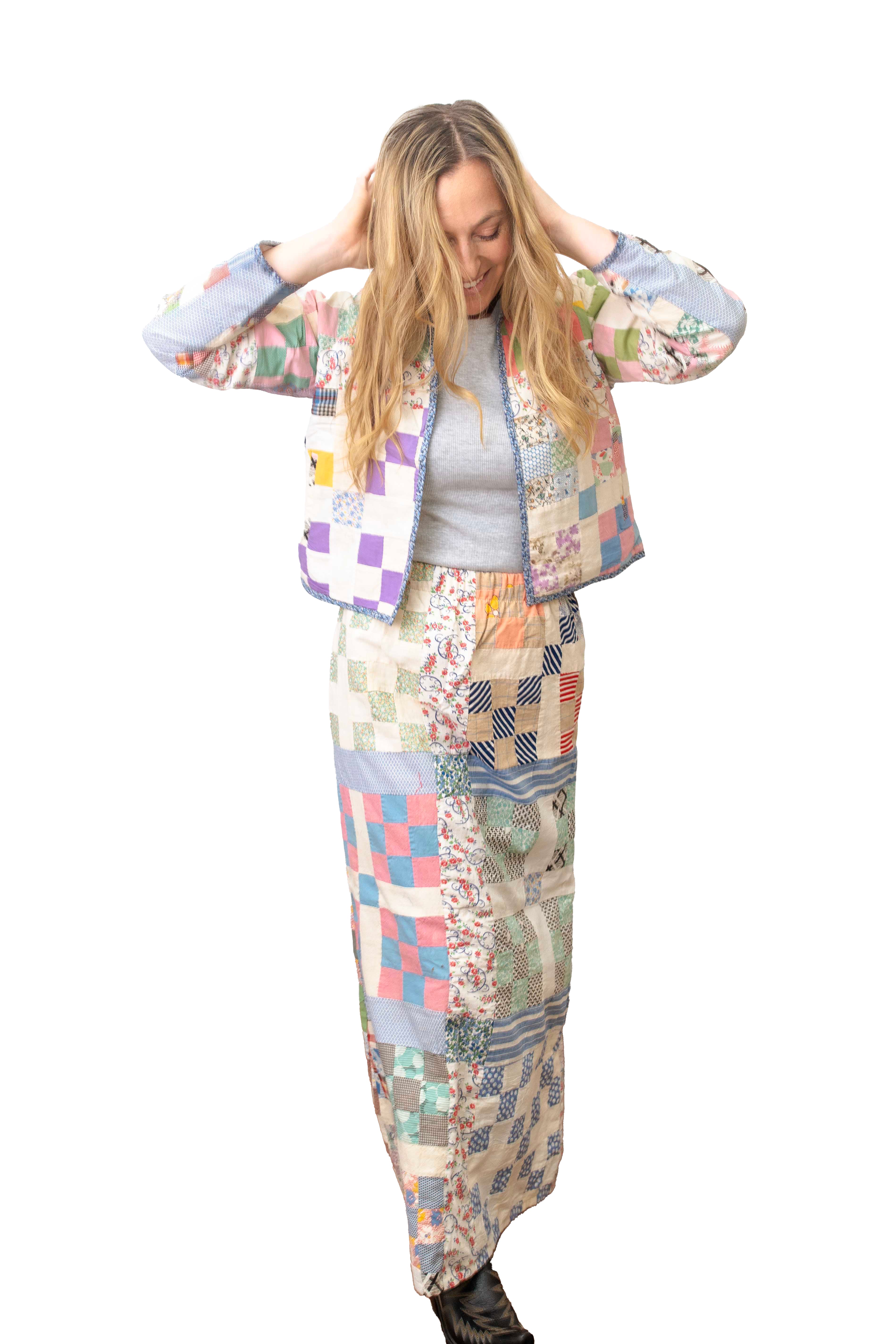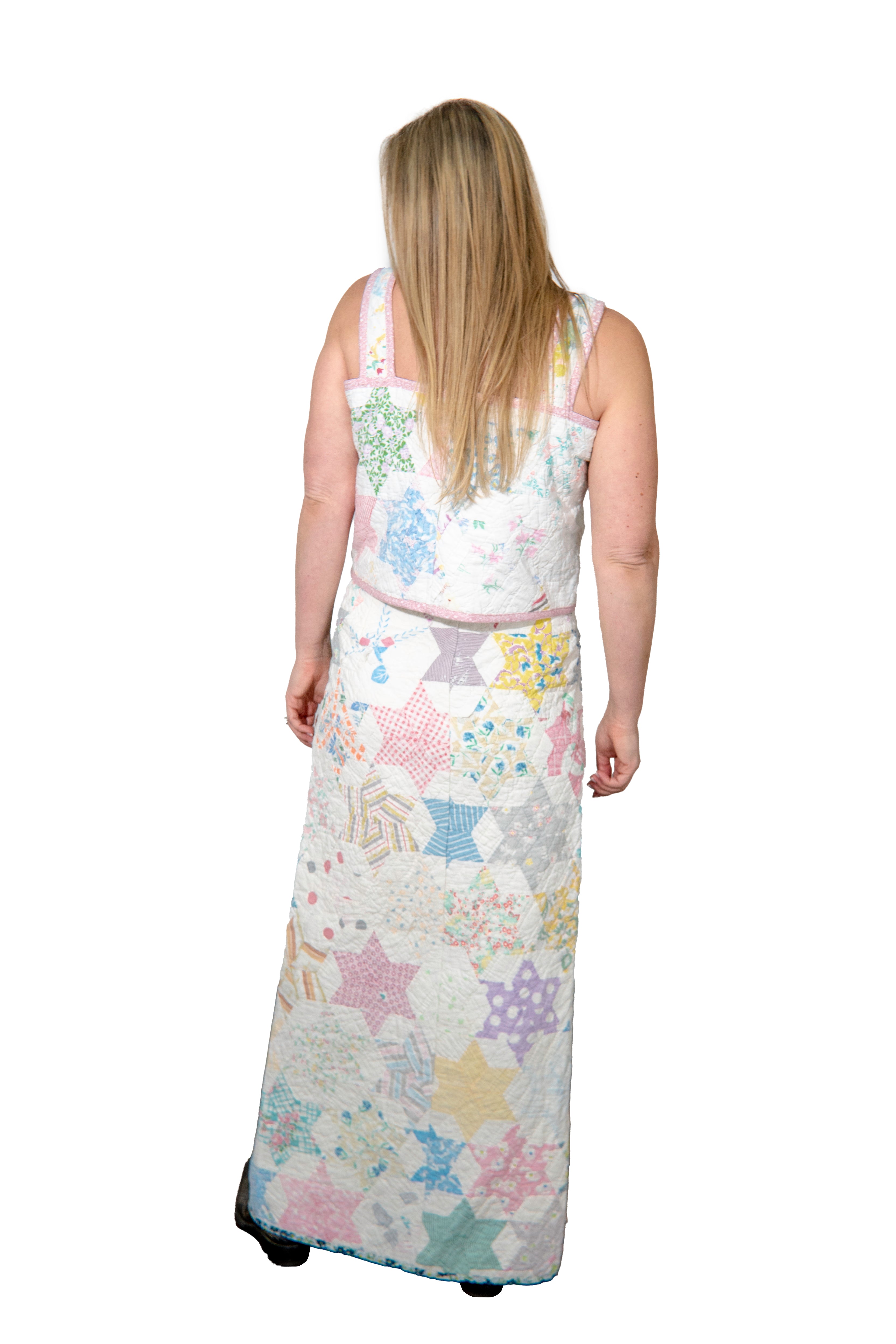 Blue Dresden Plate Quilt Top Maxi Skirt