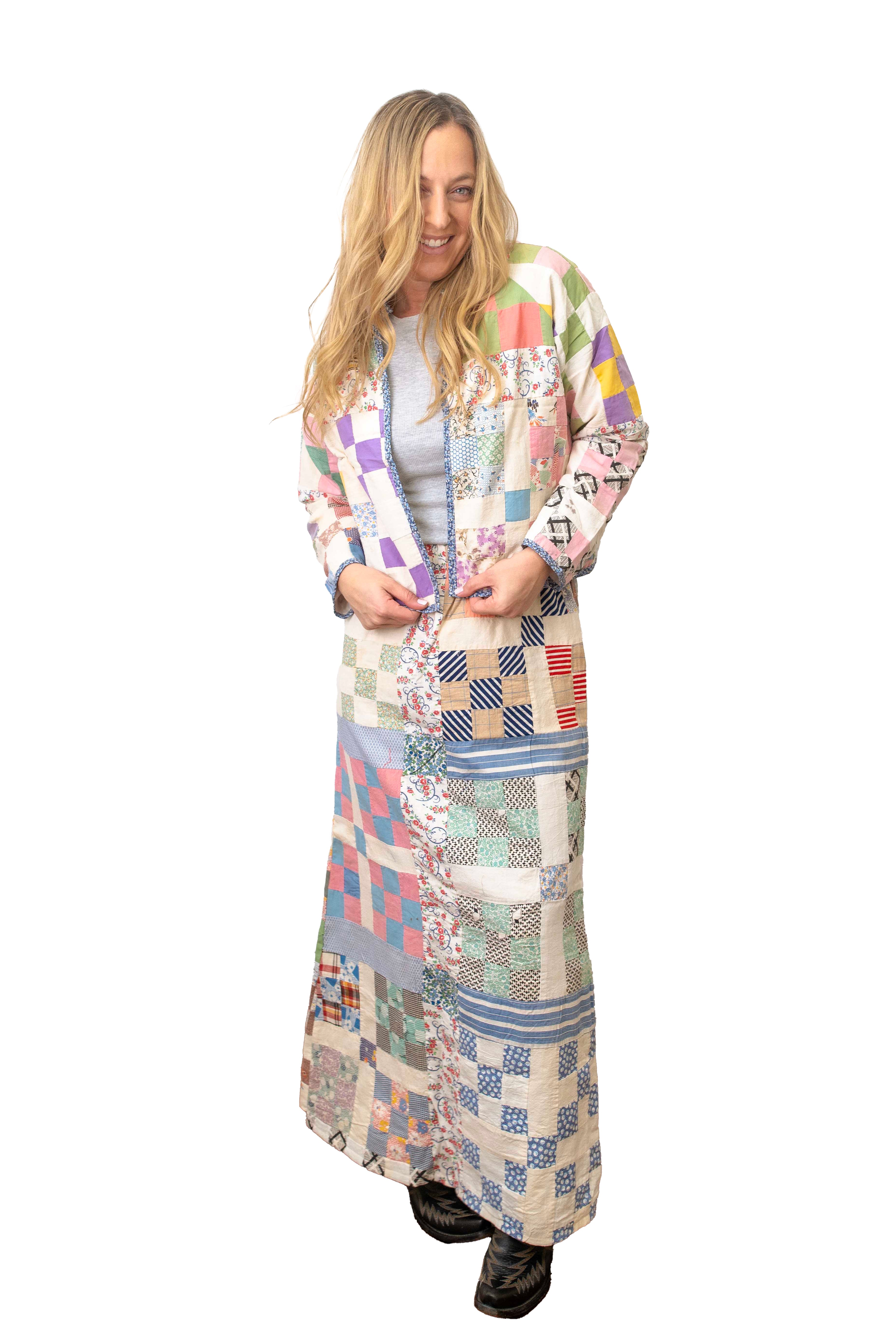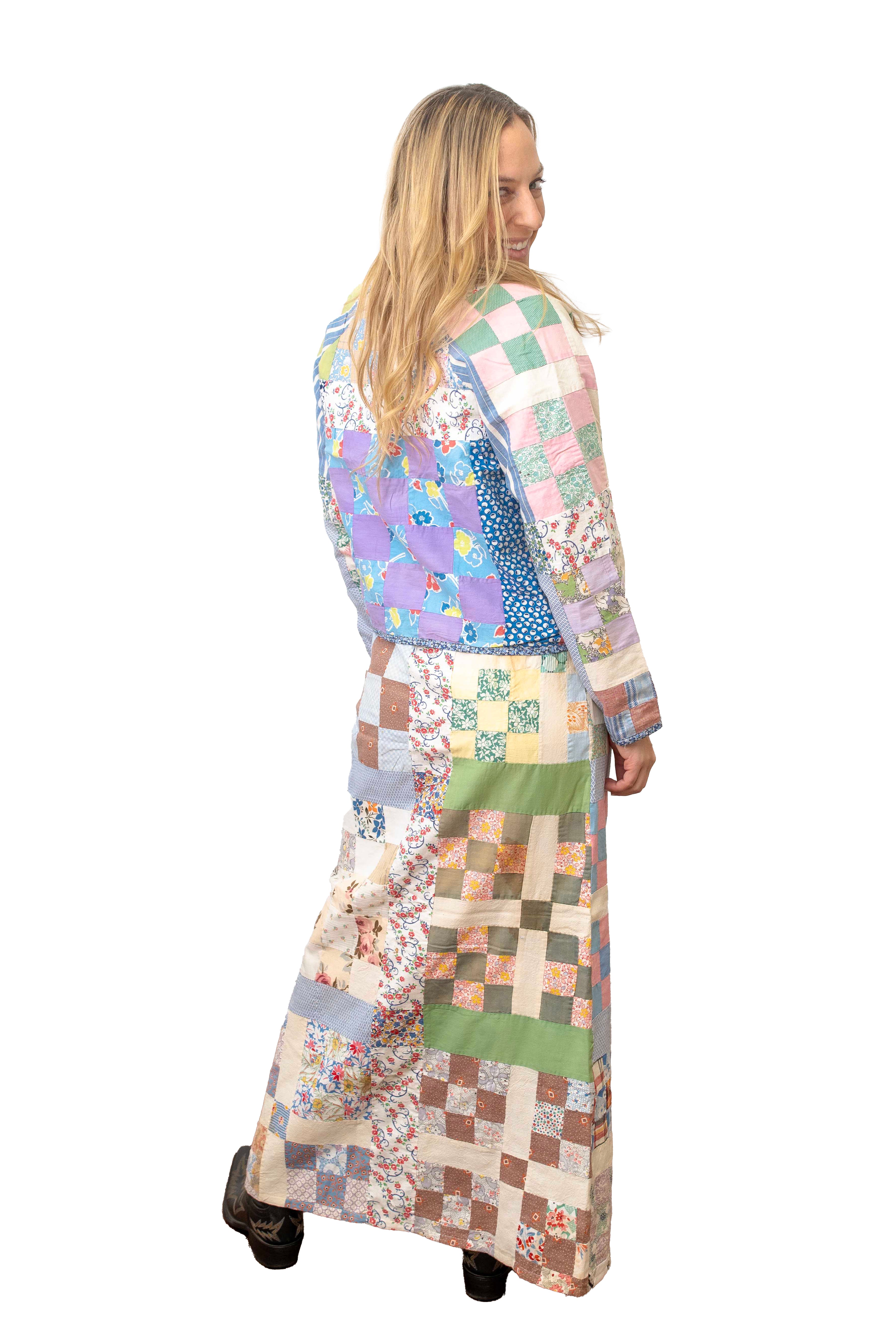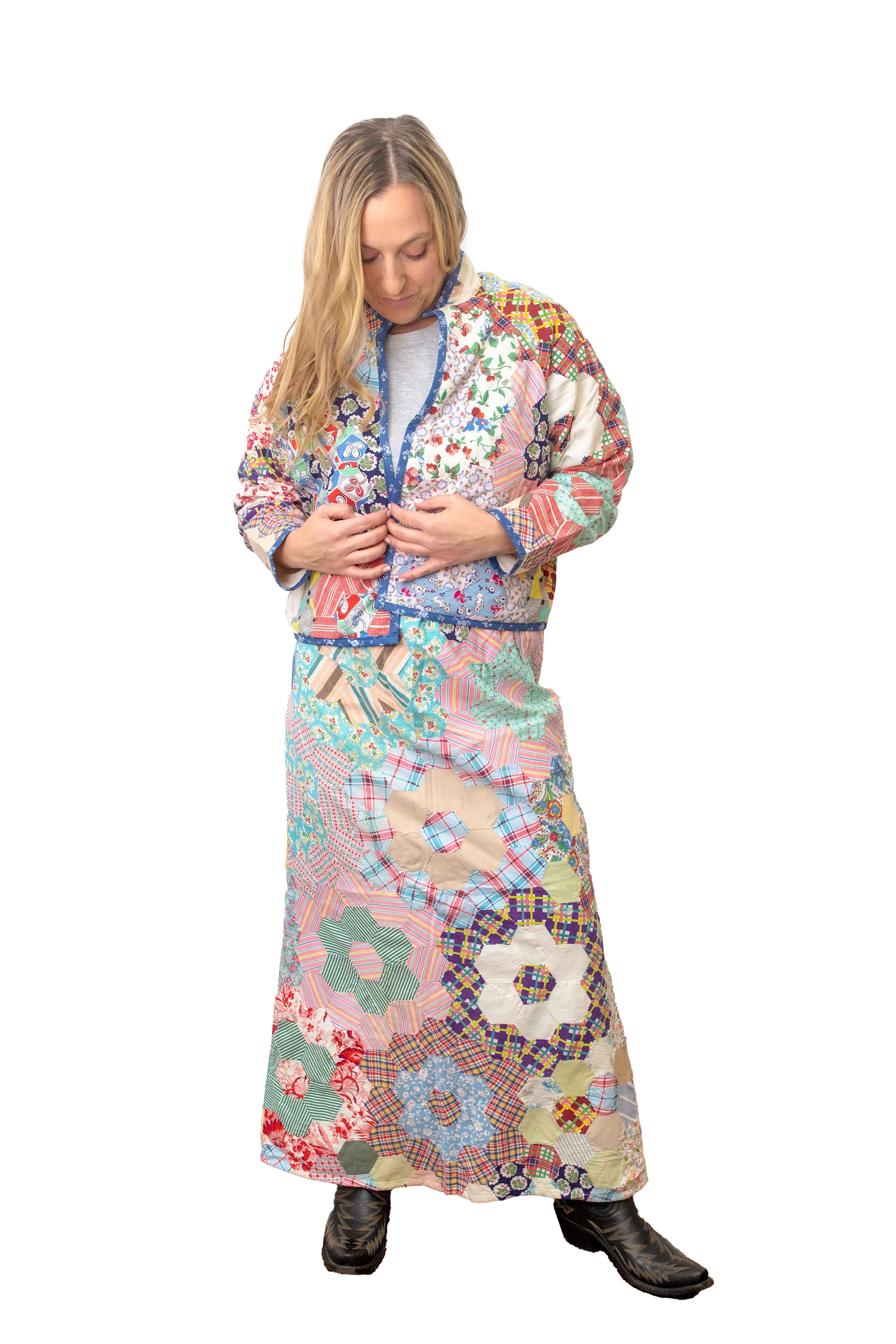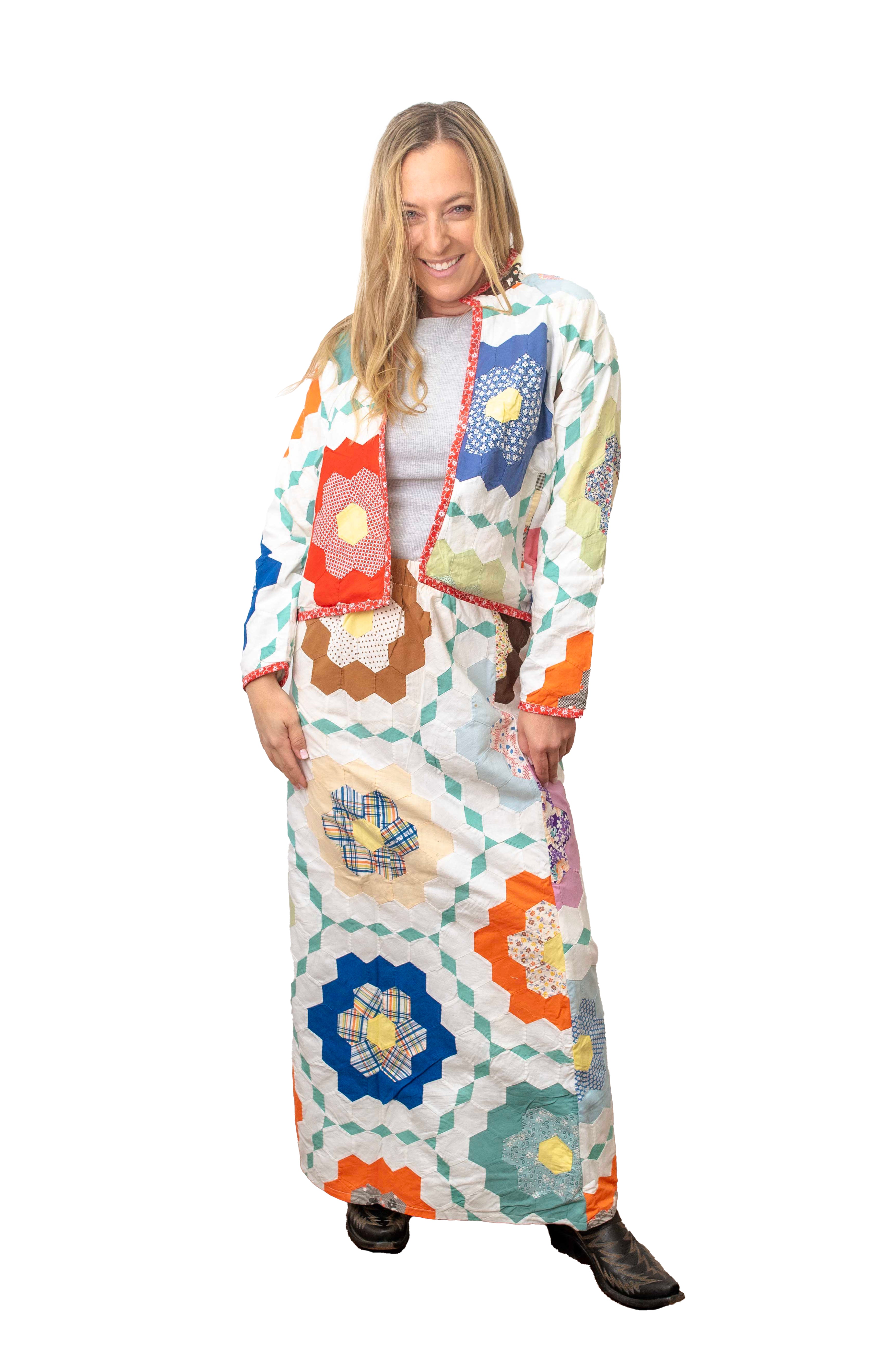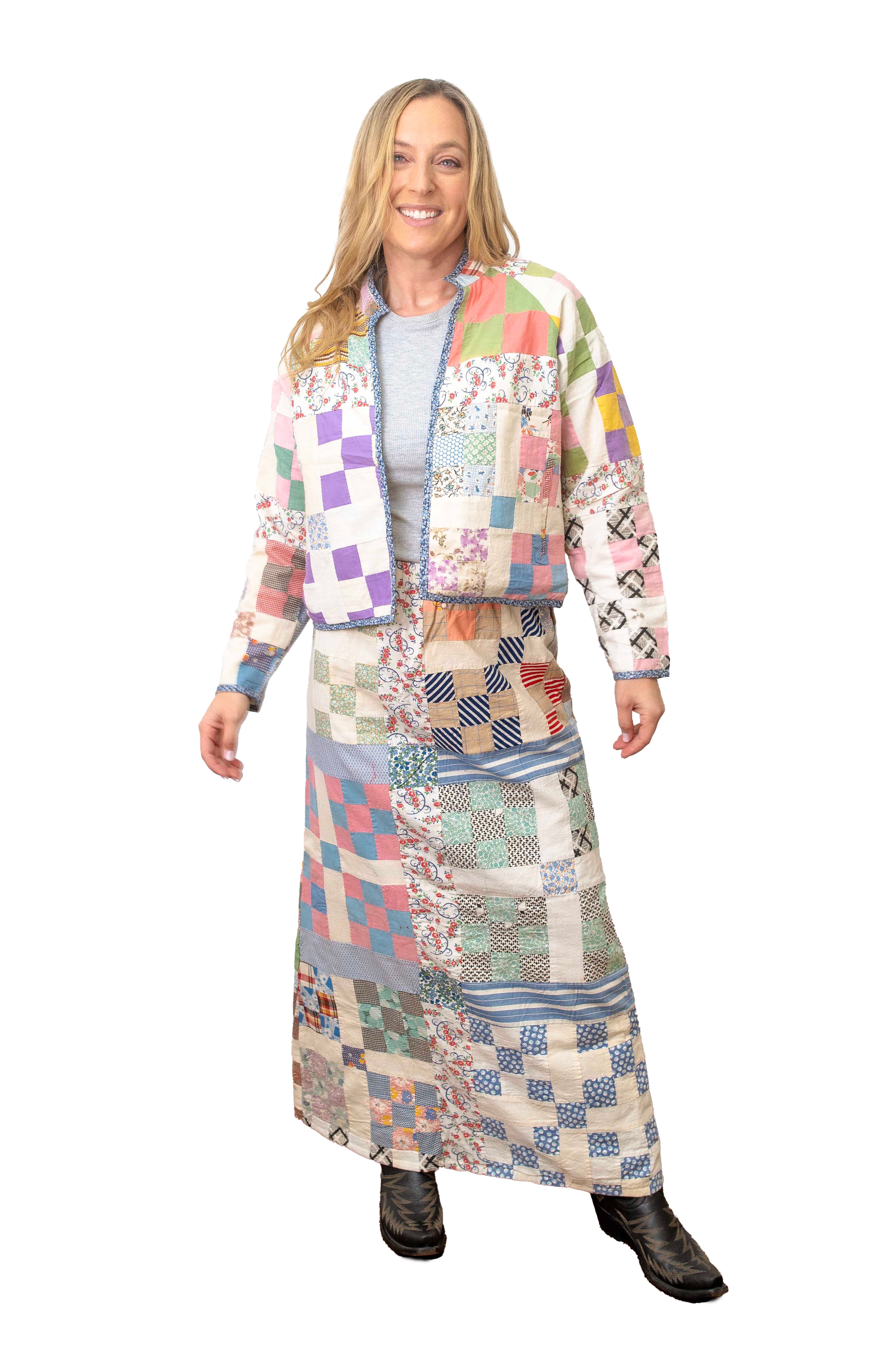 Blue Dresden Plate Quilt Top Maxi Skirt