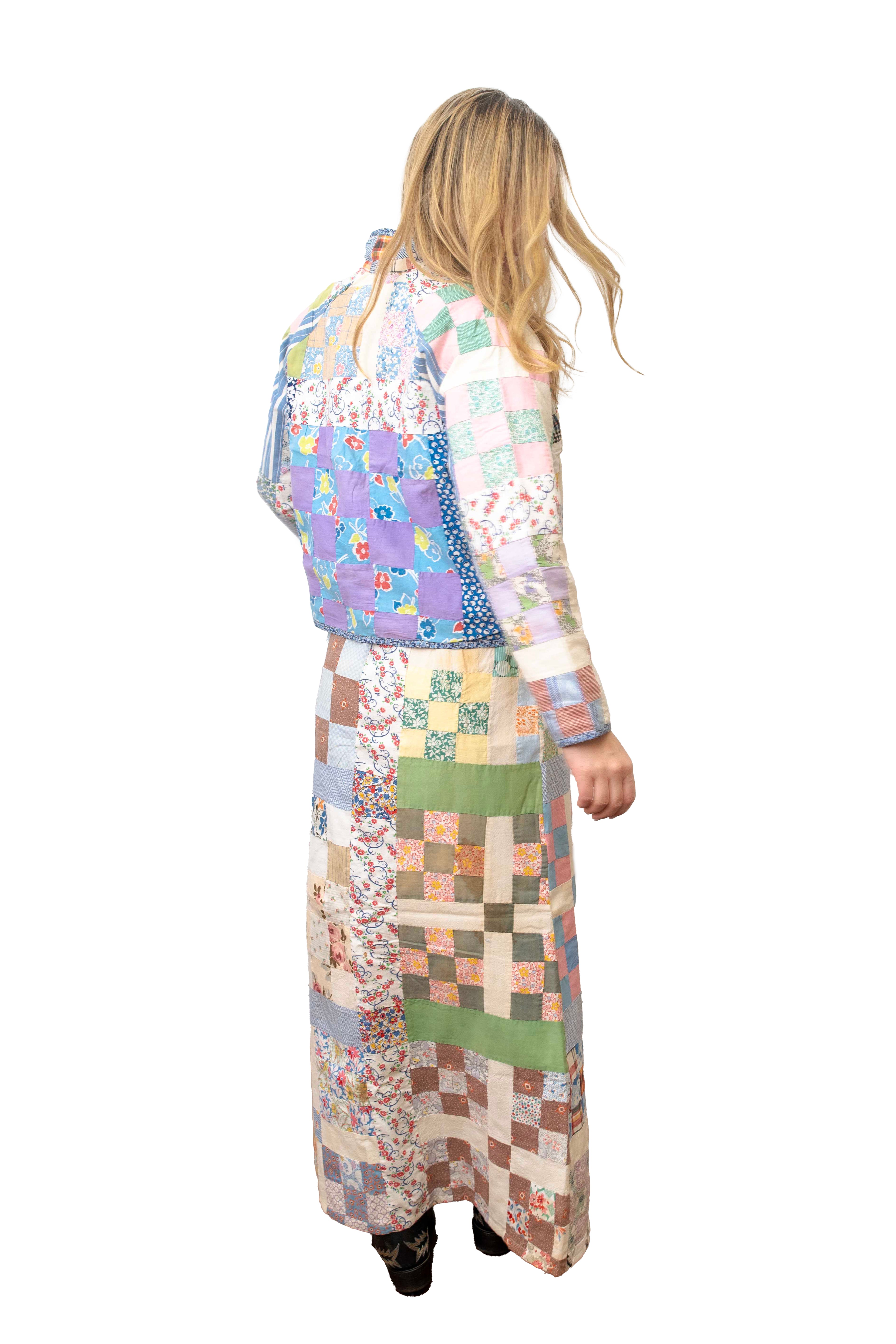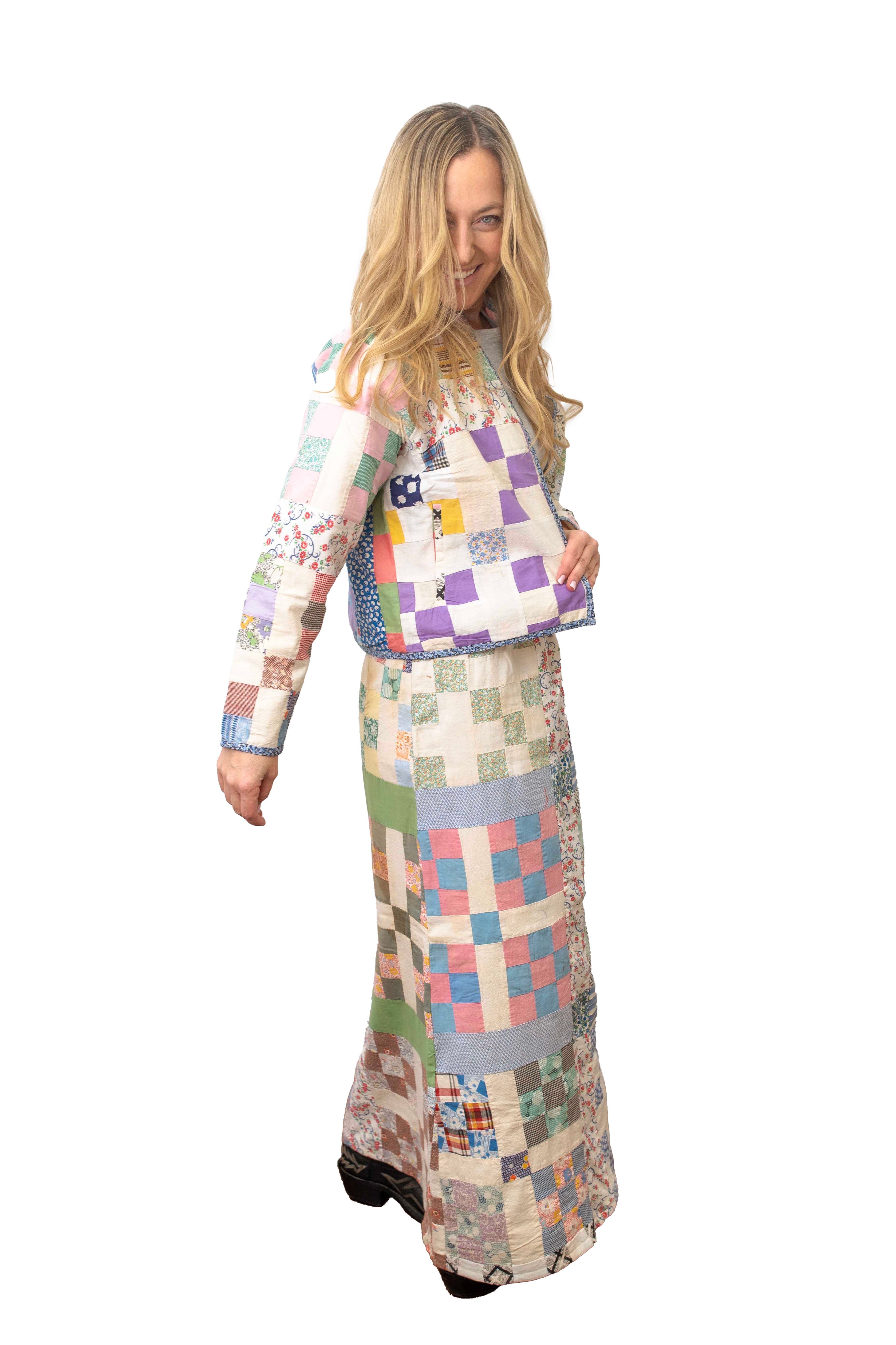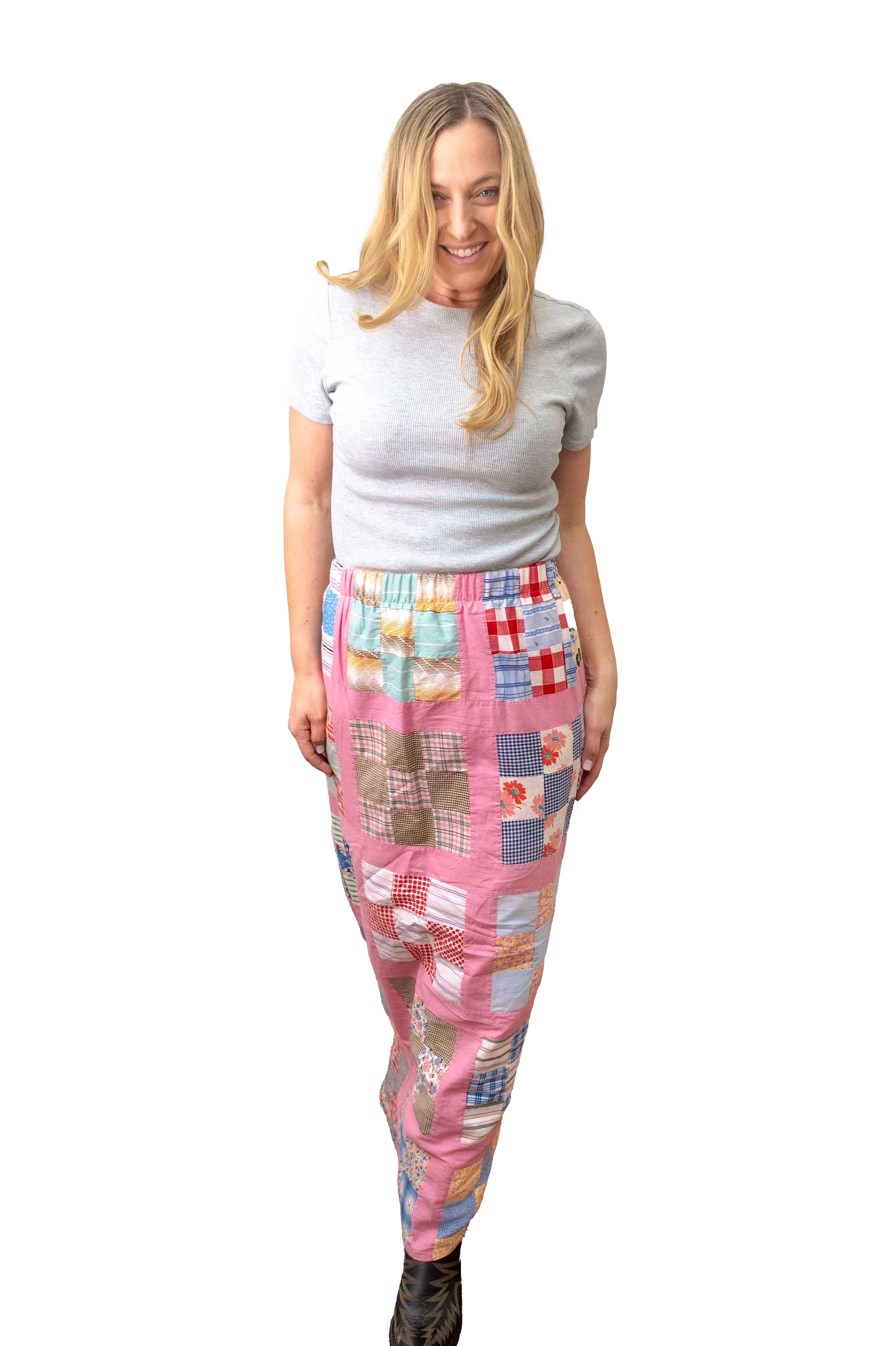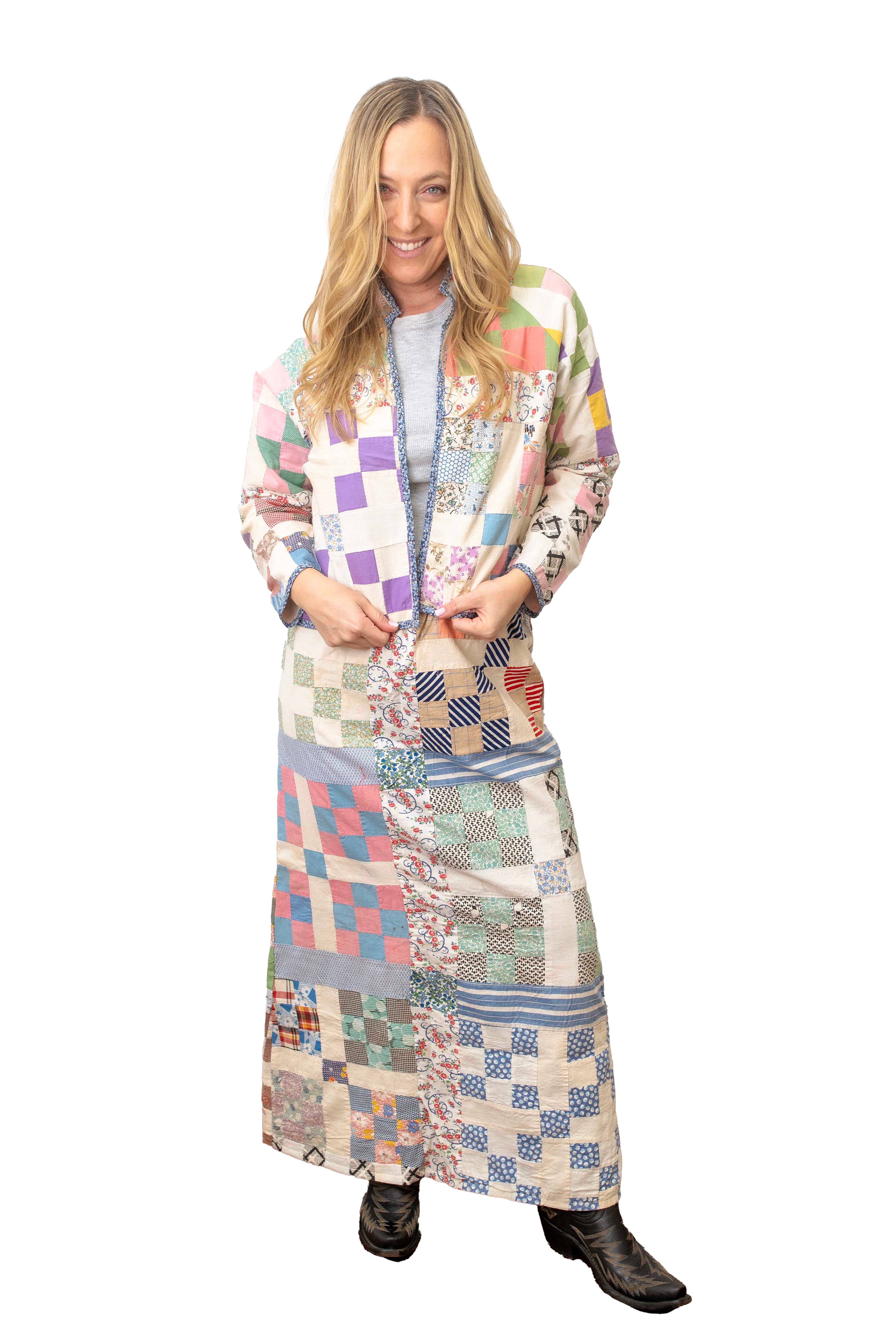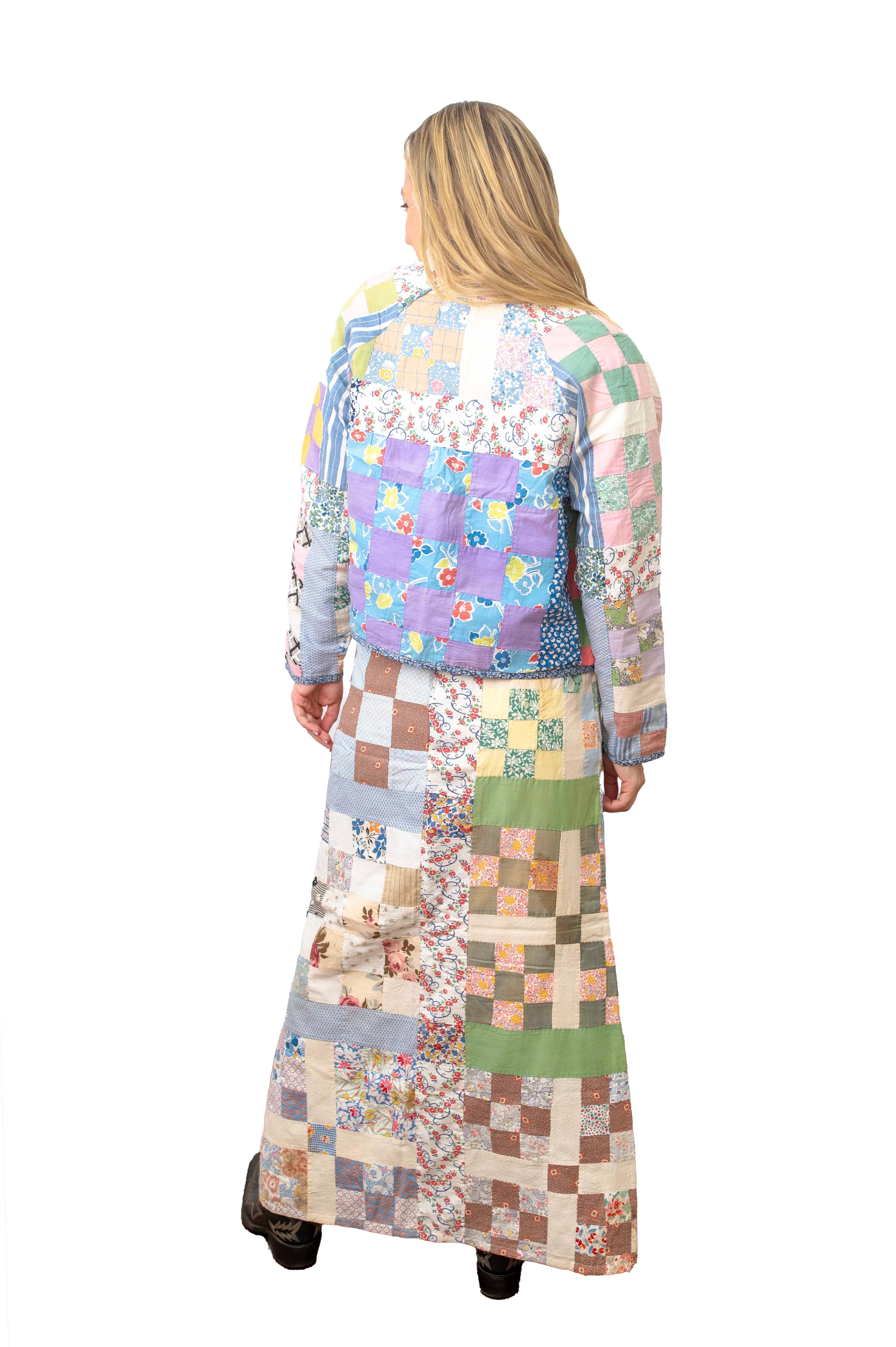 Blue Dresden Plate Quilt Top Maxi Skirt