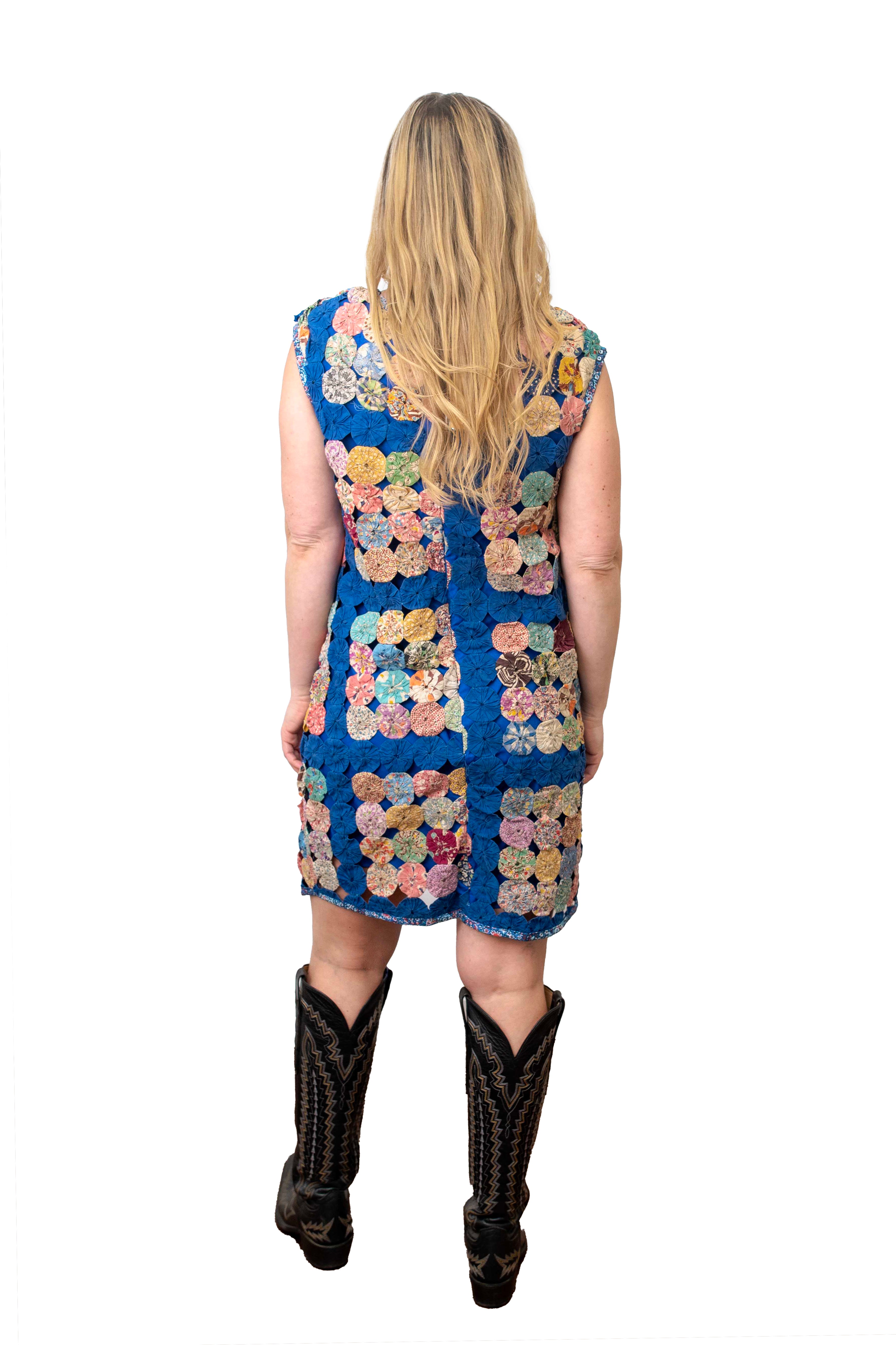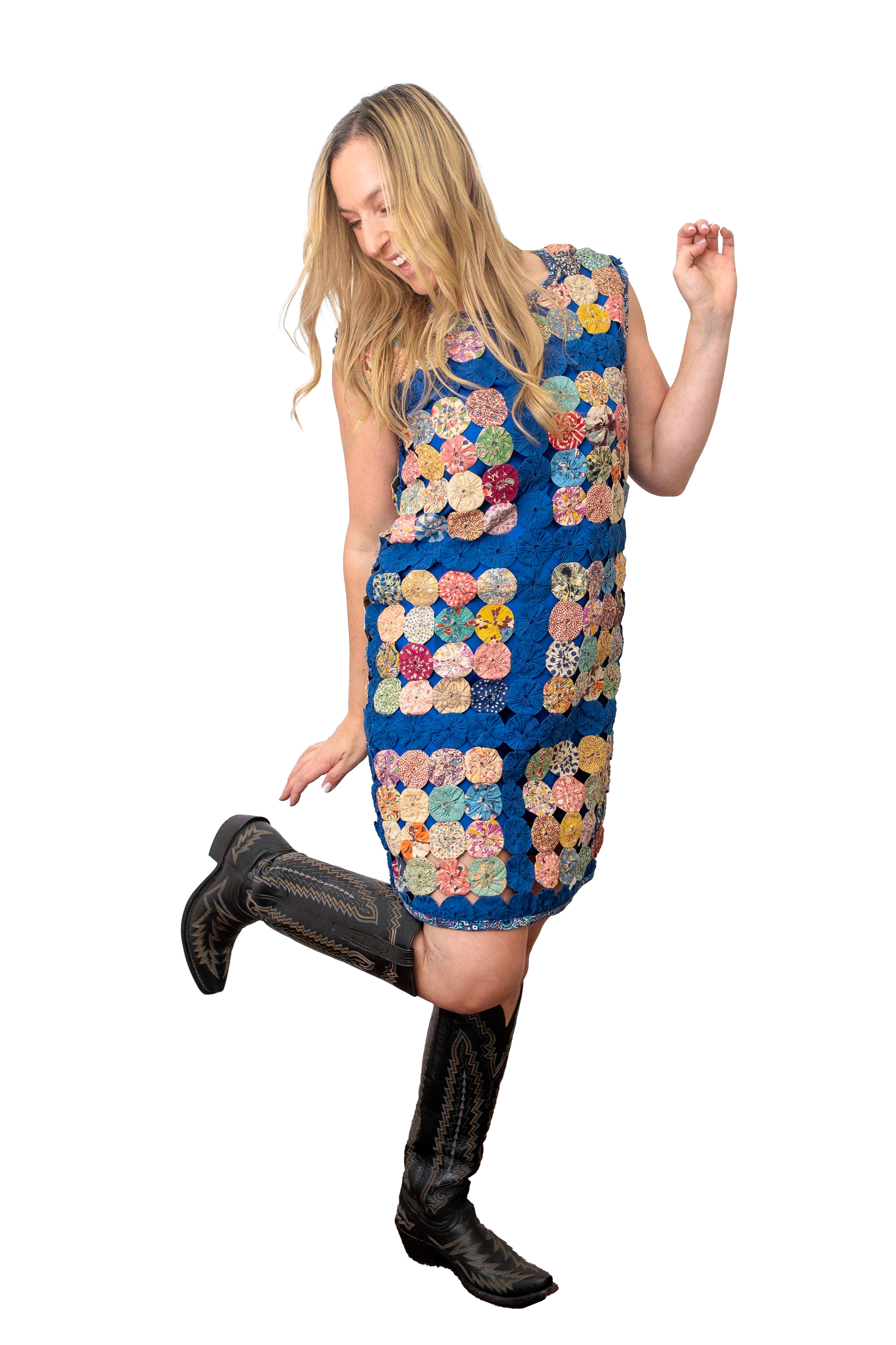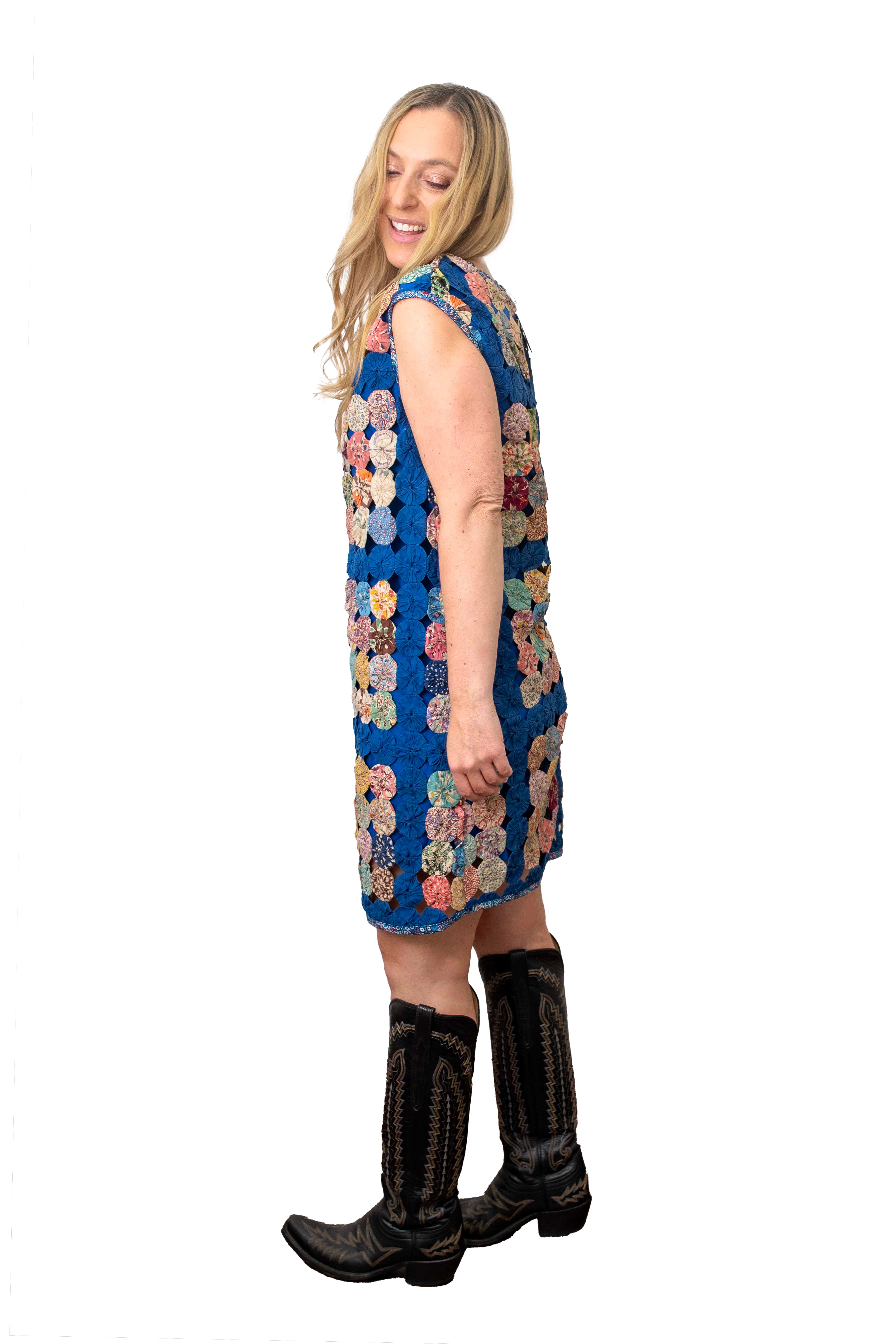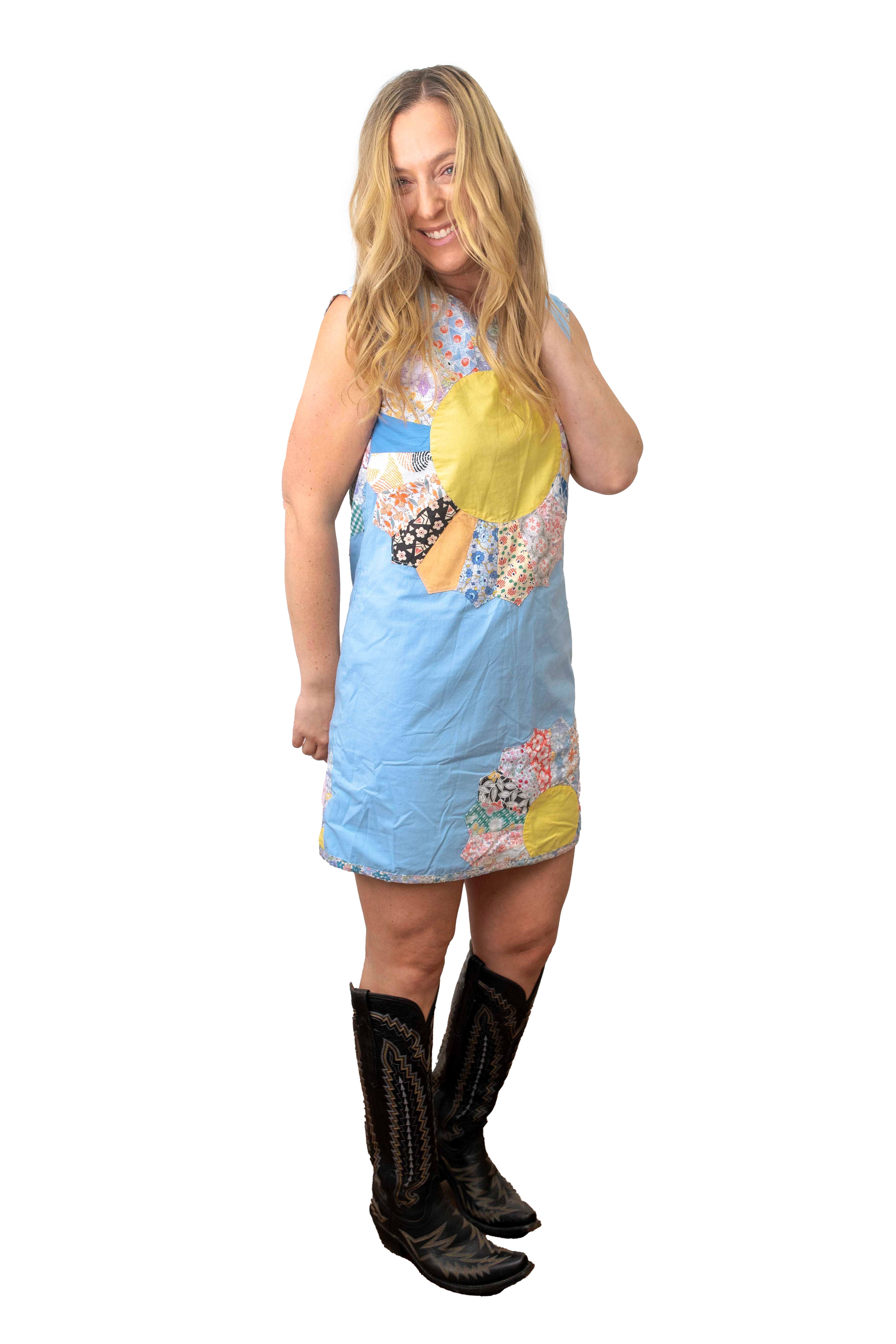 Blue Dresden Plate Quilt Top Mini Dress (S)