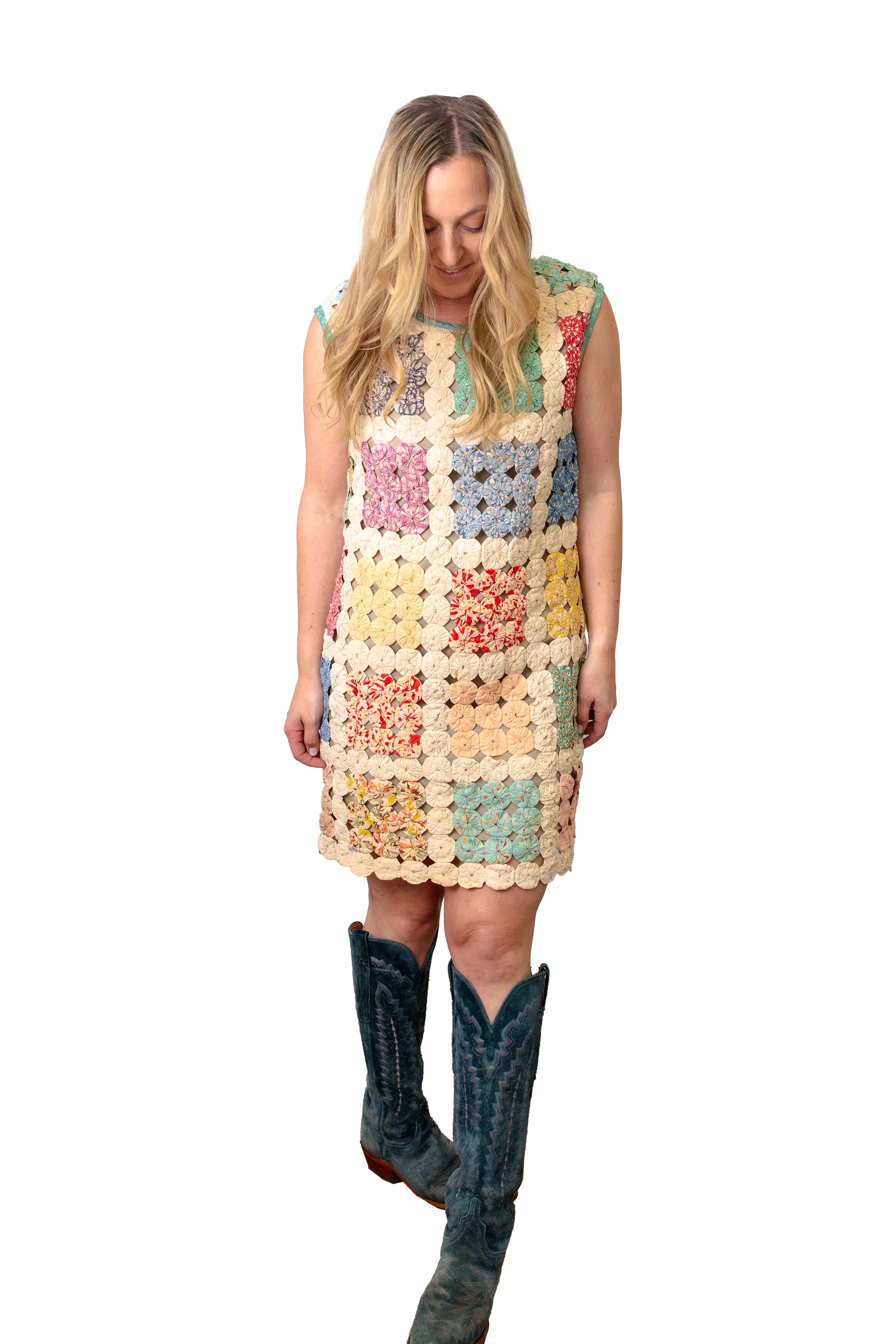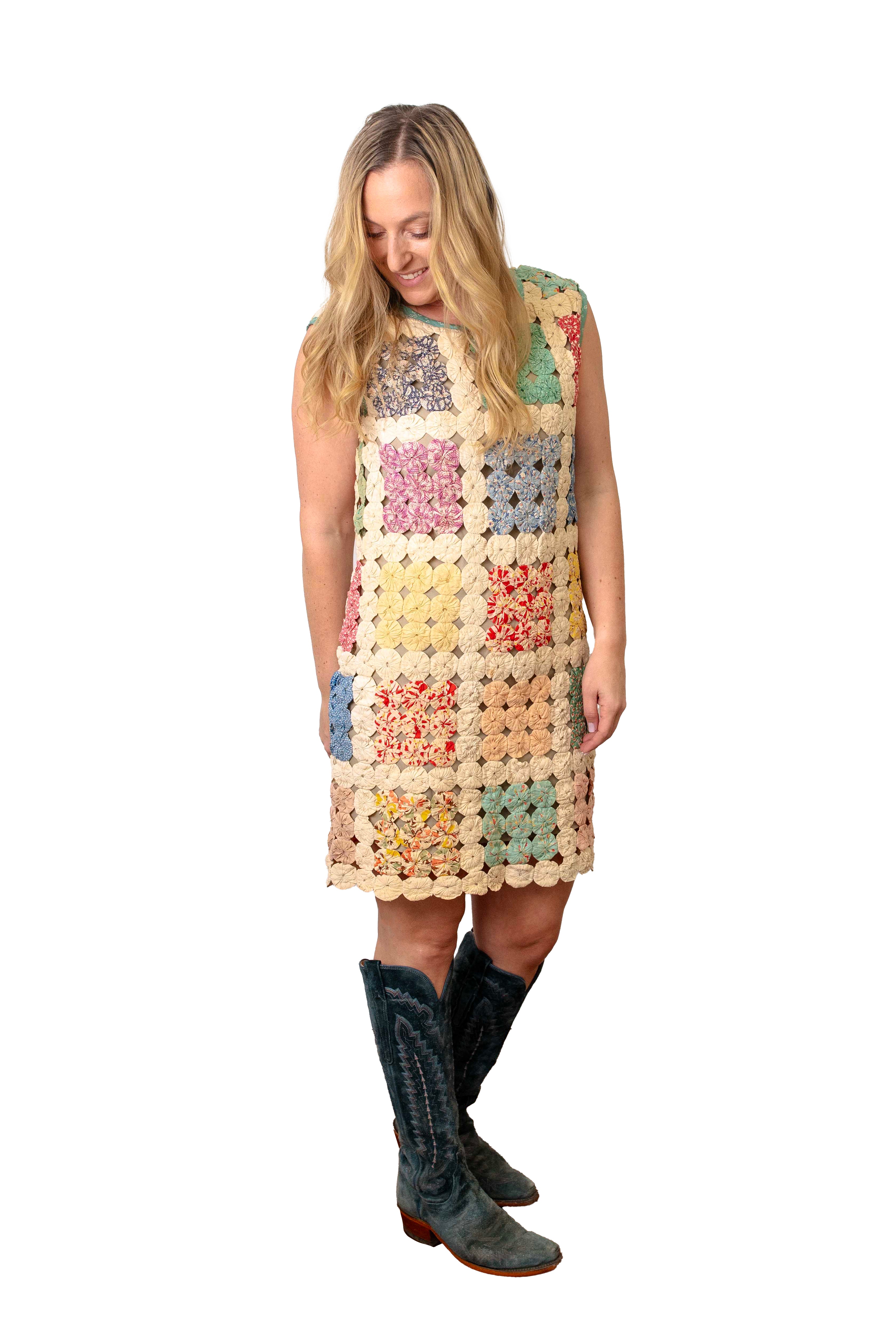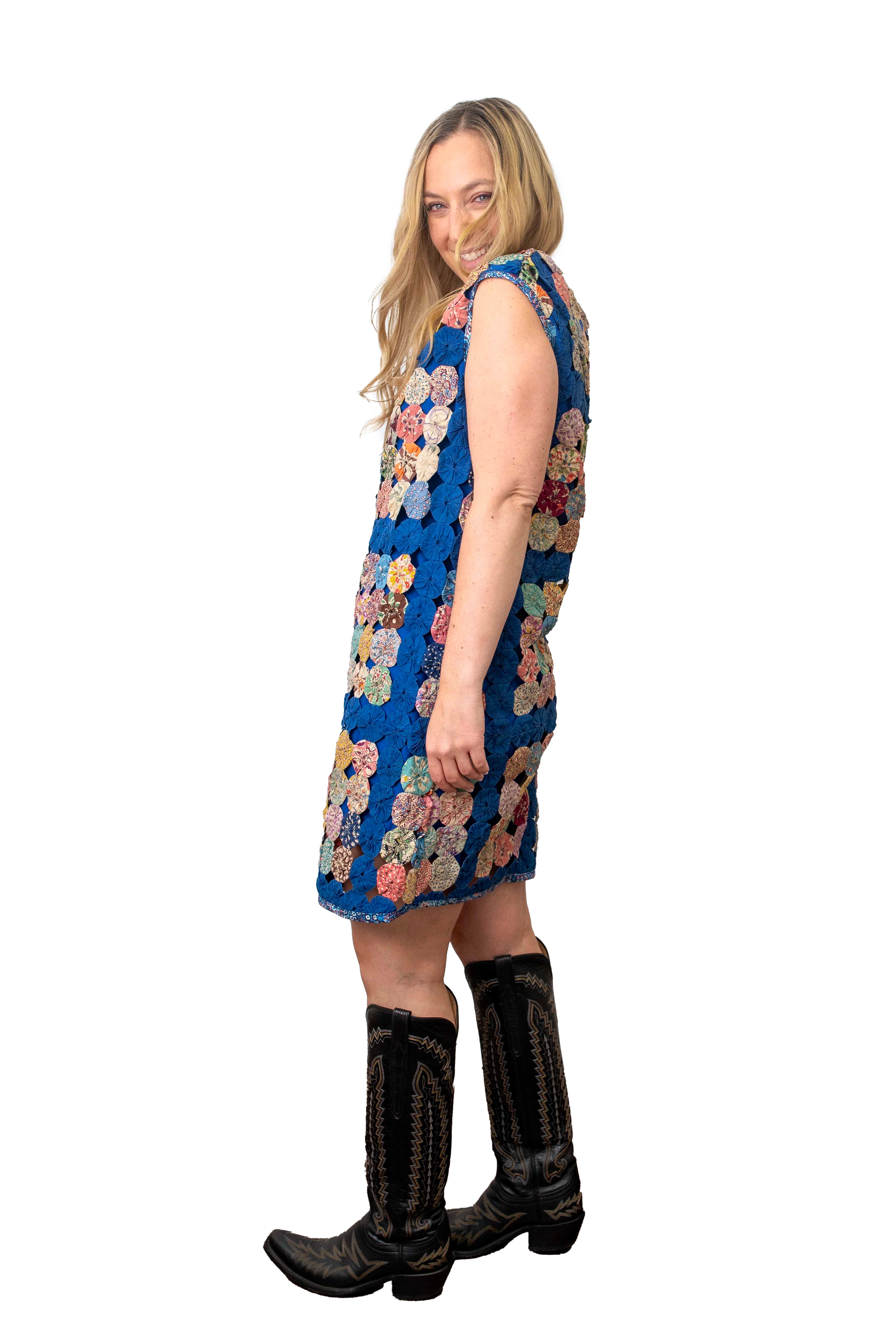 Blue Dresden Plate Quilt Top Mini Dress (S)
