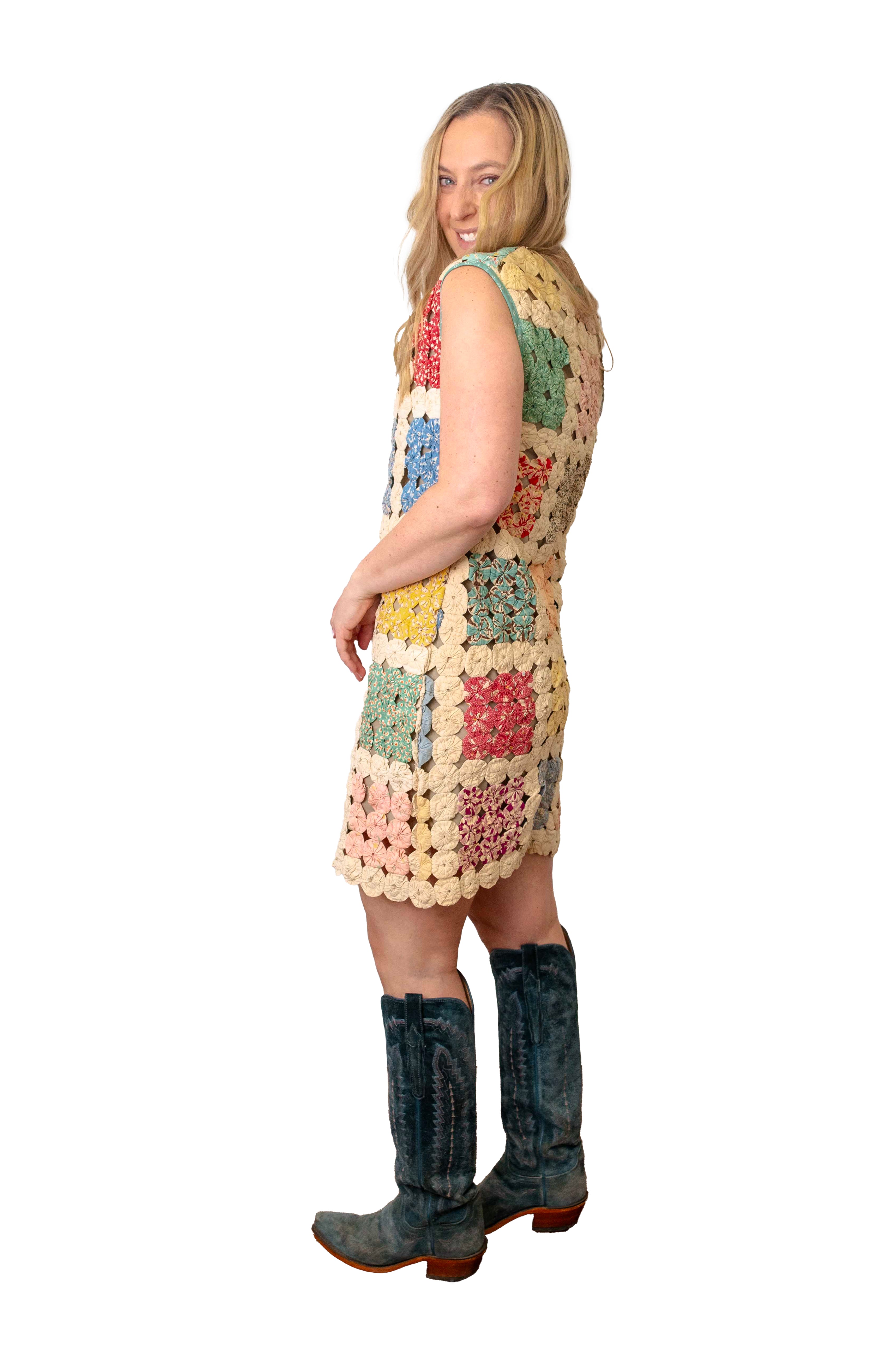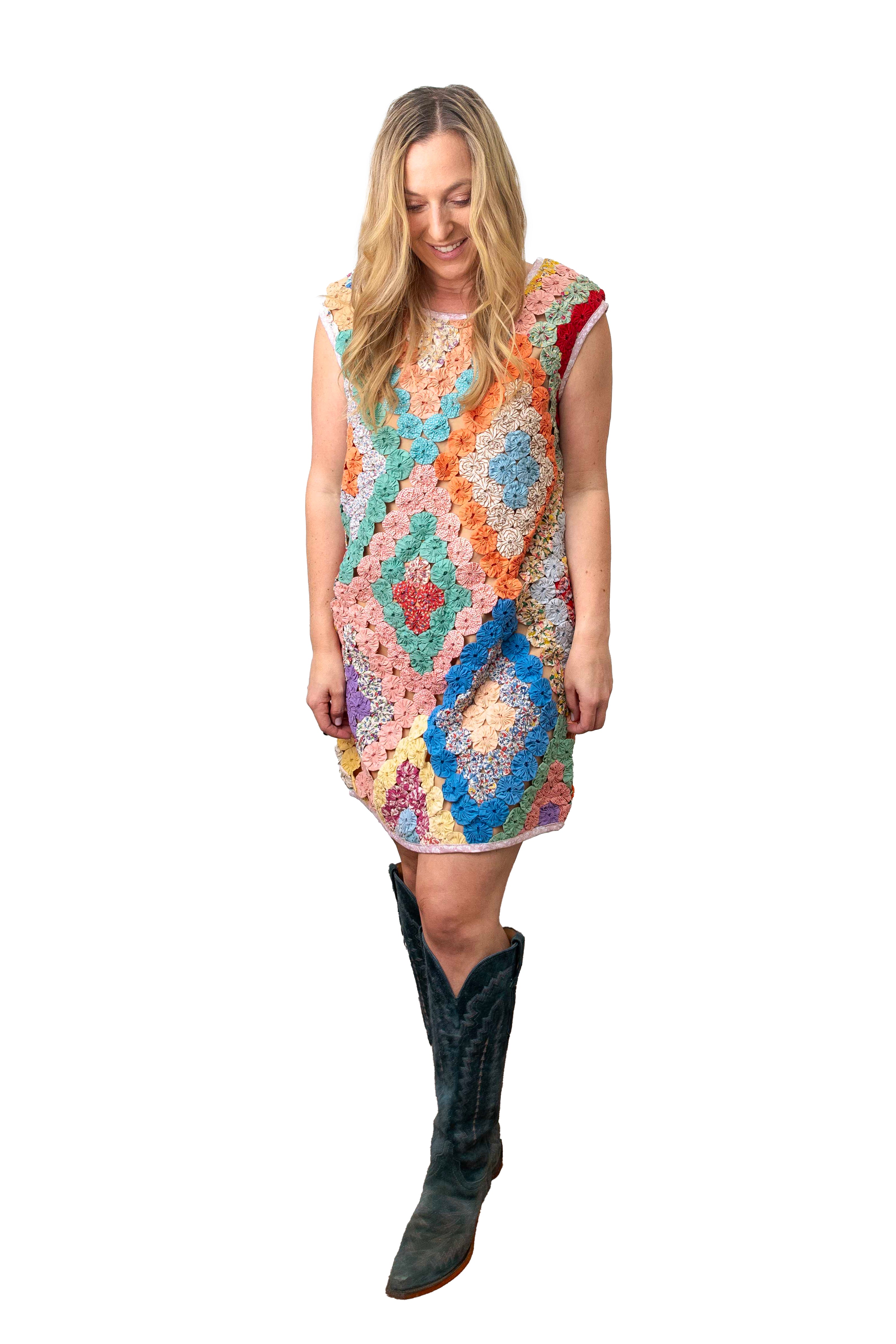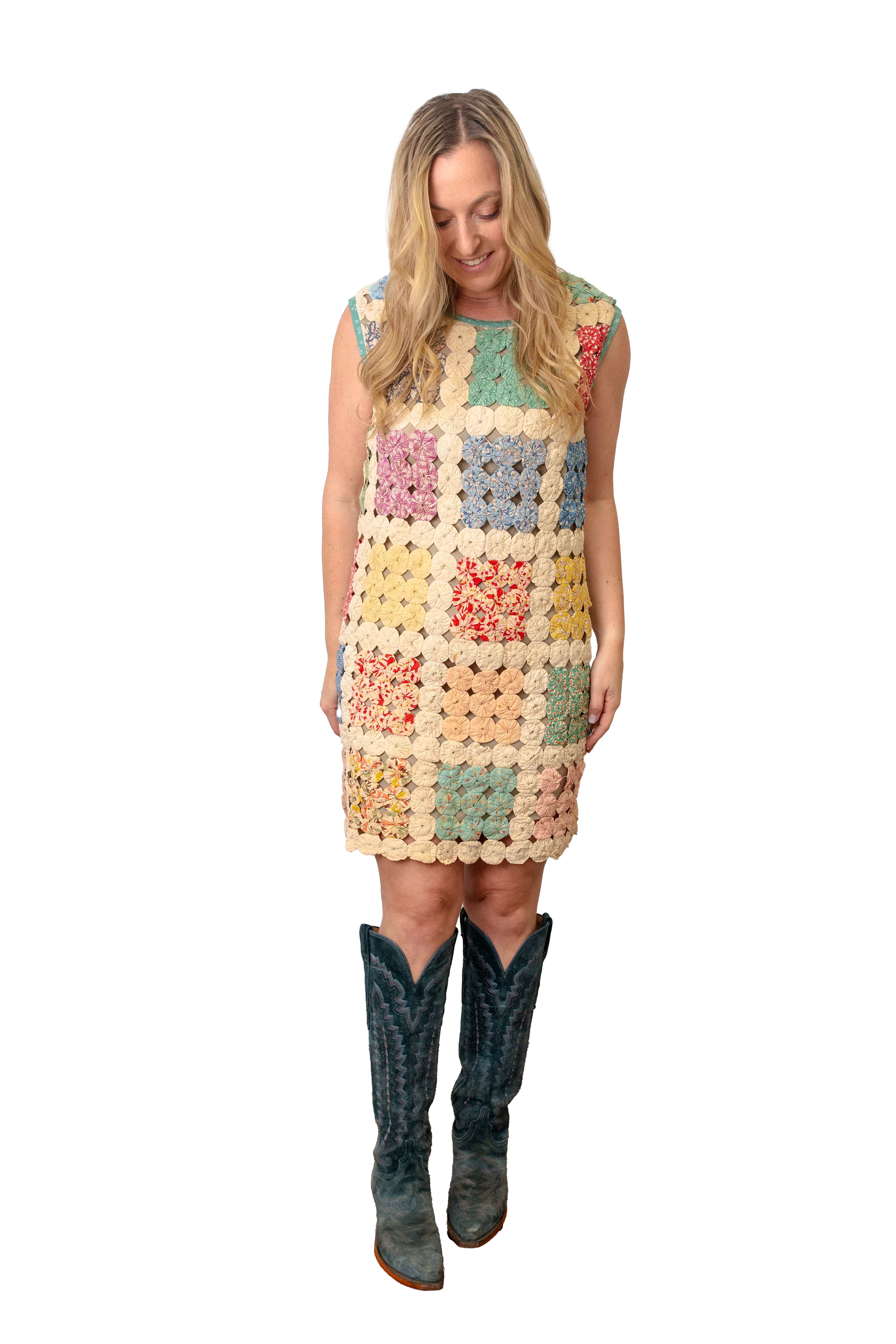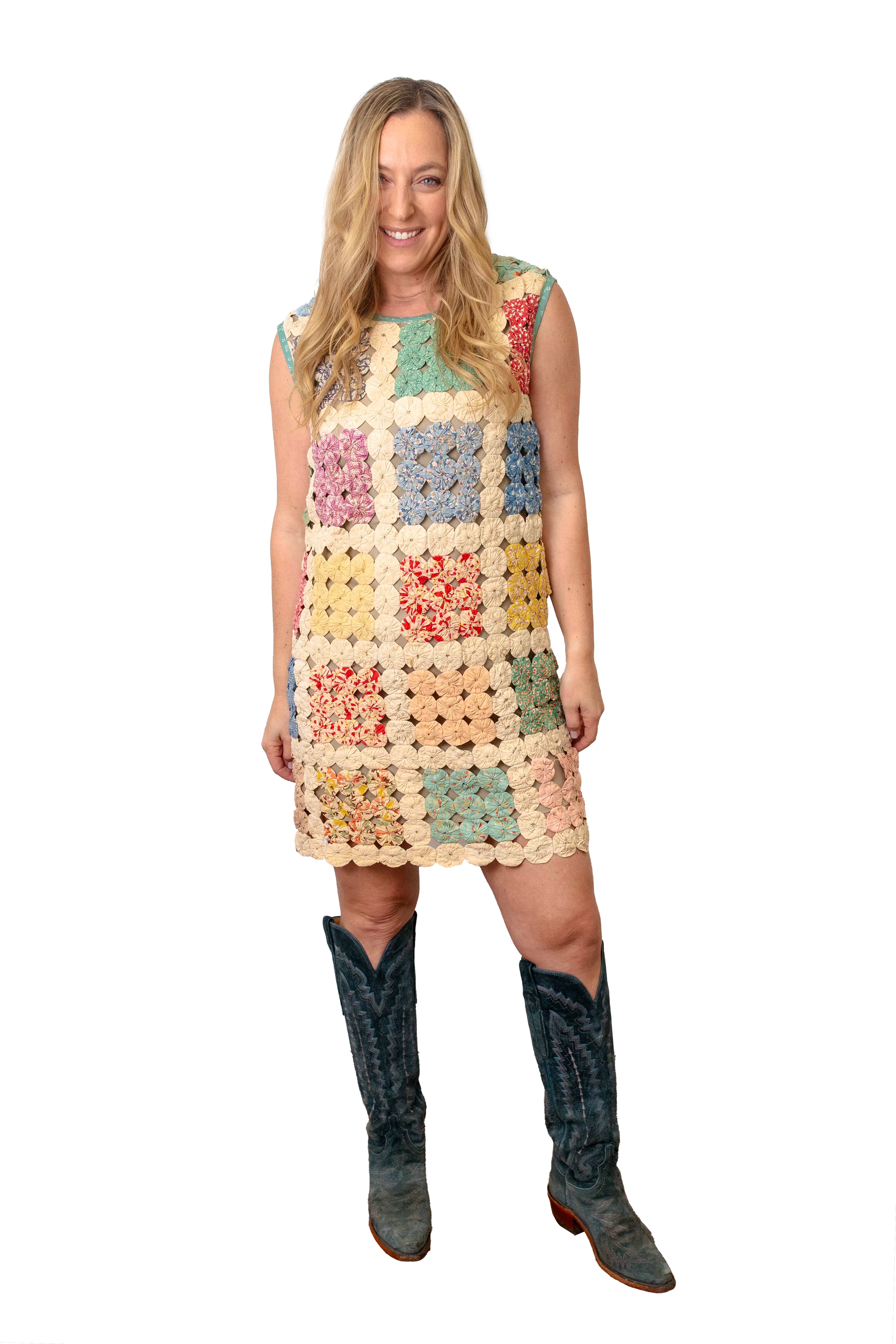 Blue Dresden Plate Quilt Top Mini Dress (S)