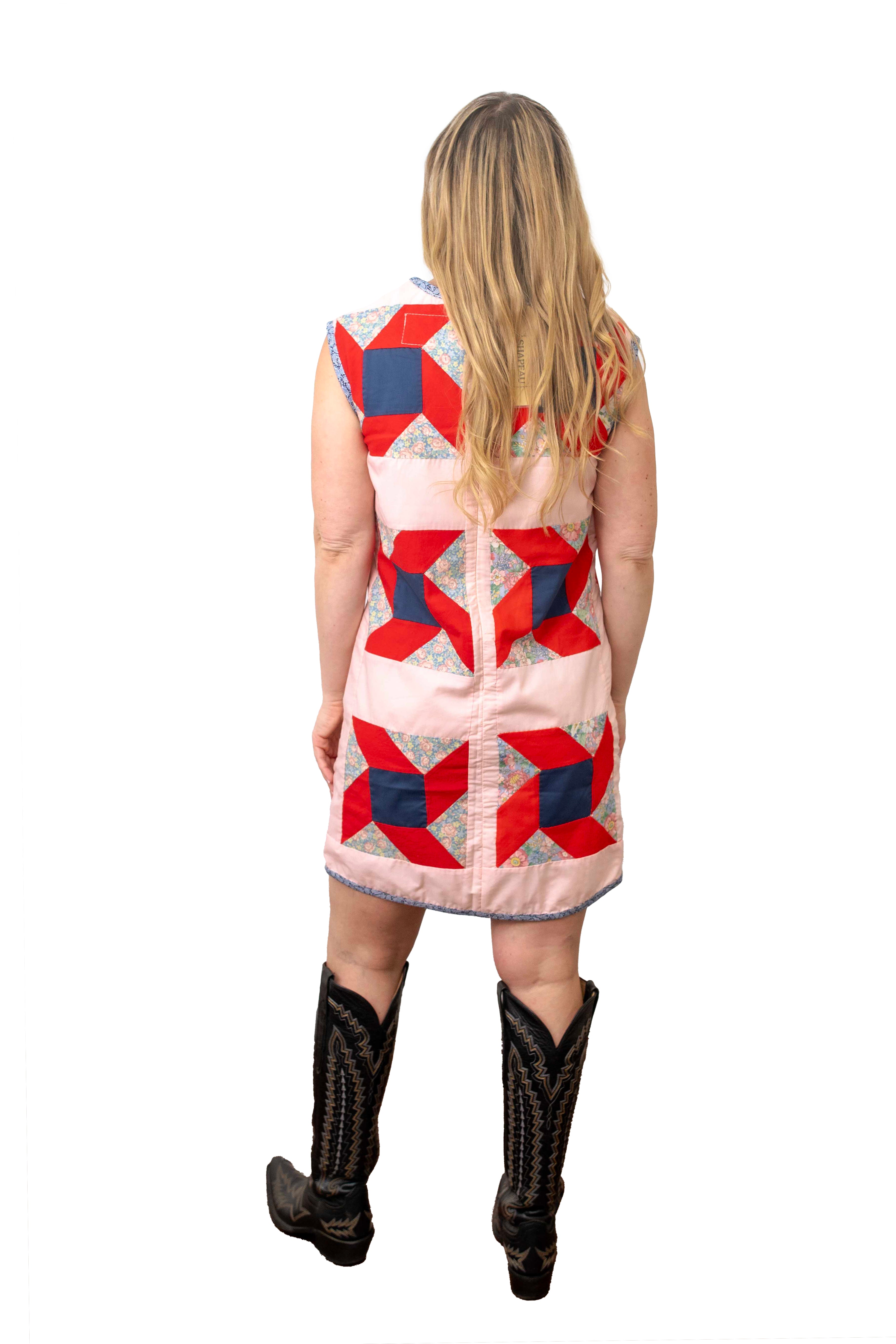 1800s Red Pinwheel Quilt Top Mini Dress (S)