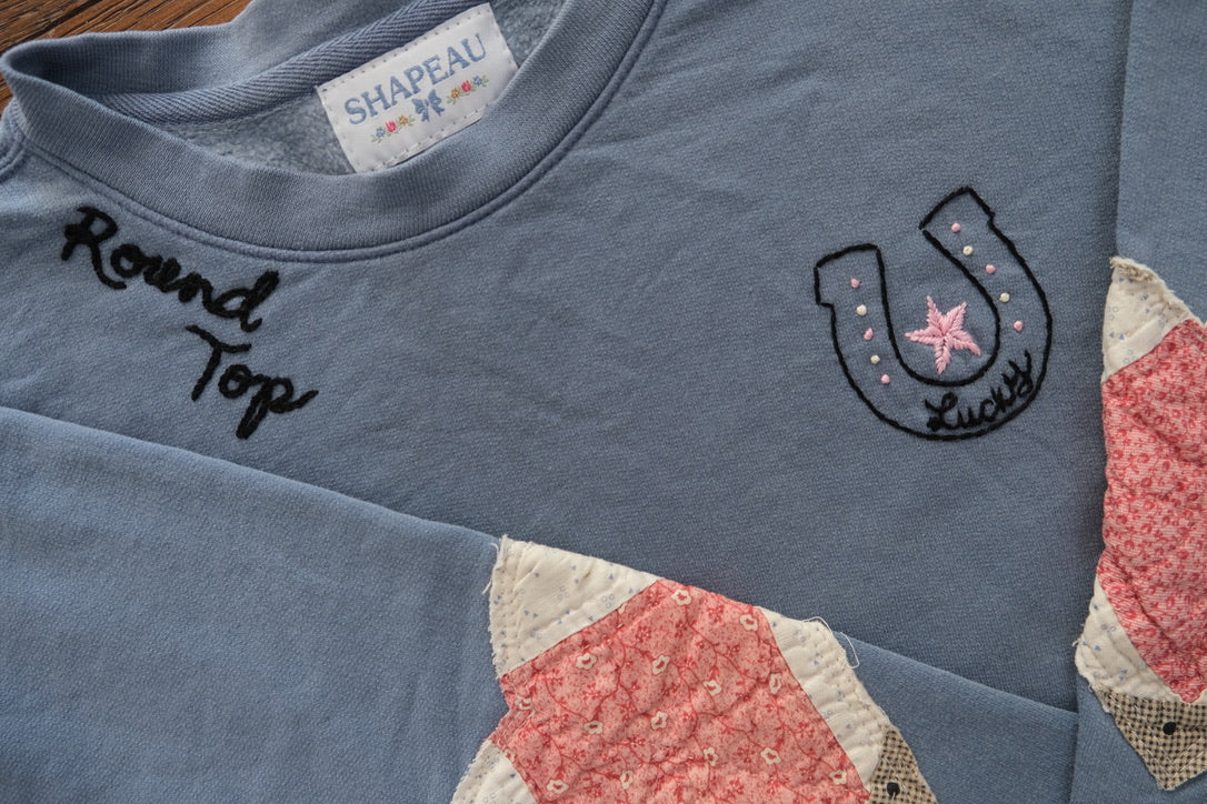 Please look closely at photos. The quilts and denim are preloved and may have imperfections.