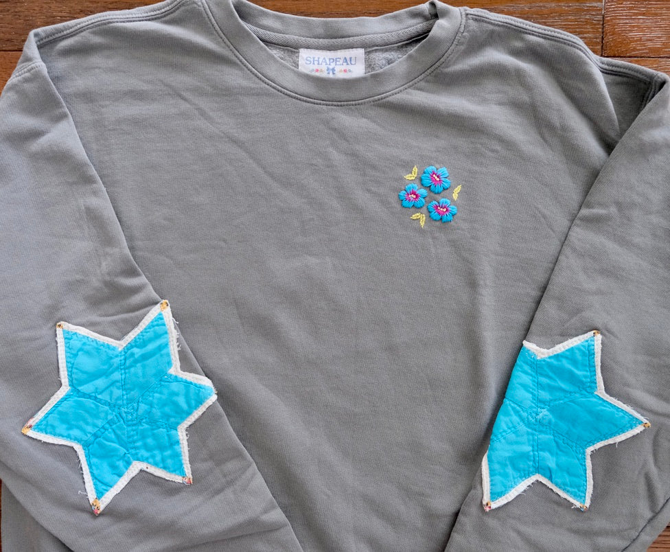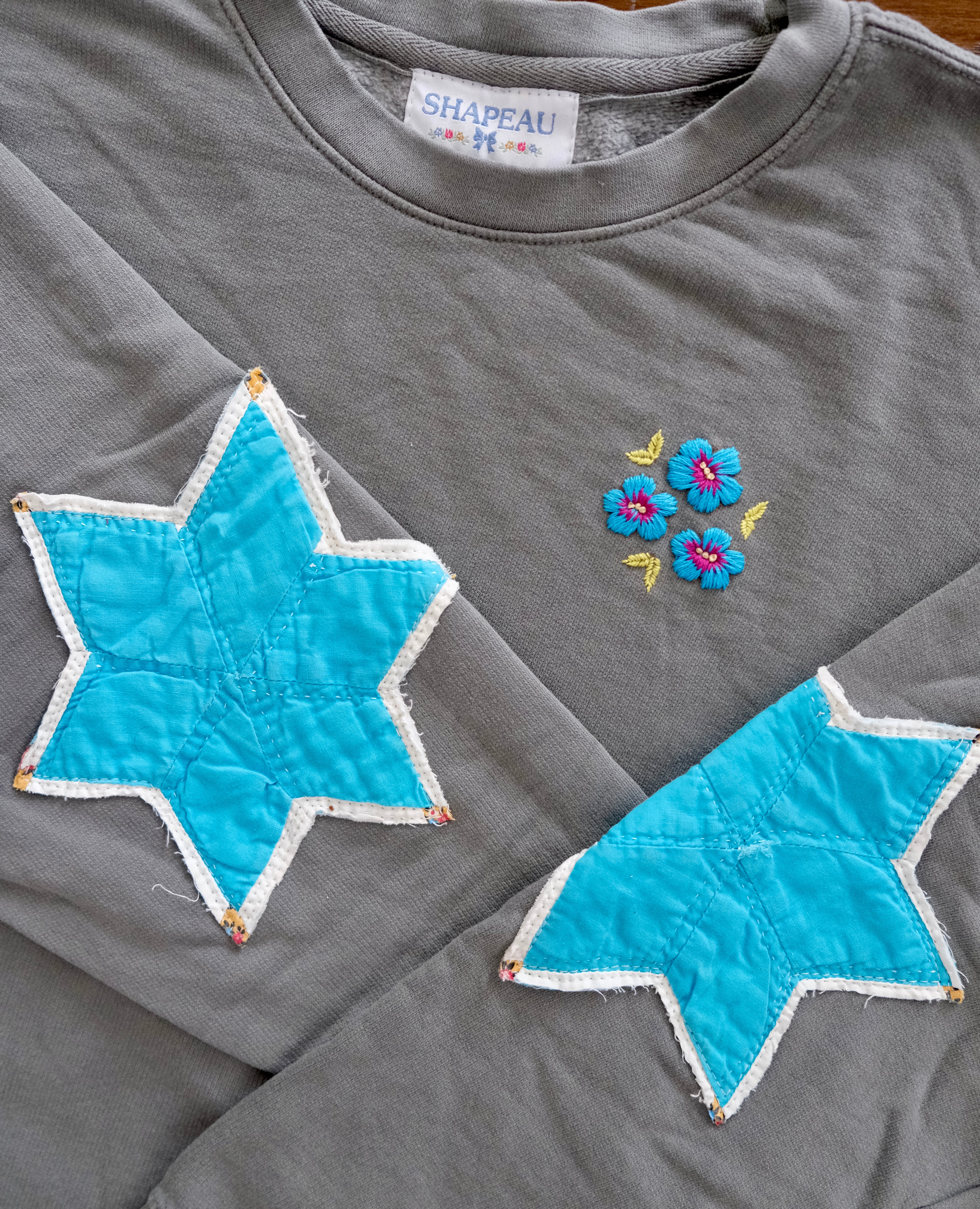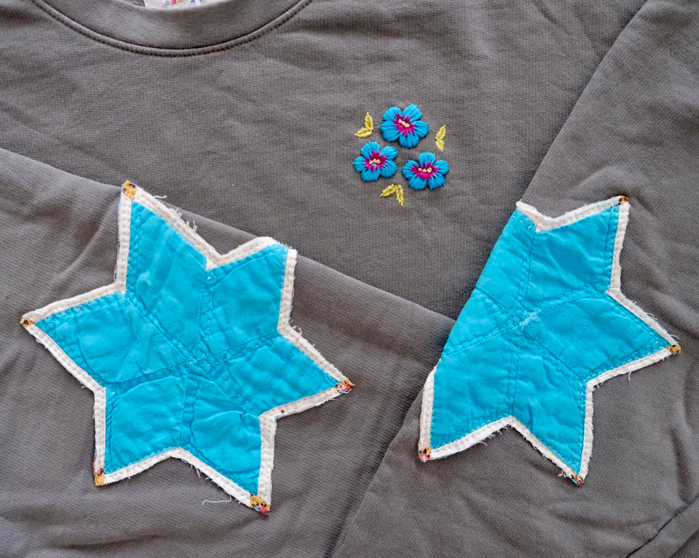 Please look closely at photos. The quilts and denim are preloved and may have imperfections.