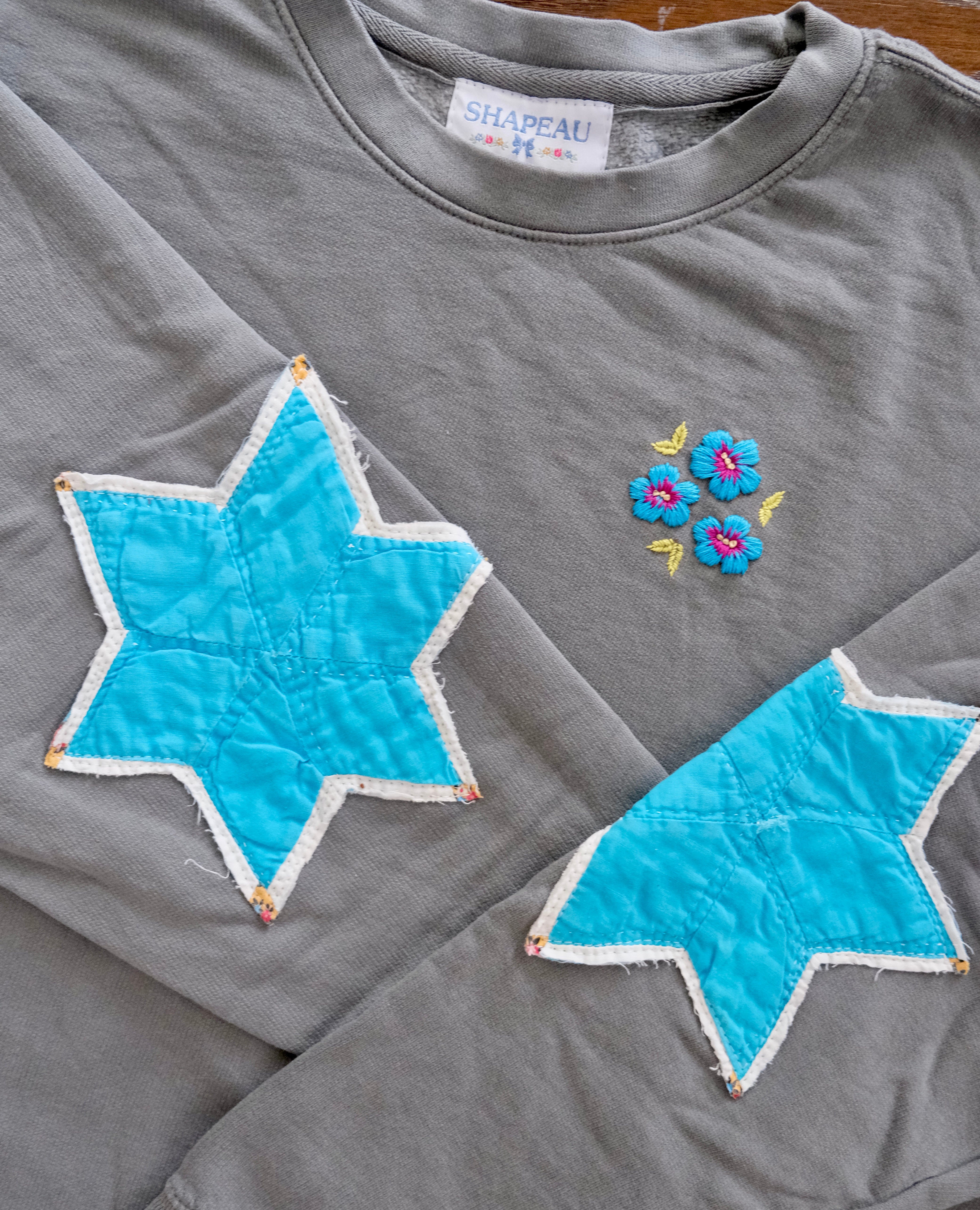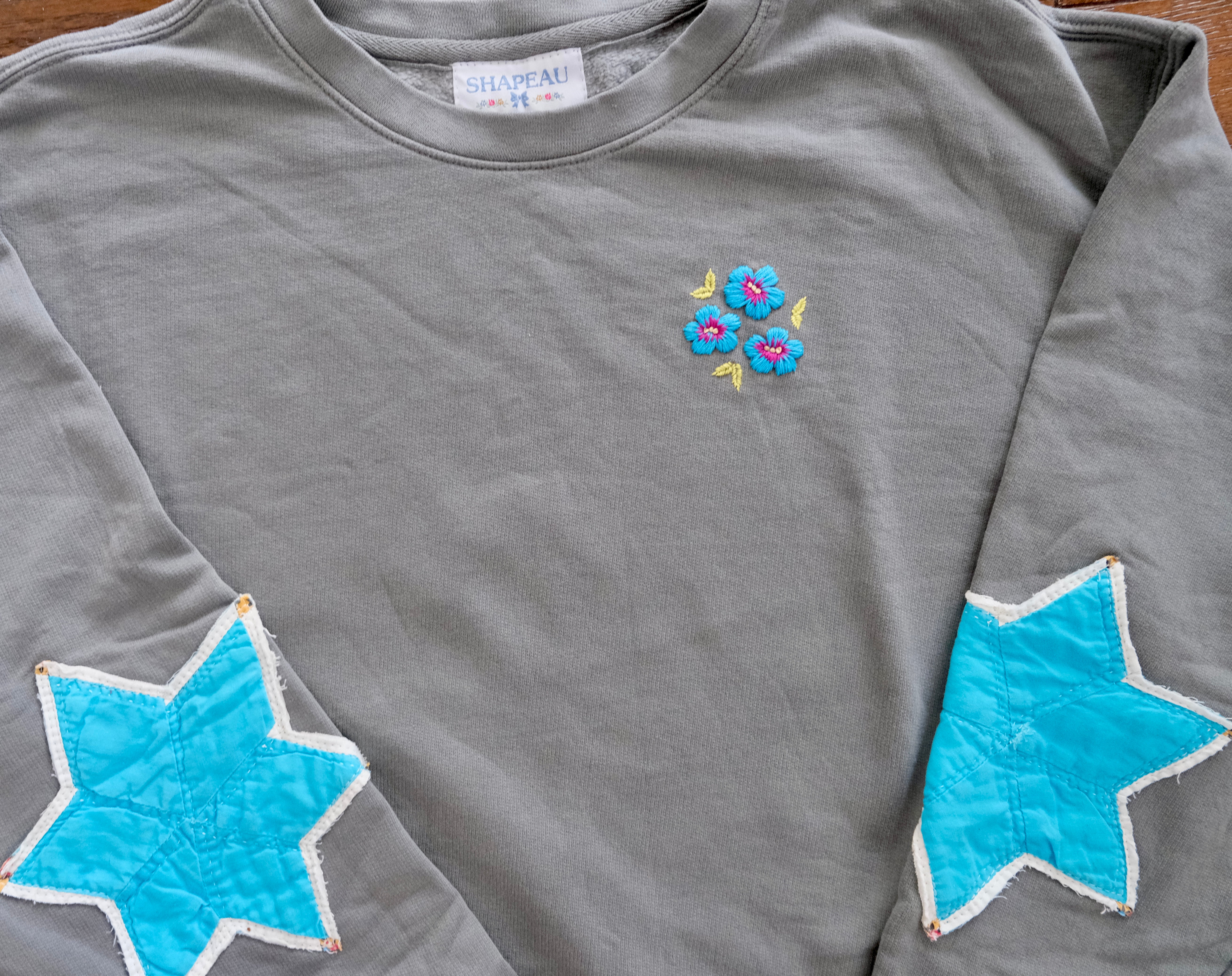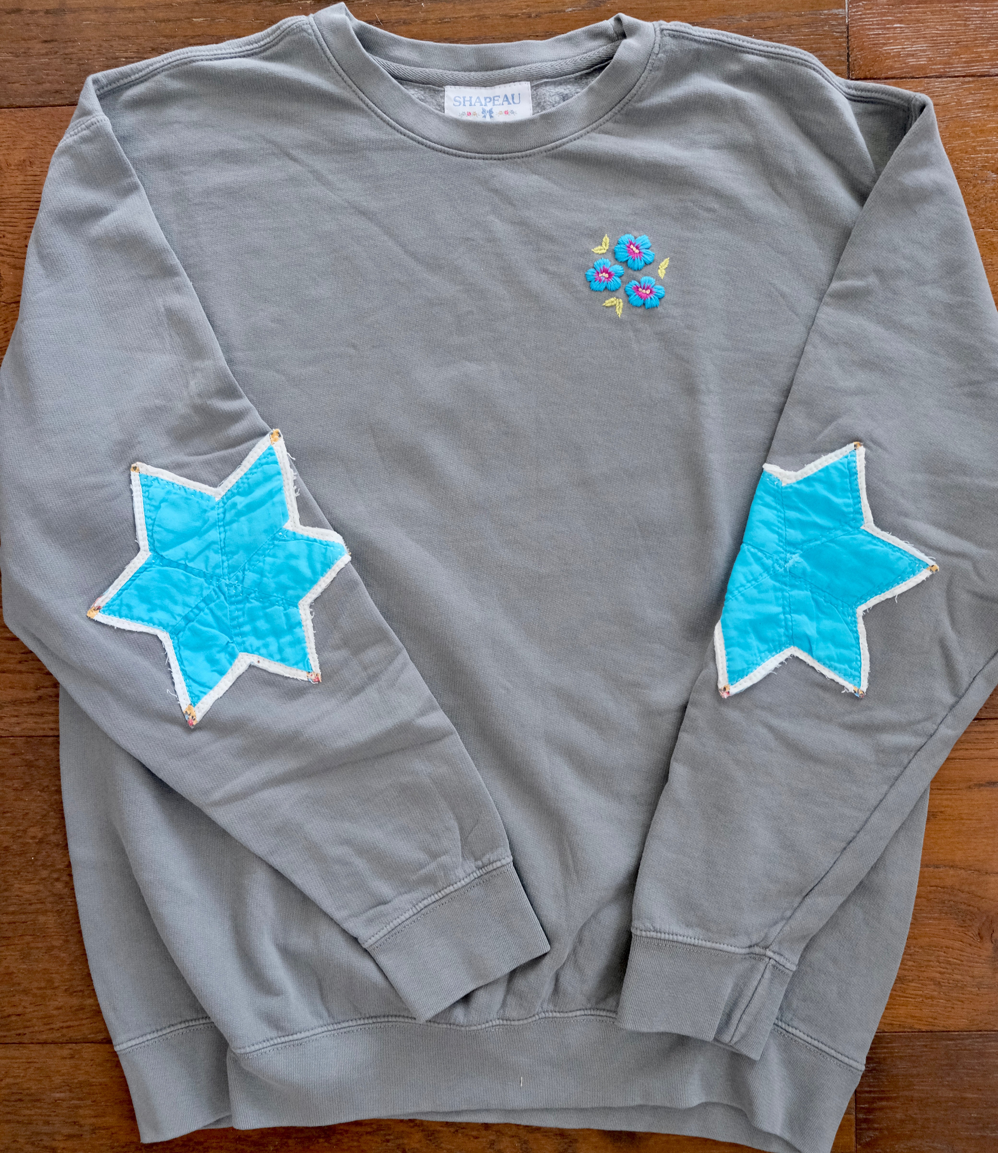 Please look closely at photos. The quilts and denim are preloved and may have imperfections.