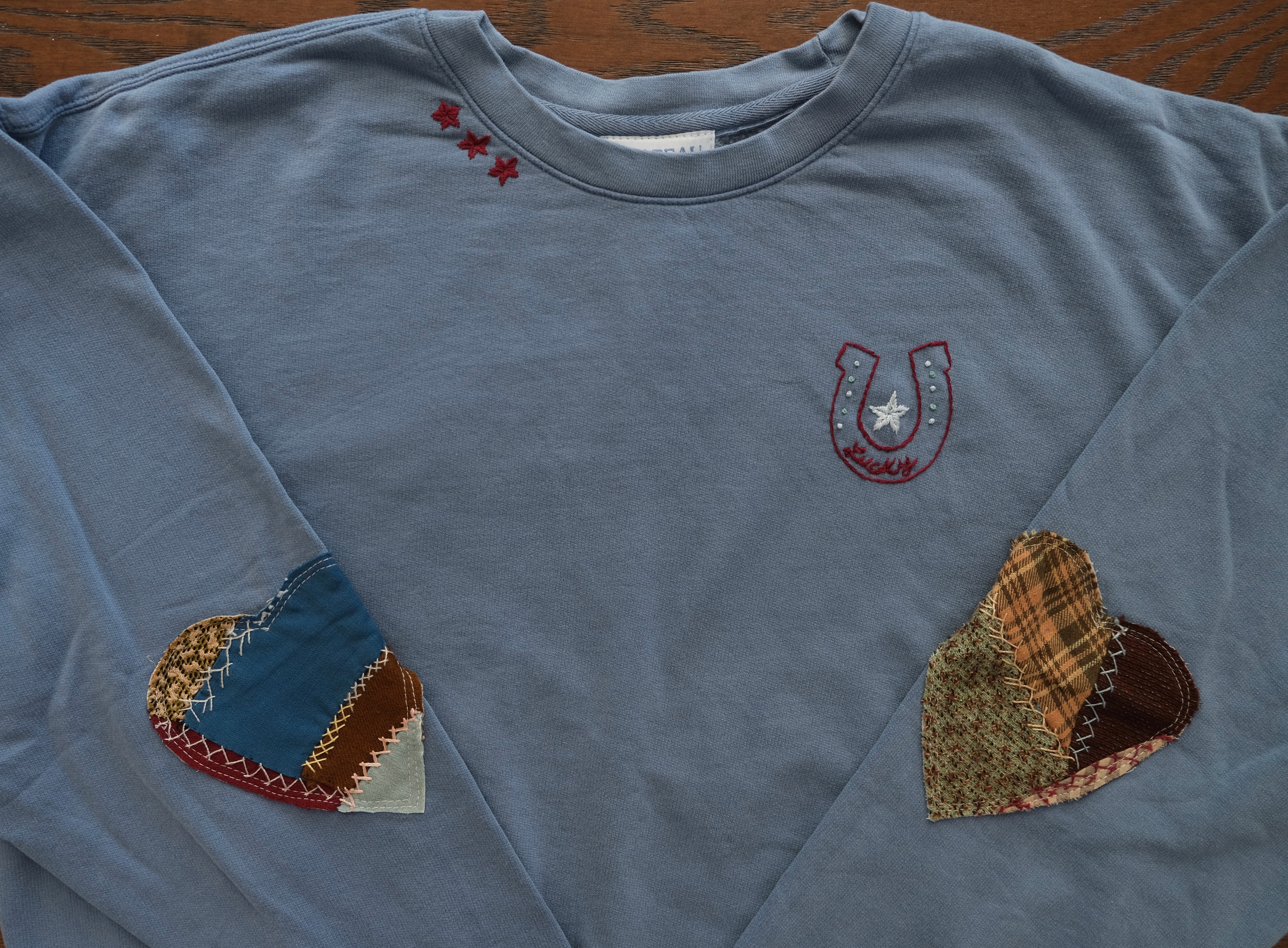 Please look closely at photos. The quilts and denim are preloved and may have imperfections.