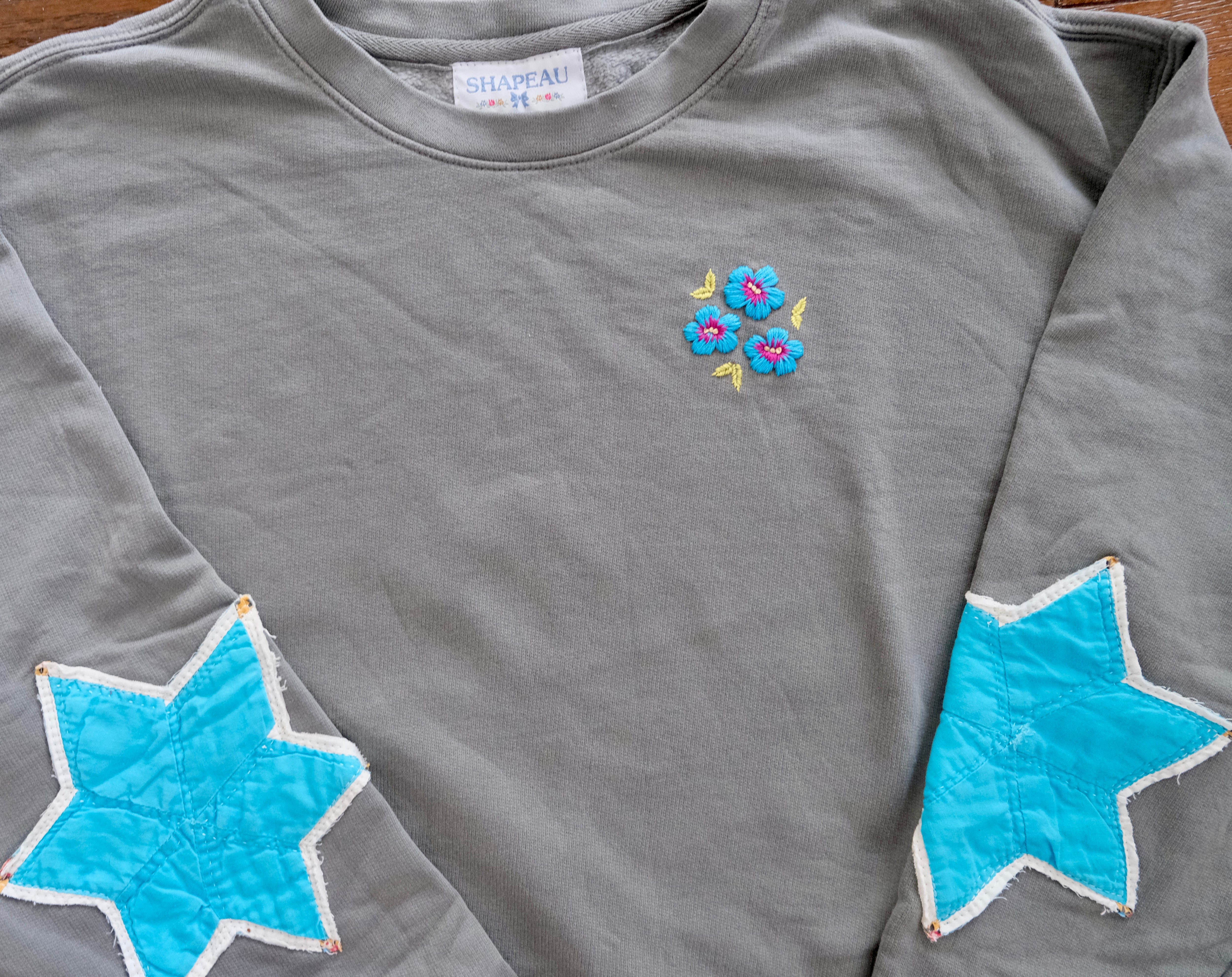 Please look closely at photos. The quilts and denim are preloved and may have imperfections.