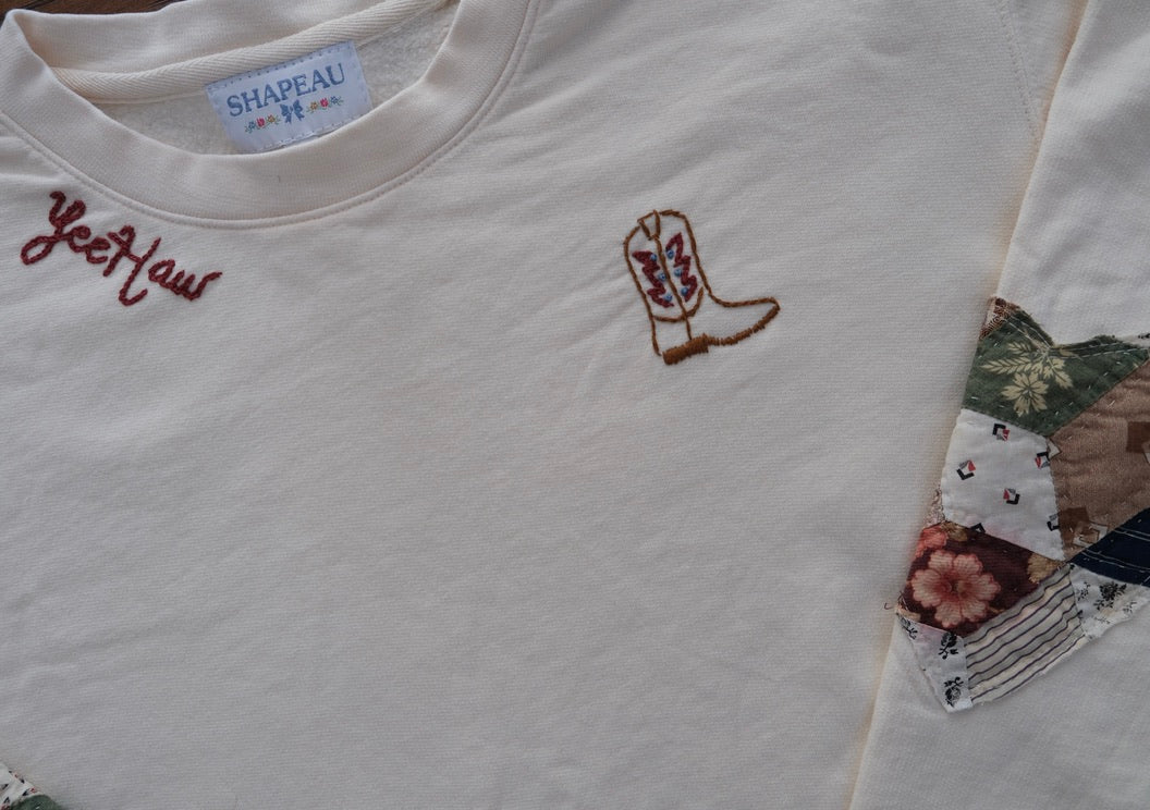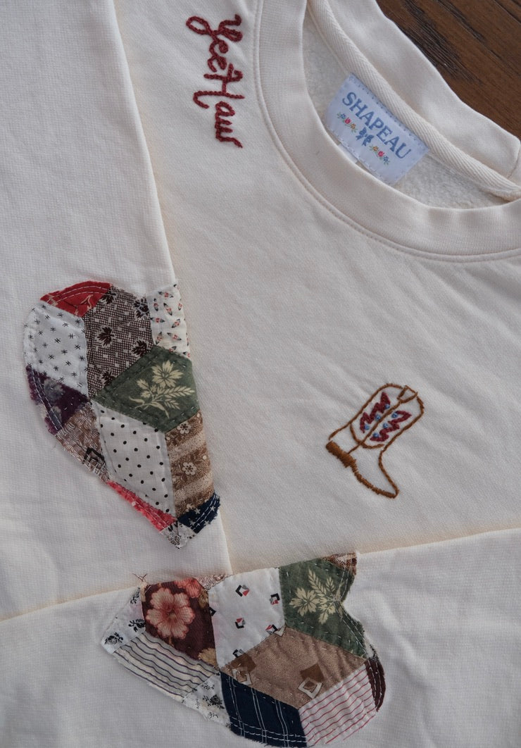 Please look closely at photos. The quilts and denim are preloved and may have imperfections.